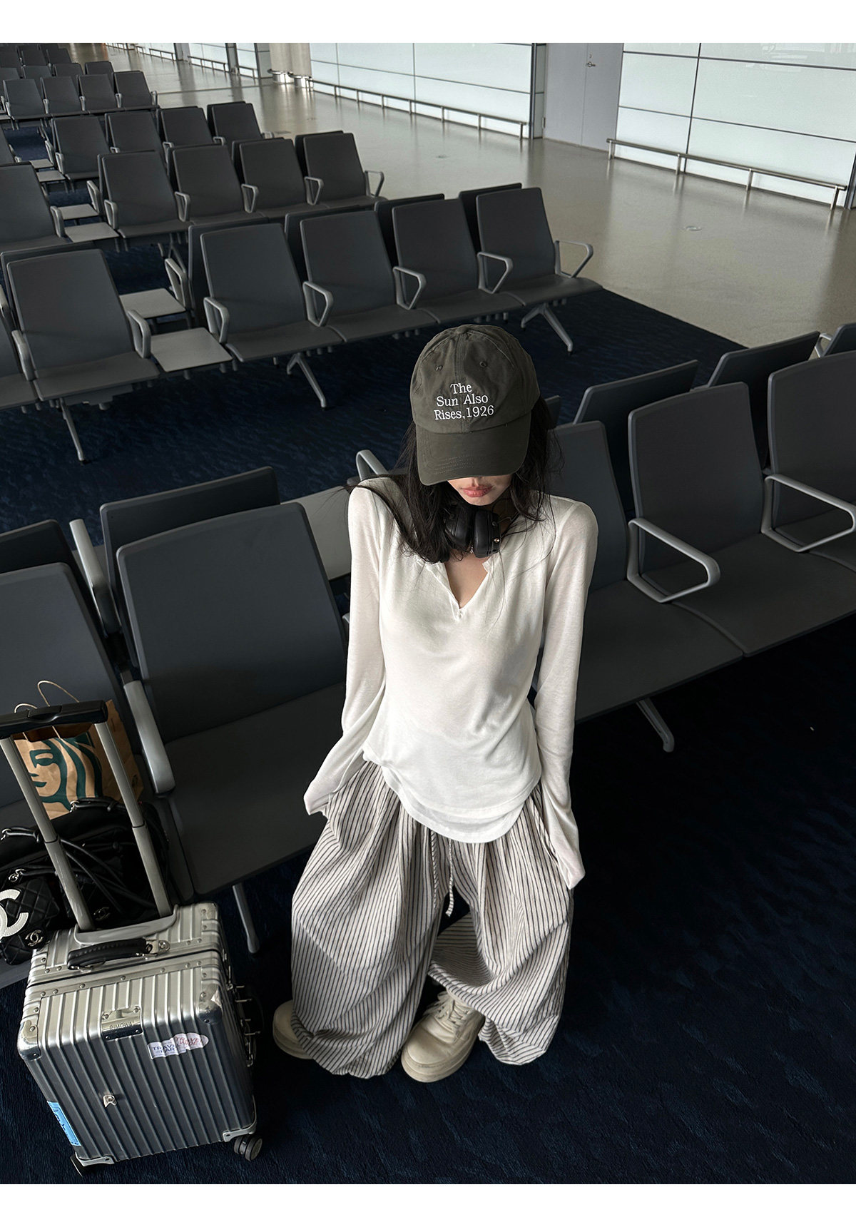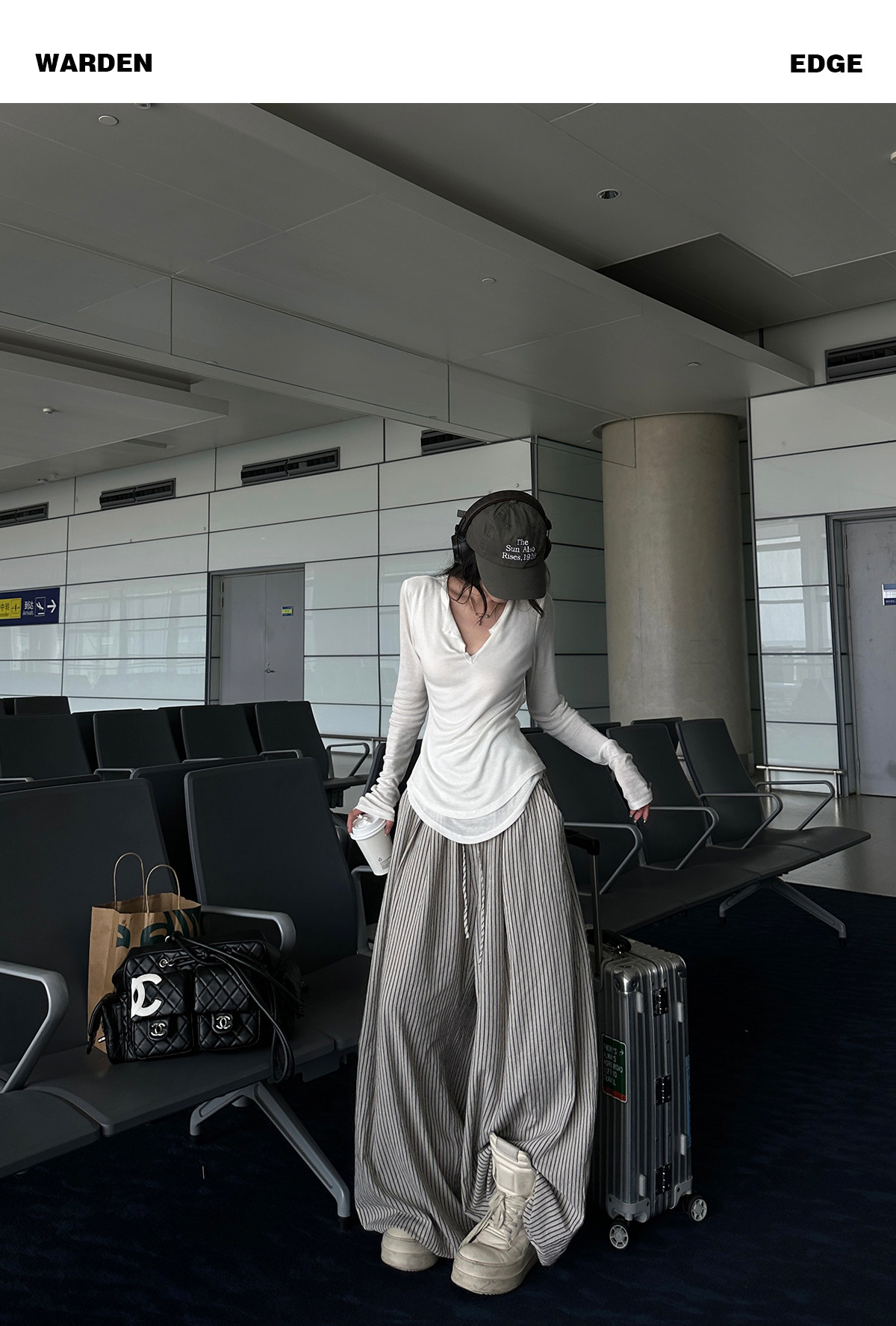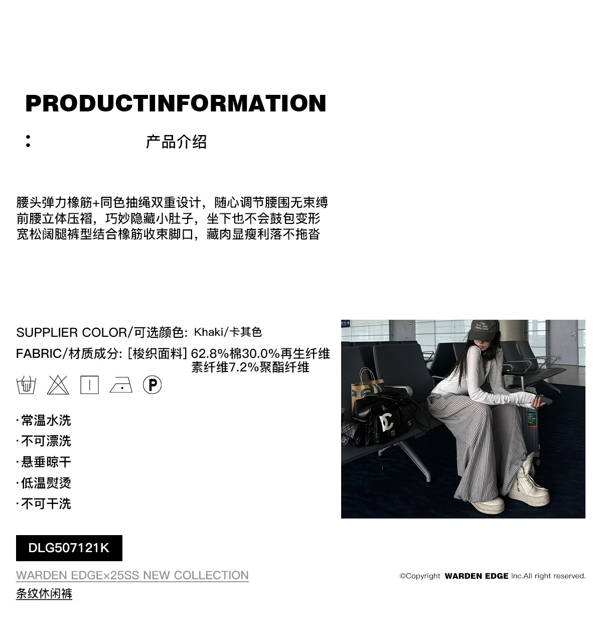 韩好甜WARDEN EDGE 卡其色条纹休闲 𫔮裤女夏宽松显瘦阔腿裤直筒长裤 [Original Page Link]