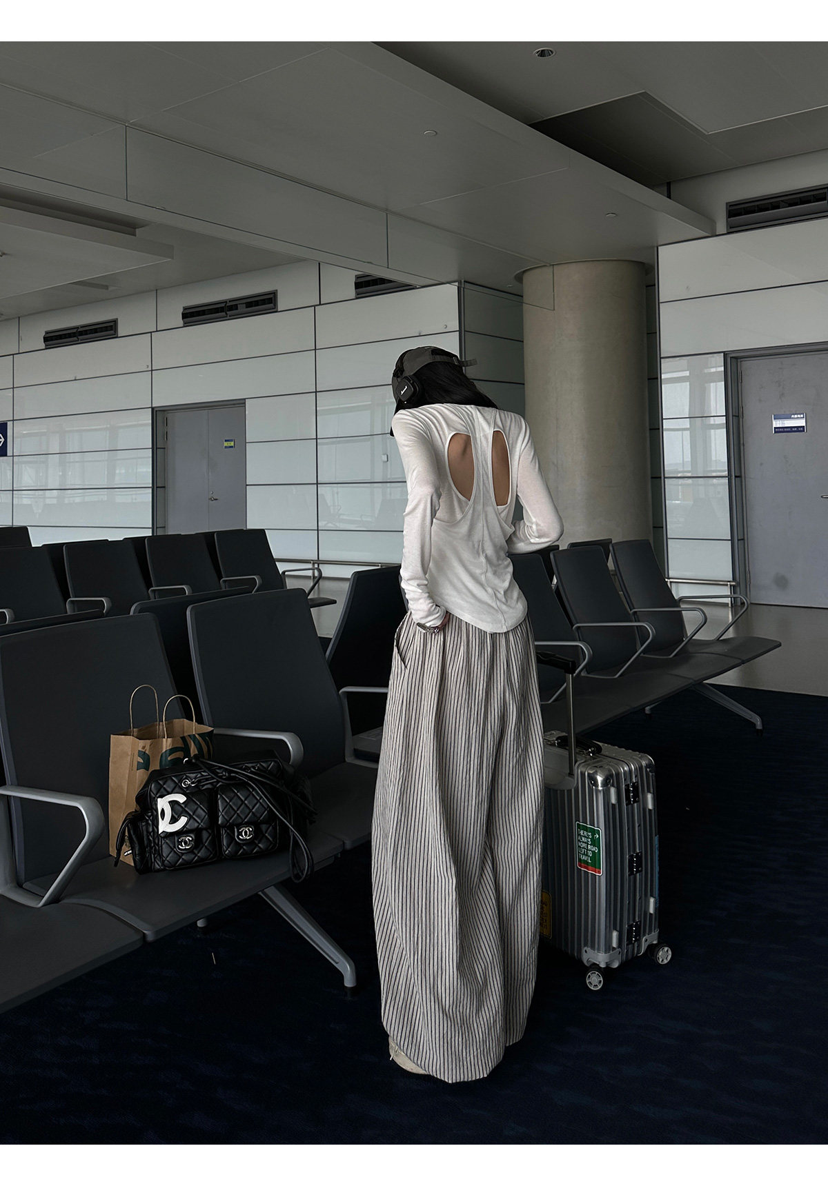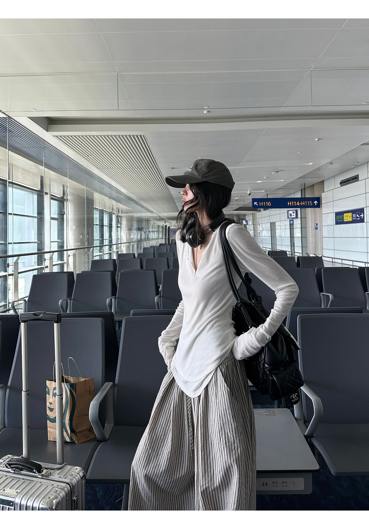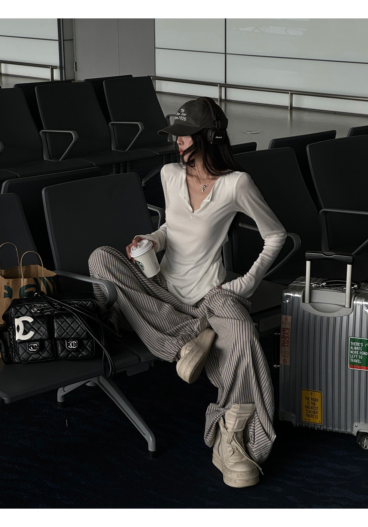 韩好甜WARDEN EDGE 卡其色条纹休闲 𫔮裤女夏宽松显瘦阔腿裤直筒长裤 [Original Page Link]