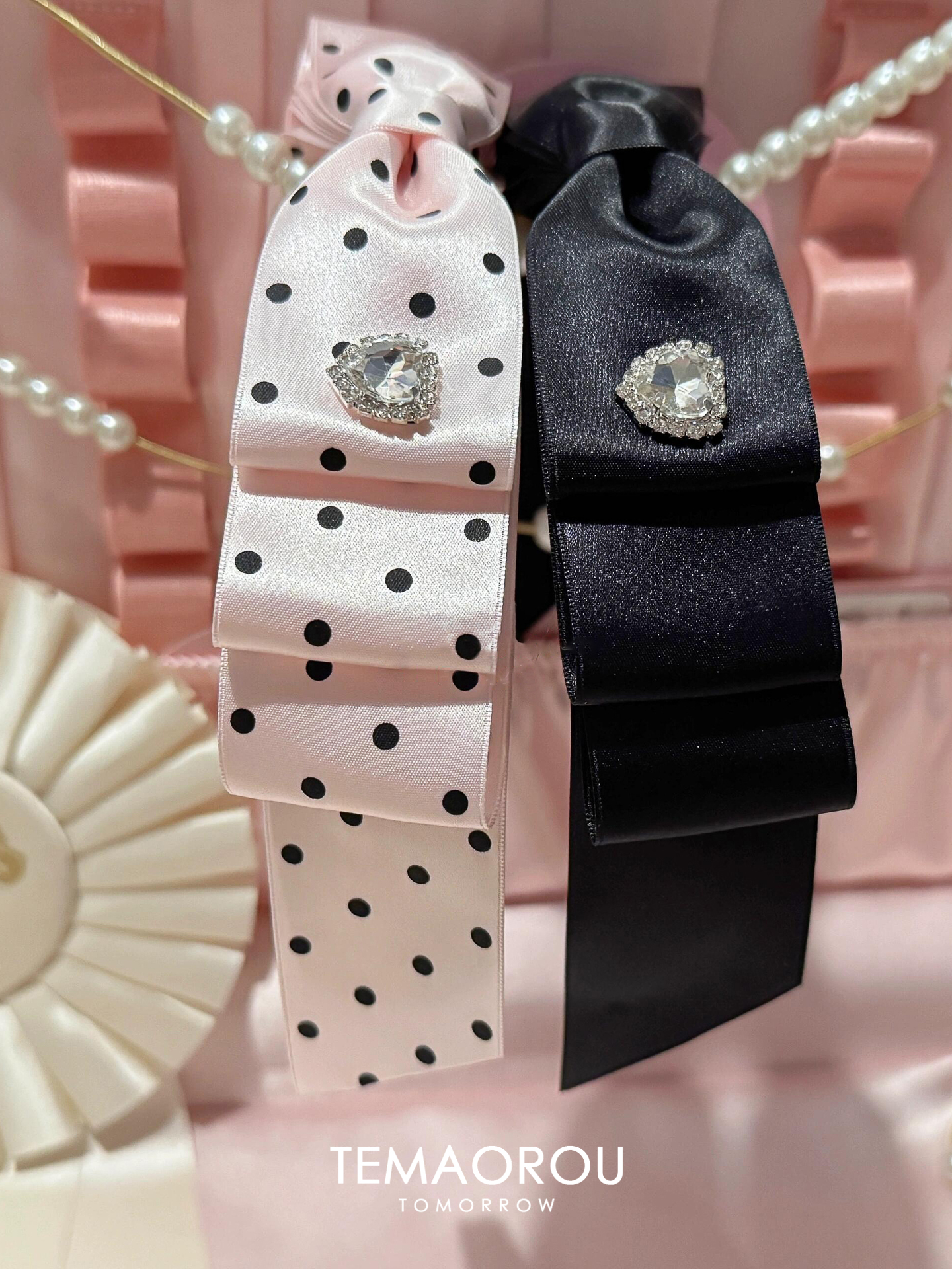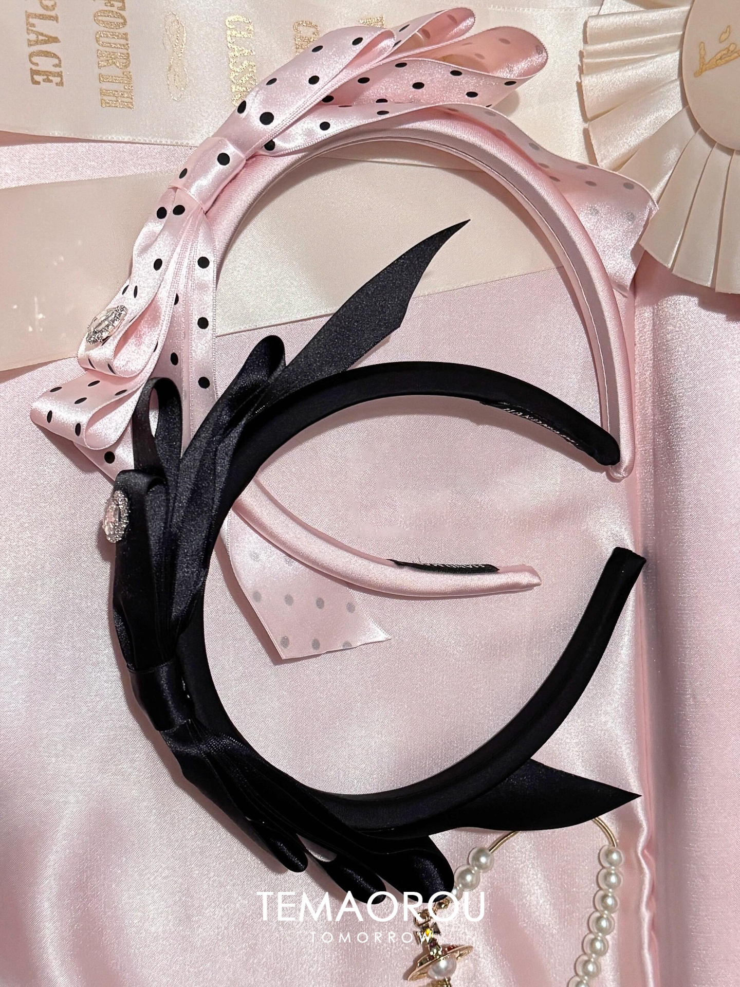 [The Princess in Distress] Sweet Pink Satin Polka Dot Bow Colorful Headband Qianjinfeng Headband Hair Accessories