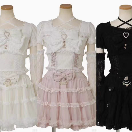 日系甜美可爱重工拼接袖绑带蕾丝蝴蝶结衬衫 [Original Page Link]