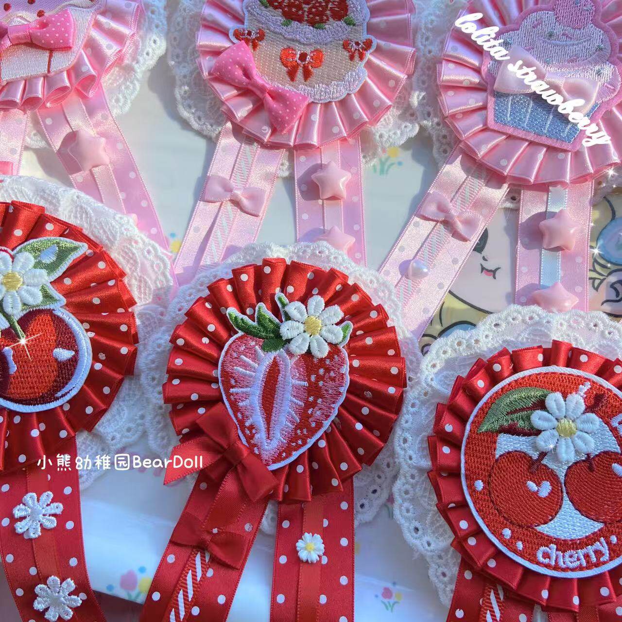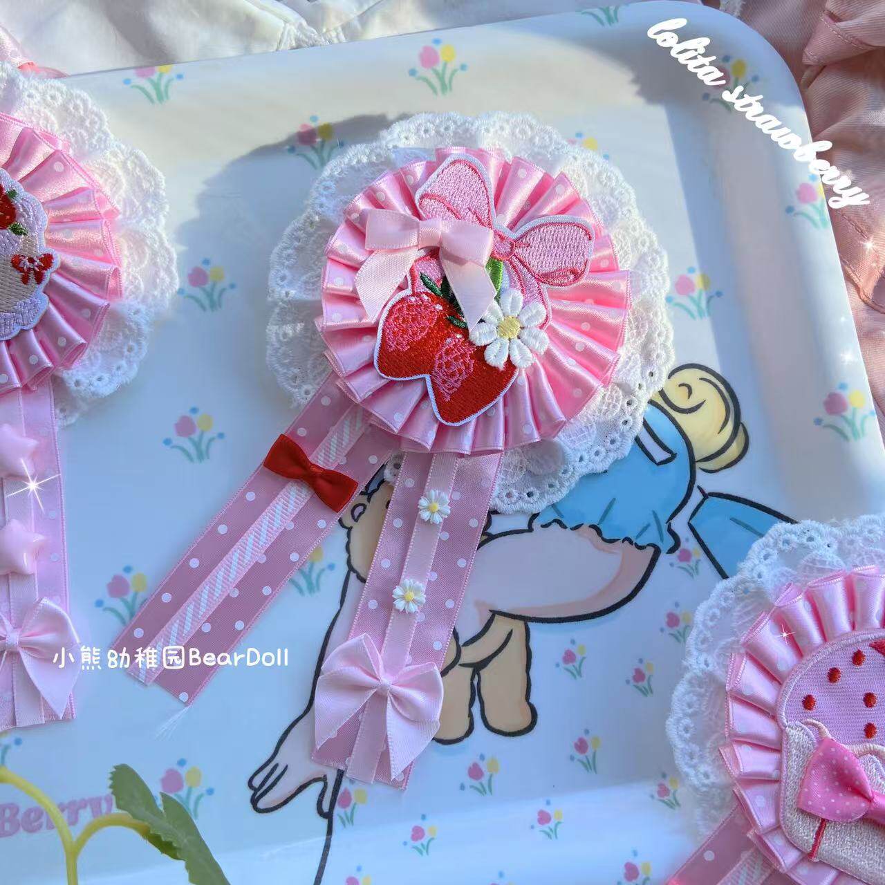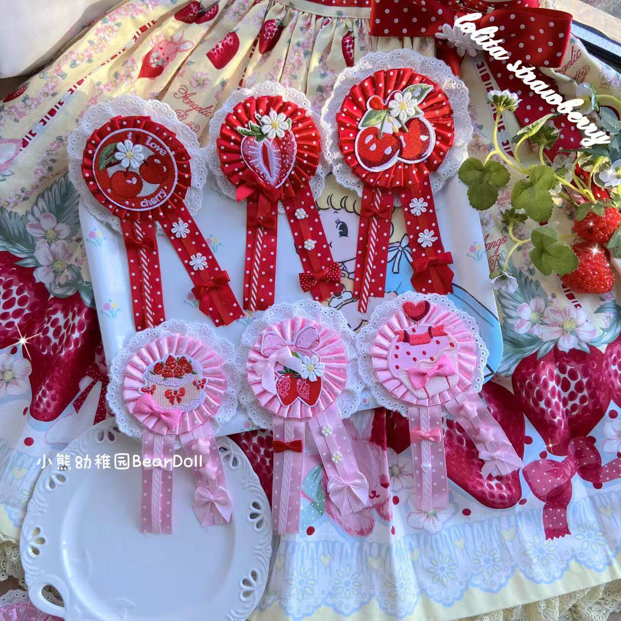 小熊幼稚园原创手作Lolita草莓樱桃胸章可爱发饰百搭胸针发夹配饰 [Original Page Link]