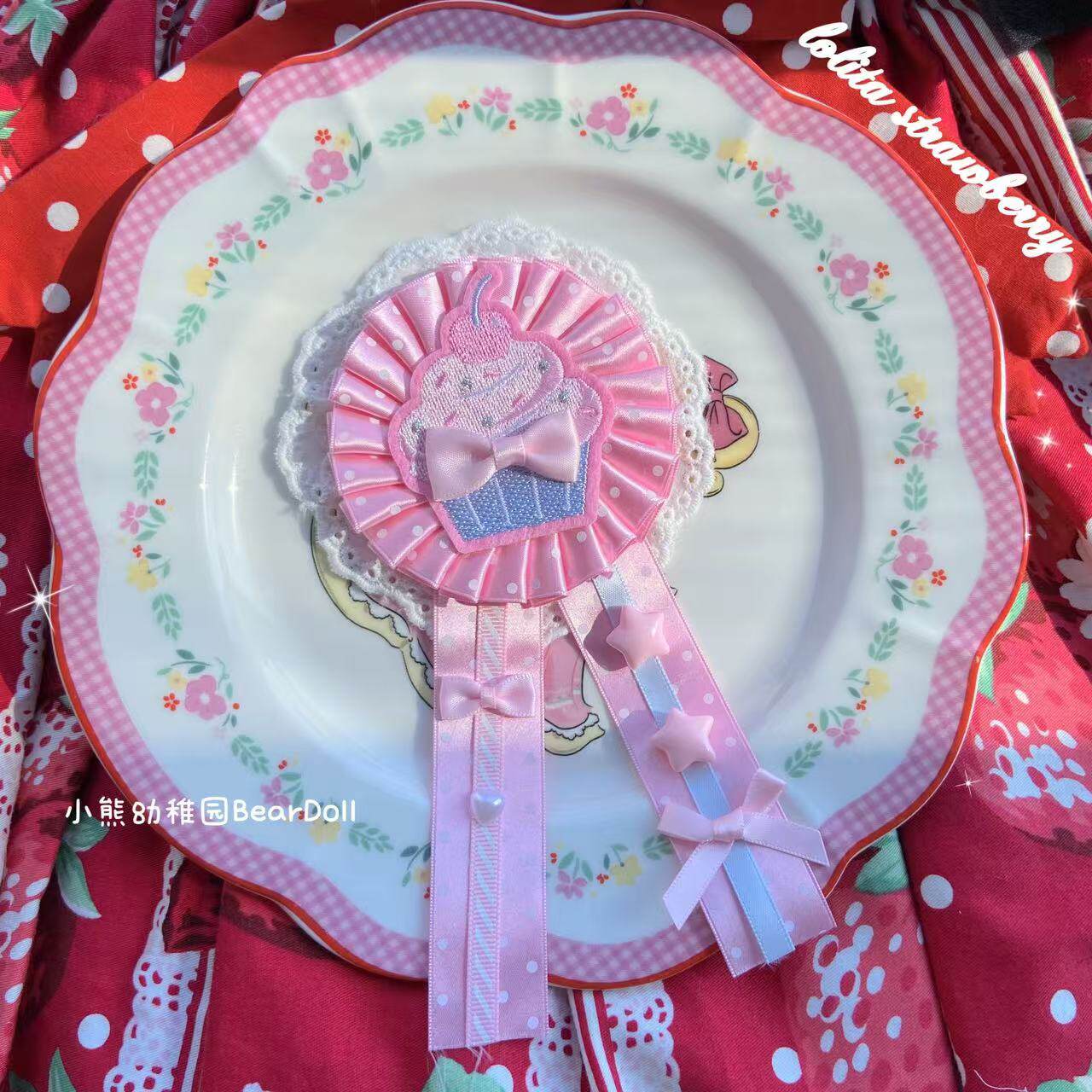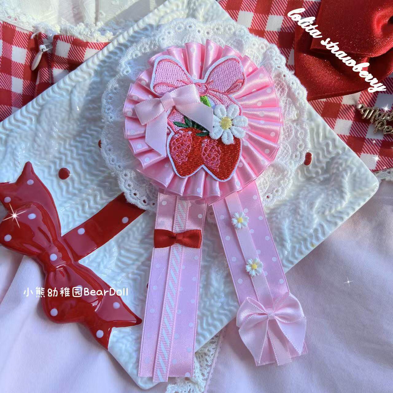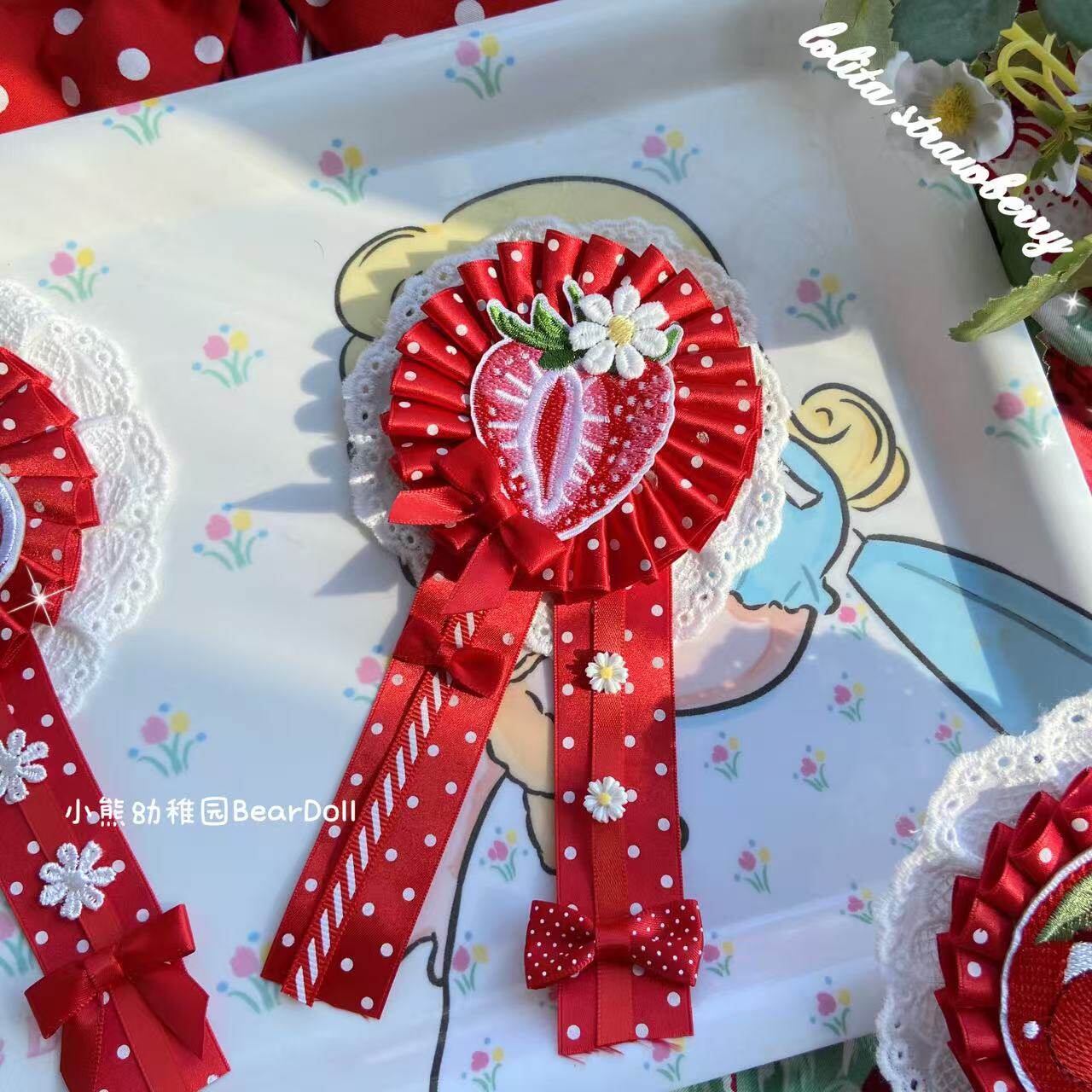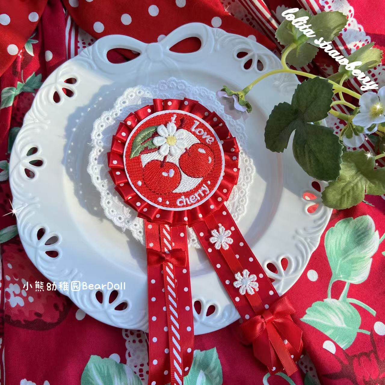 小熊幼稚园原创手作Lolita草莓樱桃胸章可爱发饰百搭胸针发夹配饰 [Original Page Link]