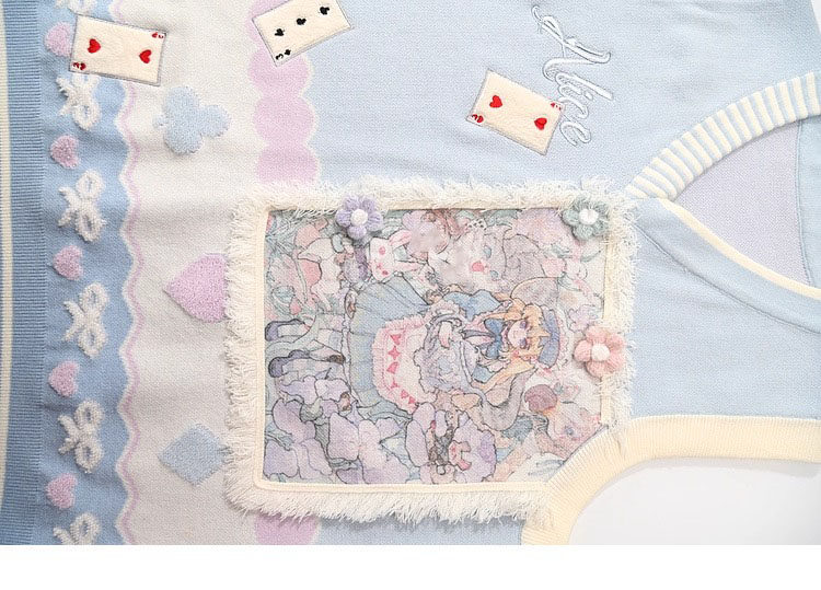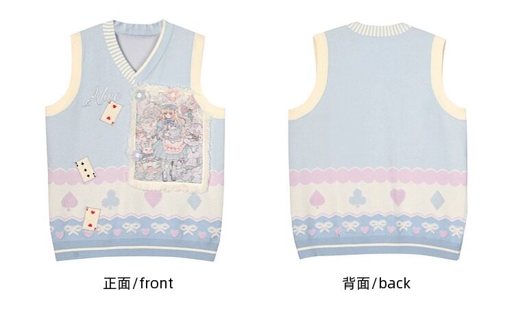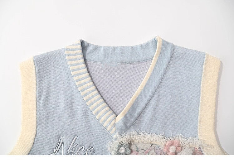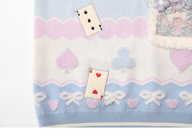 Alice Poker Embroidered V-neck Knitted Vest for Best Friends, Sweet and Loose Layered Sleeveless Sweater for Women in Autumn and Winter