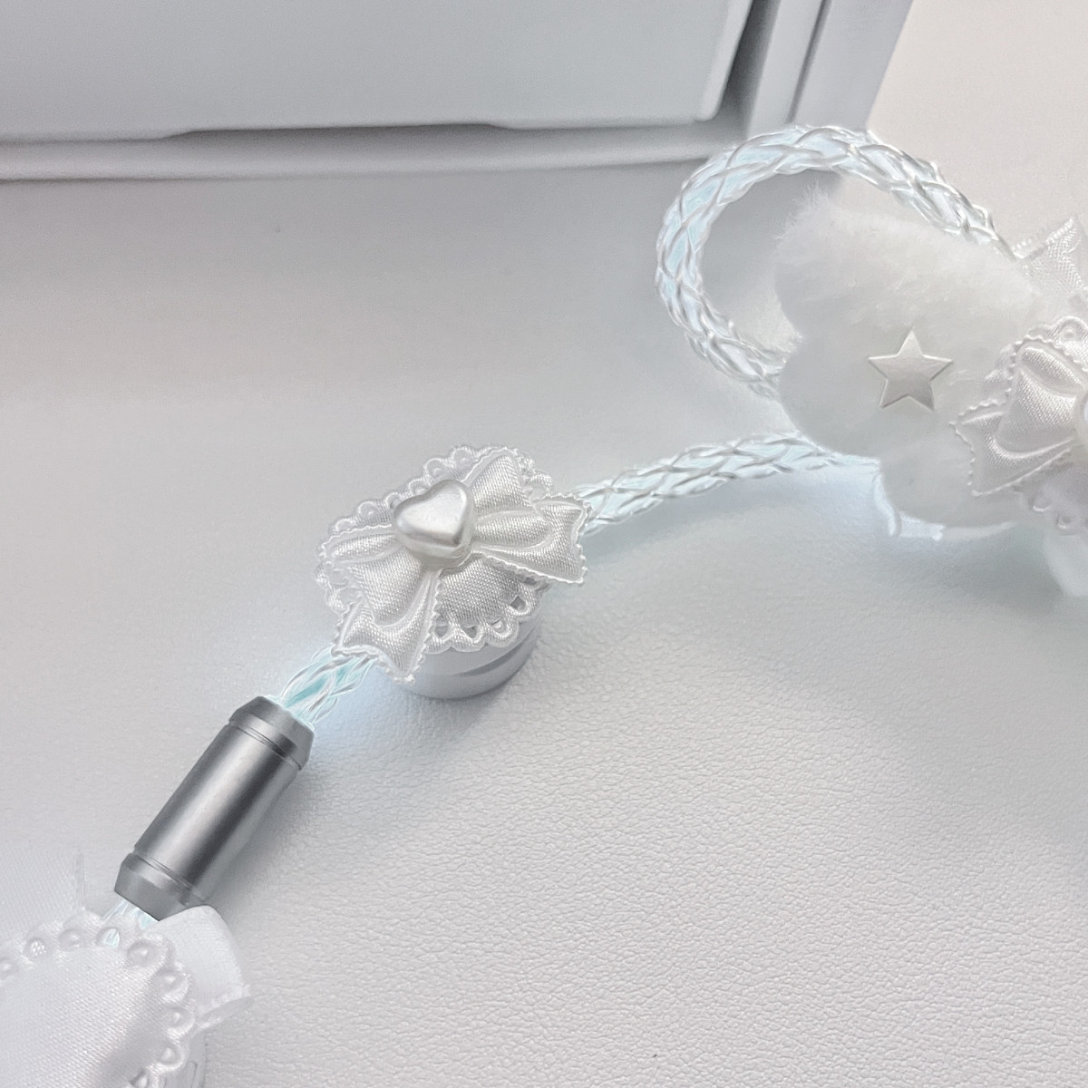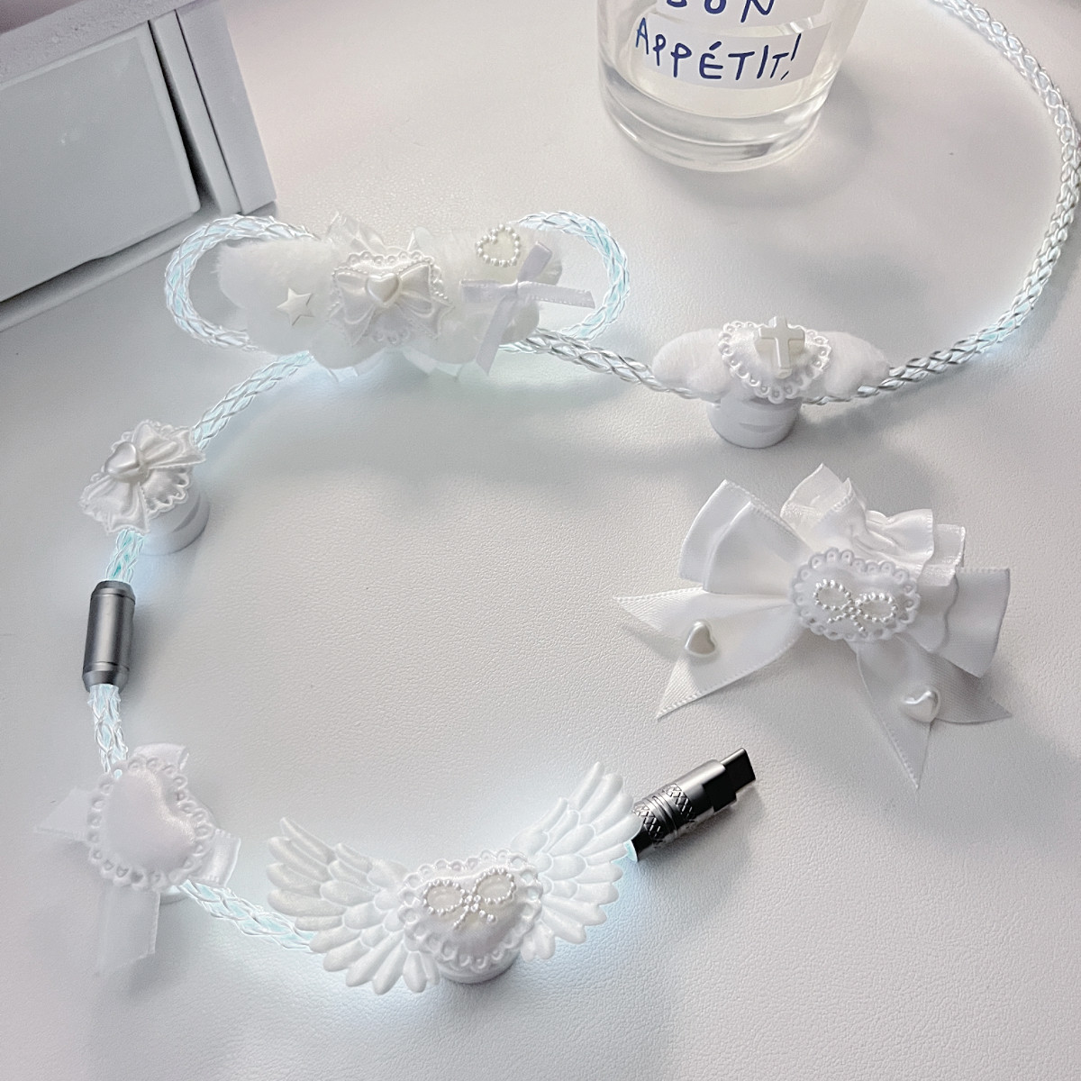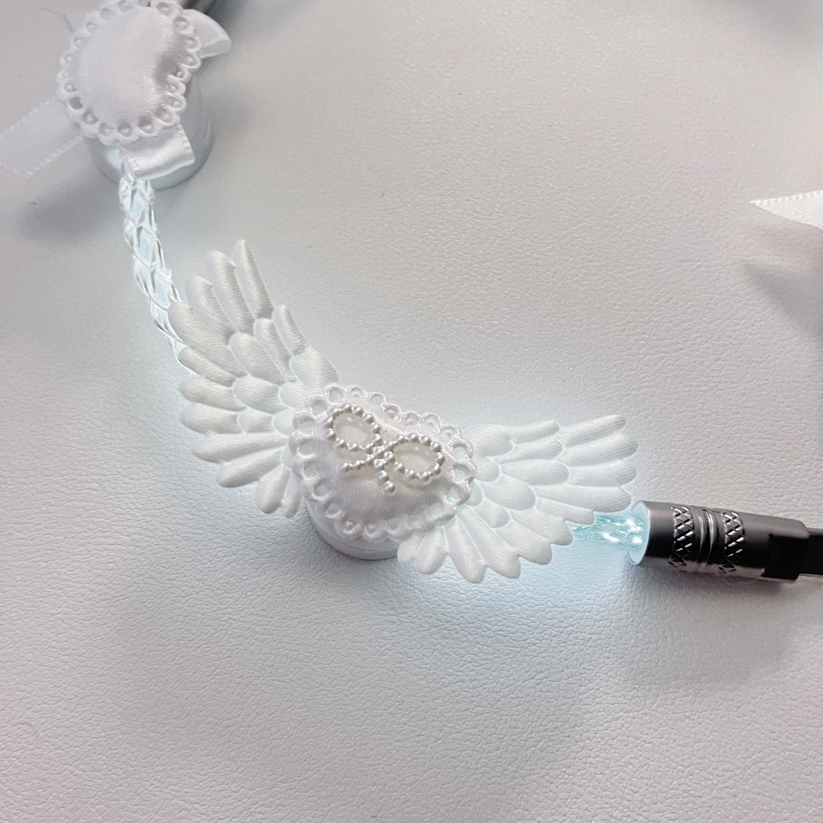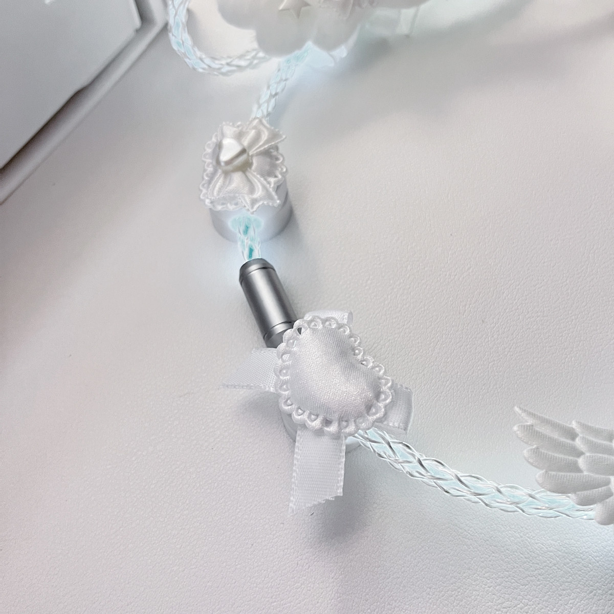纯白蝴蝶结装饰原创定制版白光发光单晶铜航插线磁轴机械键盘通用 [Original Page Link]
