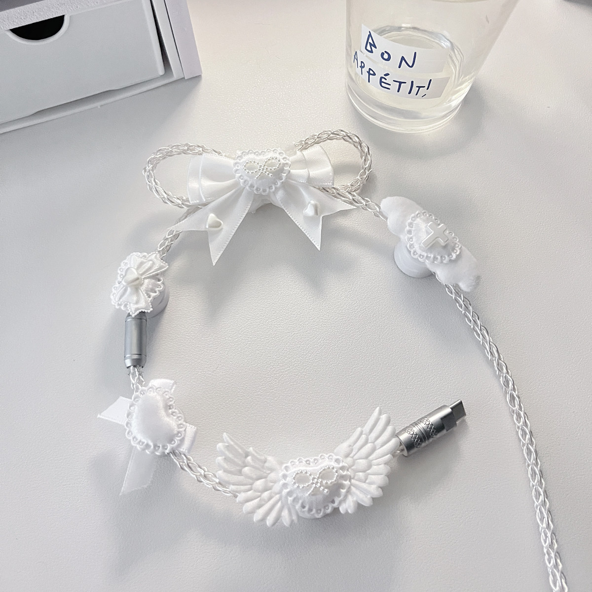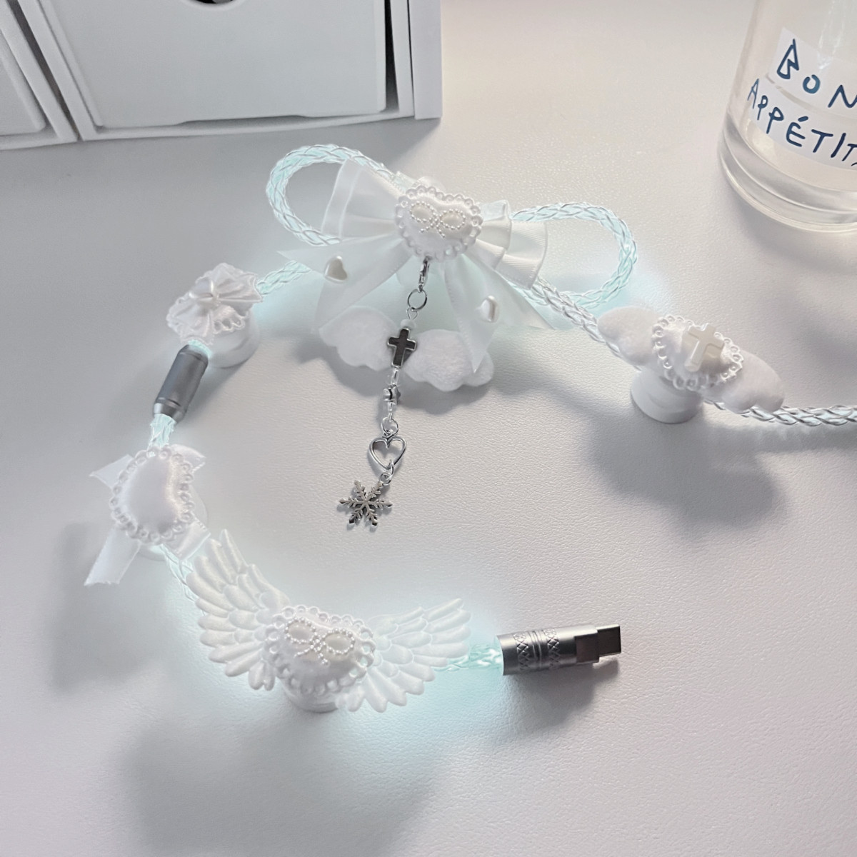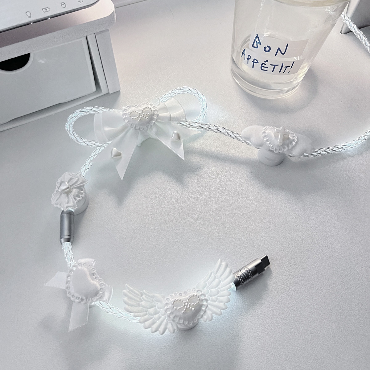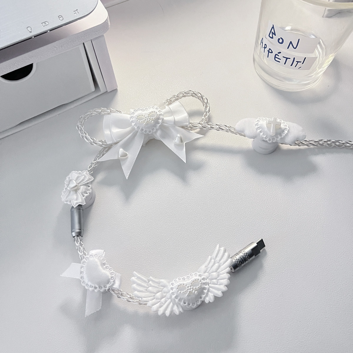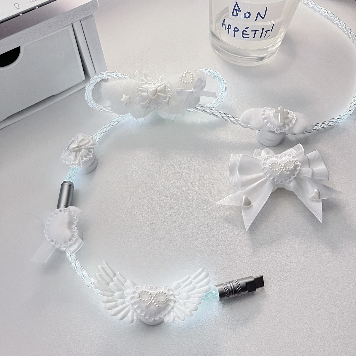 纯白蝴蝶结装饰原创定制版白光发光单晶铜航插线磁轴机械键盘通用 [Original Page Link]