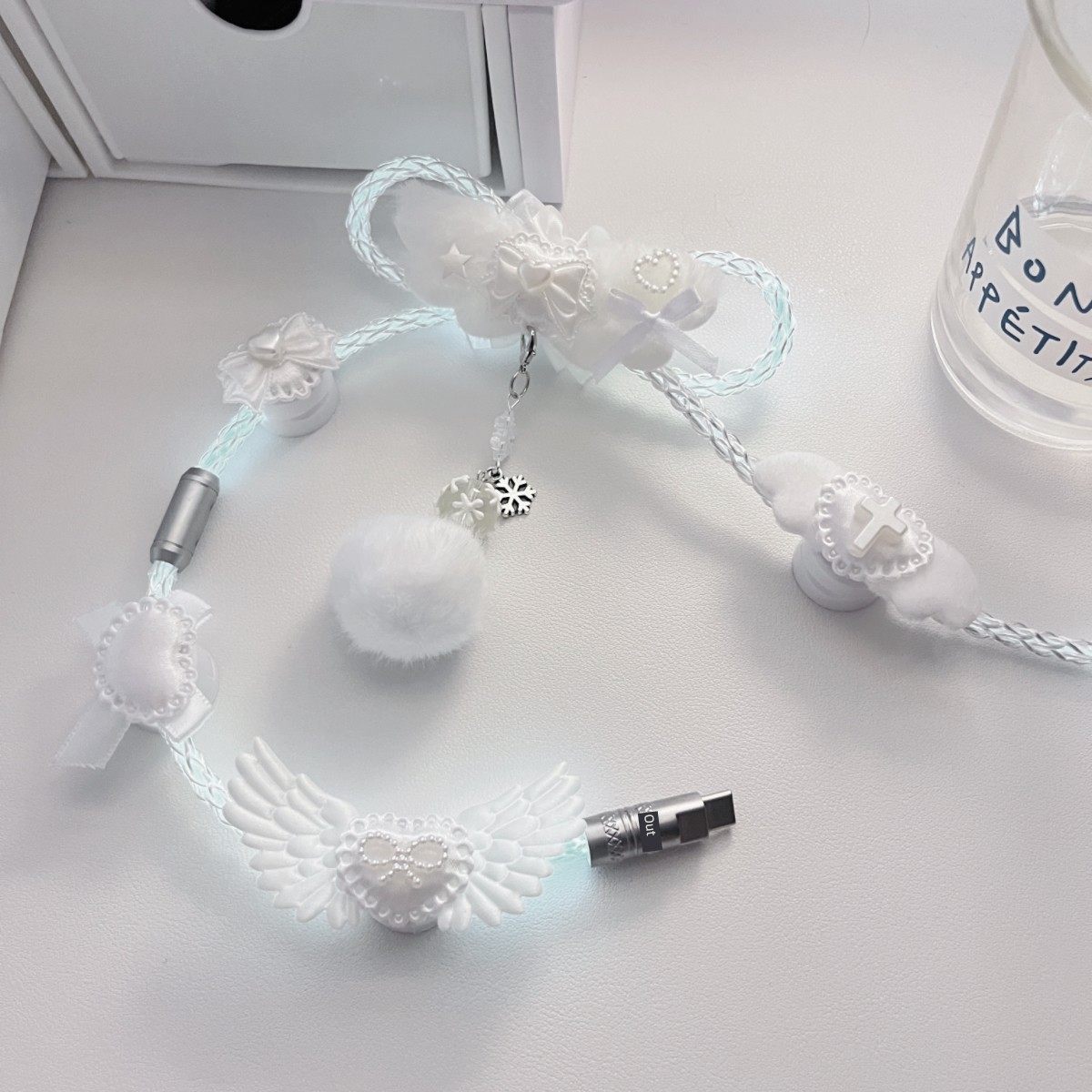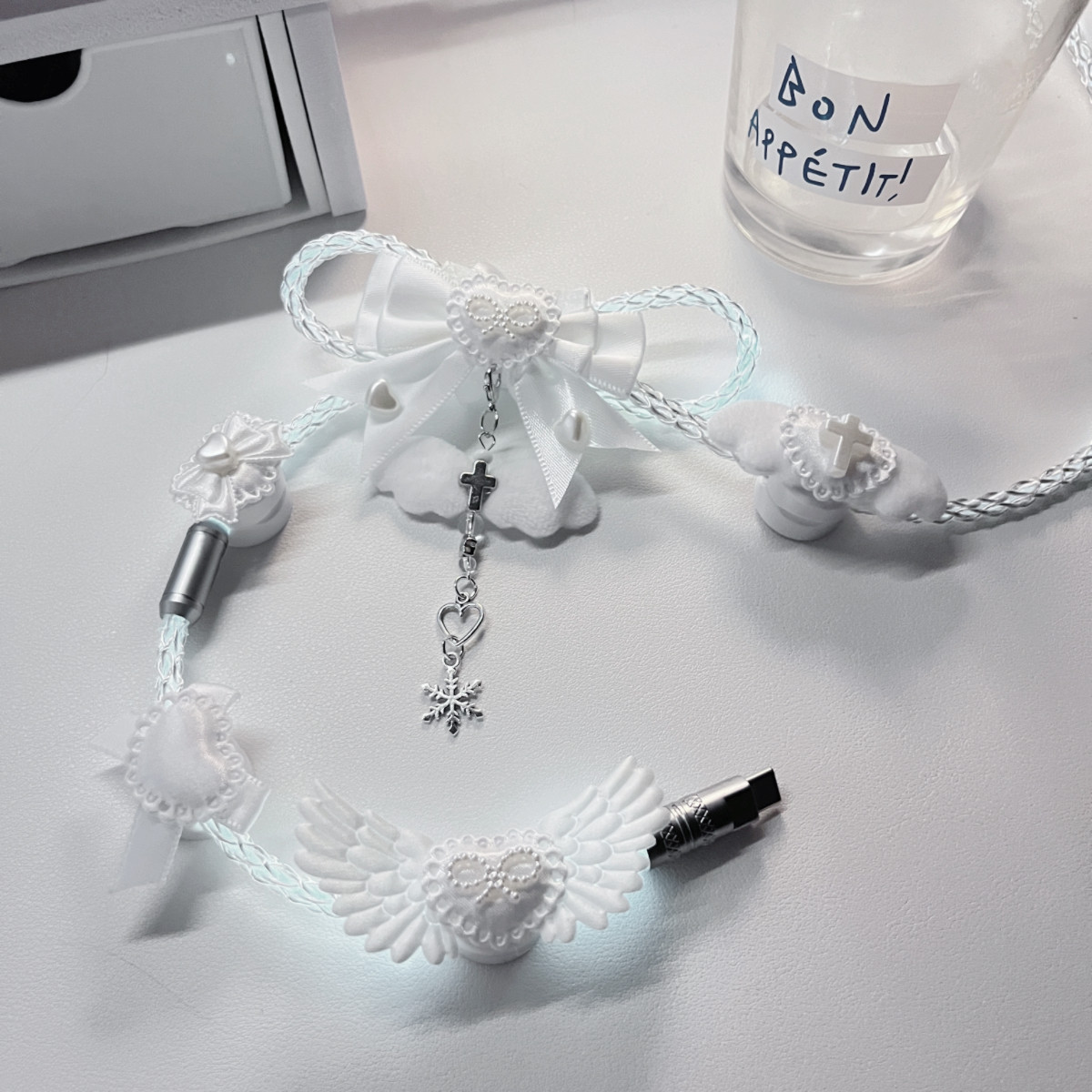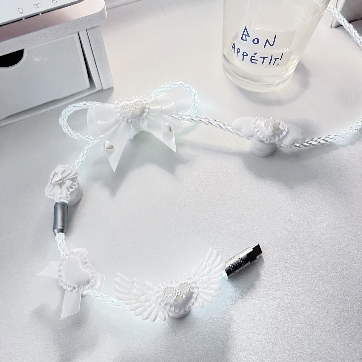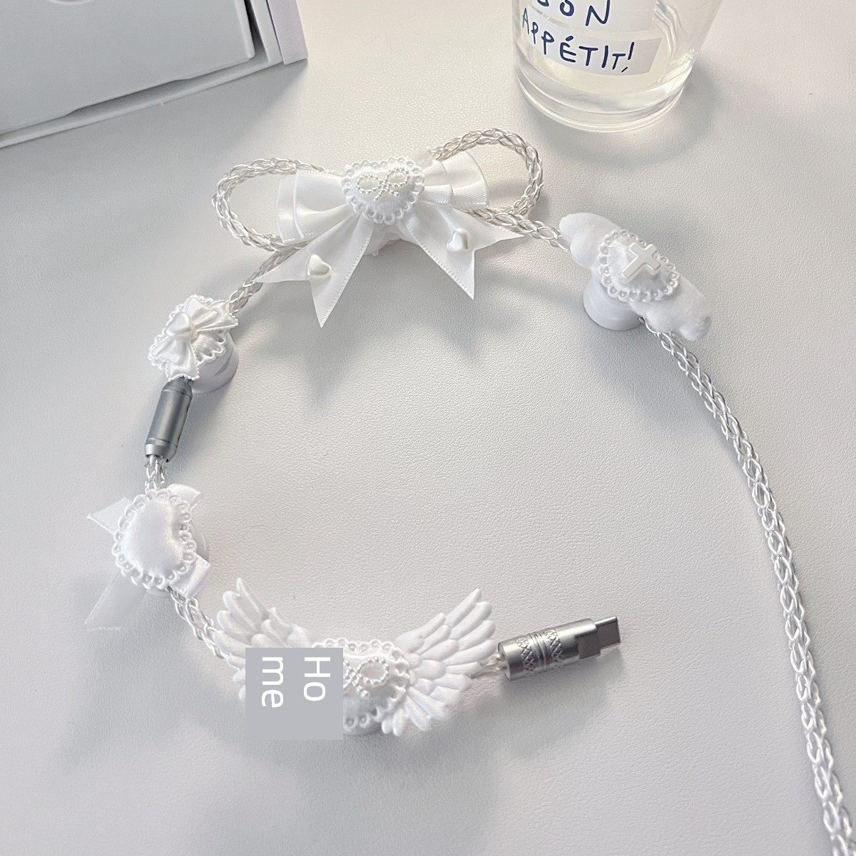纯白蝴蝶结装饰原创定制版白光发光单晶铜航插线磁轴机械键盘通用 [Original Page Link]
