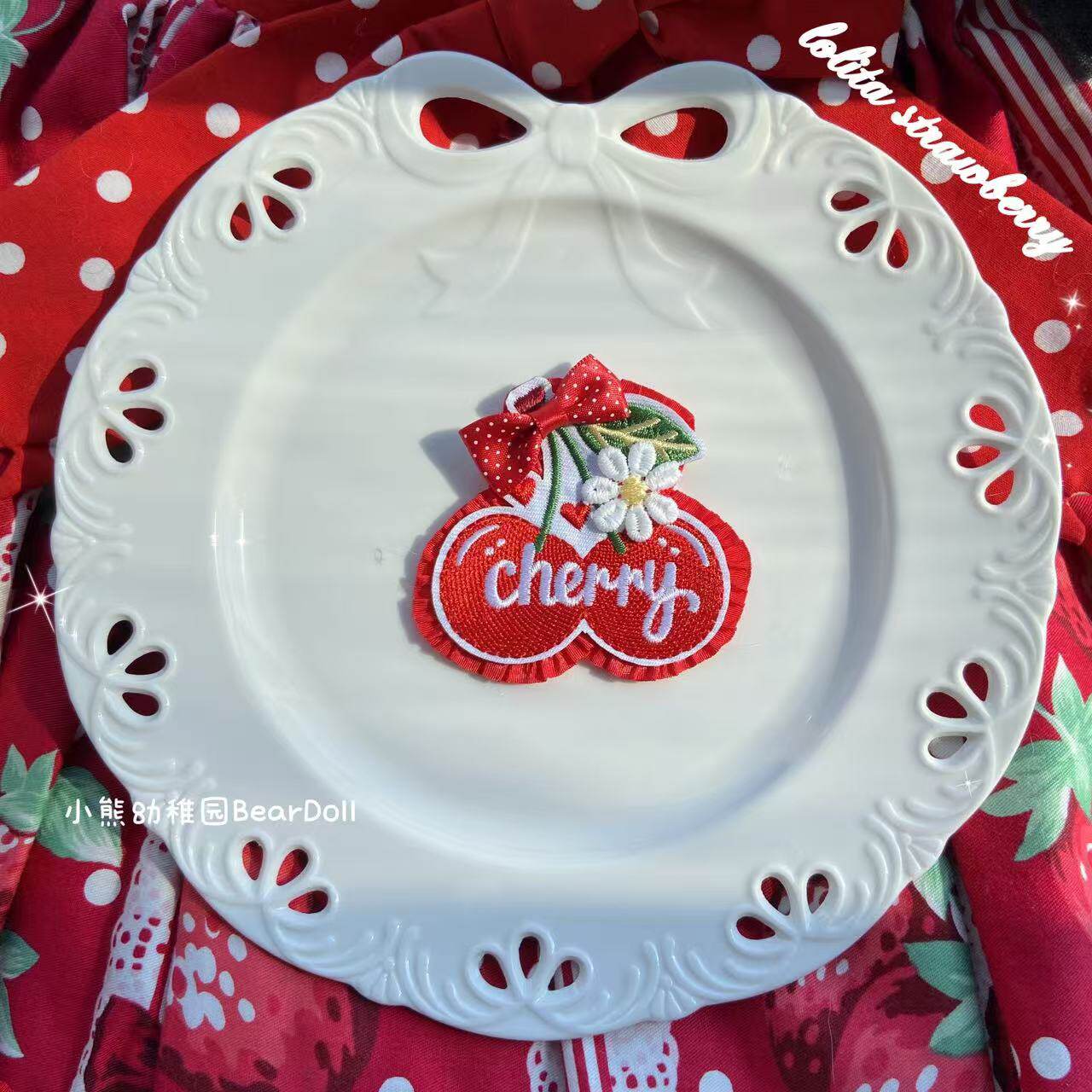 Bear Kindergarten original handmade strawberry cherry Lolita badge cute hair accessories versatile brooch hairpin accessories