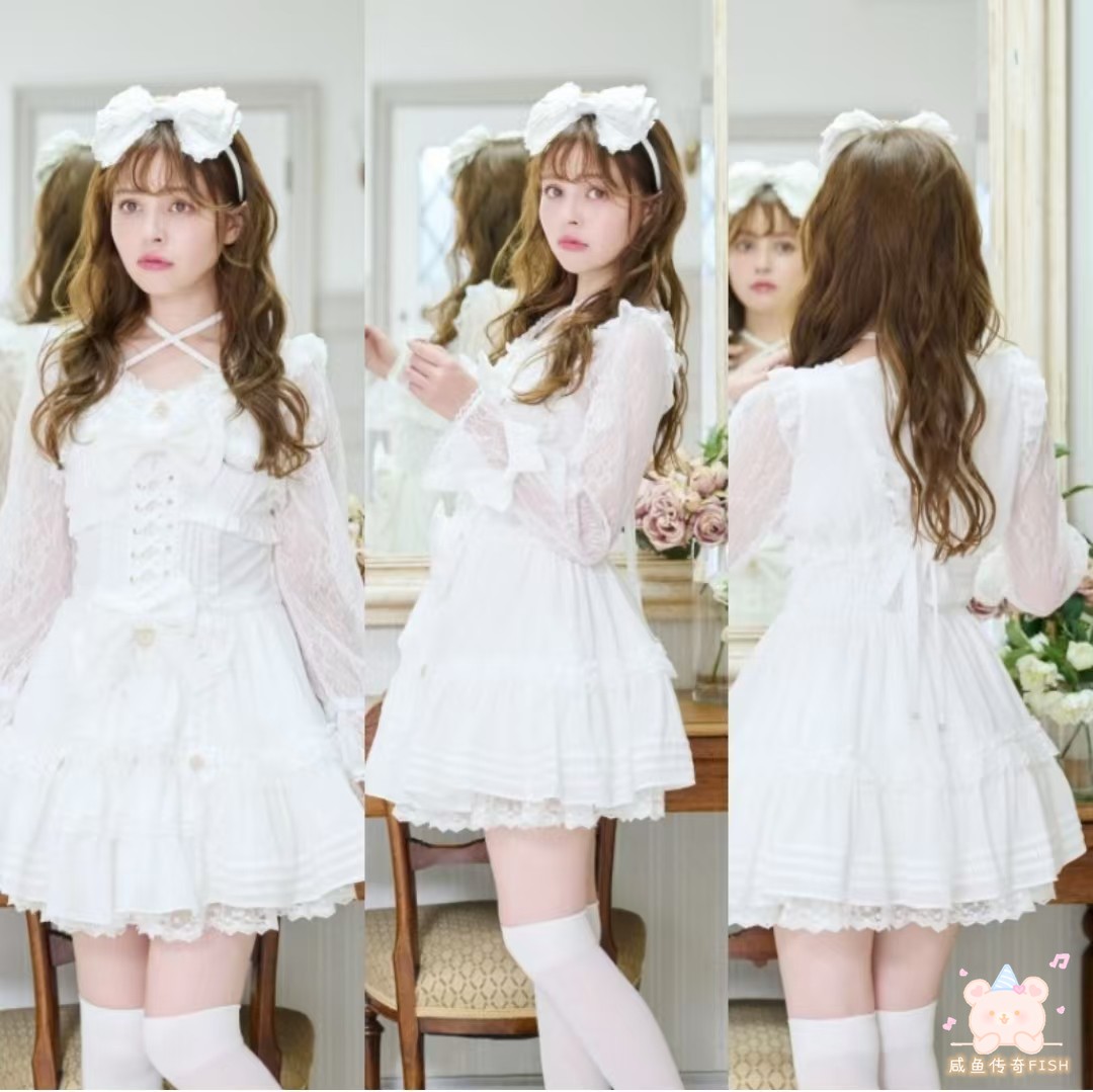 Salted Fish Legend Liz White Snow D Crown Love Pendant Big Bow Lace Headband Hair Accessories Lolita Small Items