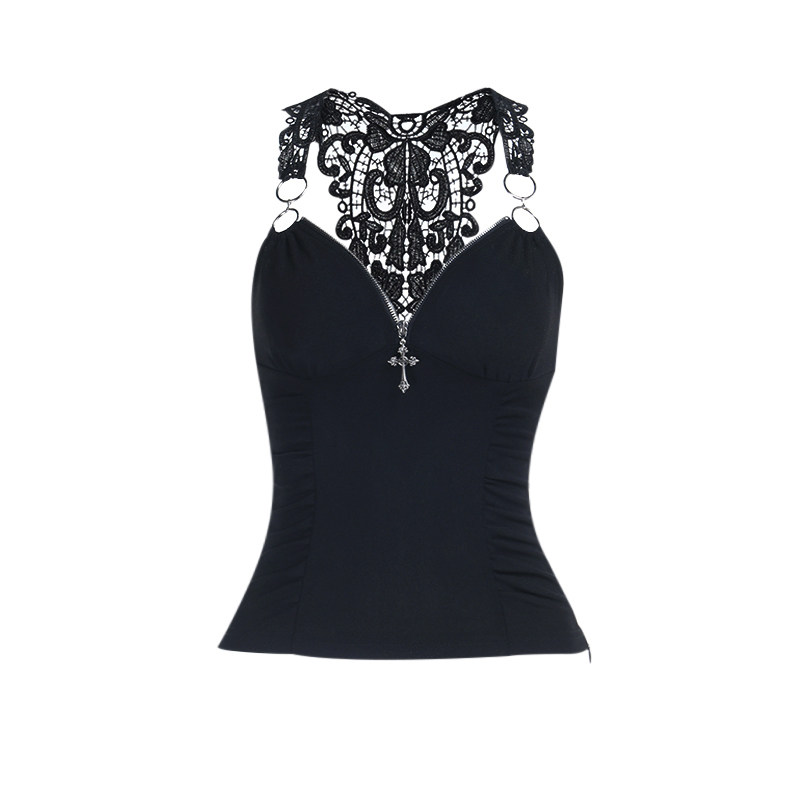 Lastself 暗黑圣徽 复古气质蕾丝拼接吊带美背哥特风设计感背心女 [Original Page Link]