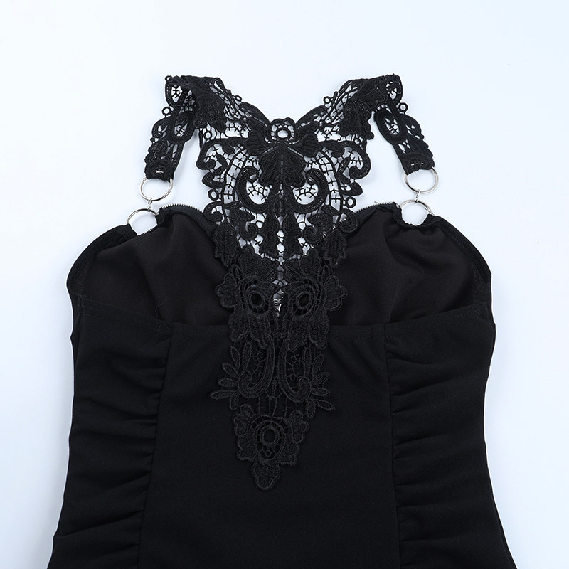 Lastself Dark Elegant Retro Lace-Trimmed Camisole with Beautiful Back and Gothic Design for Women