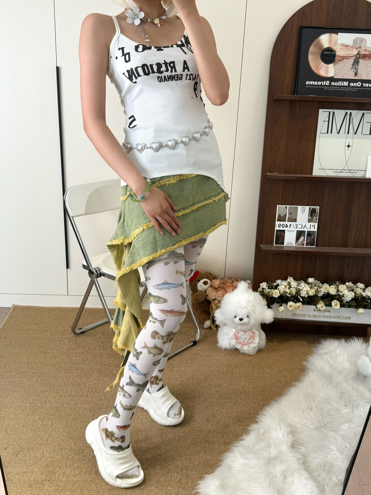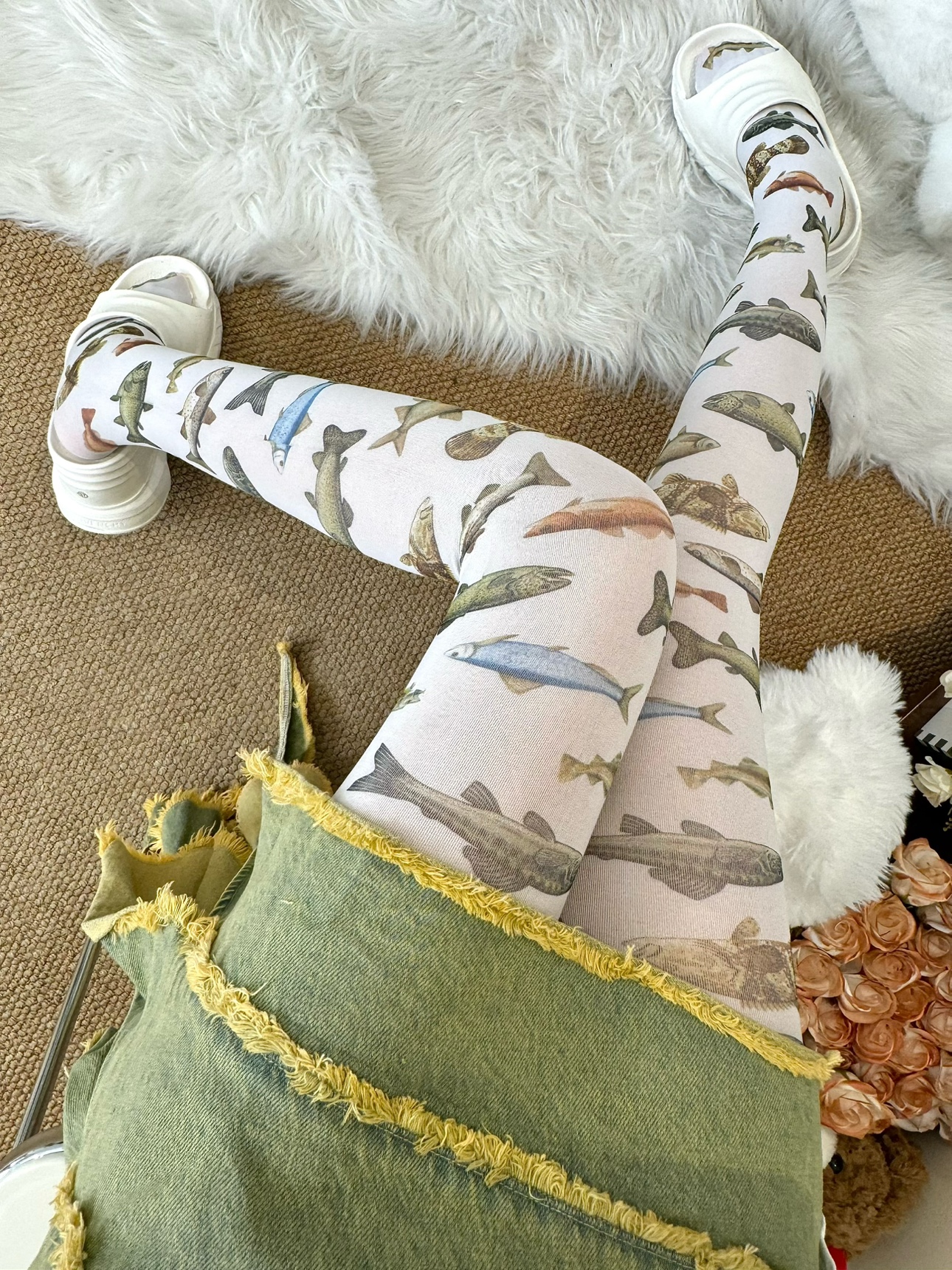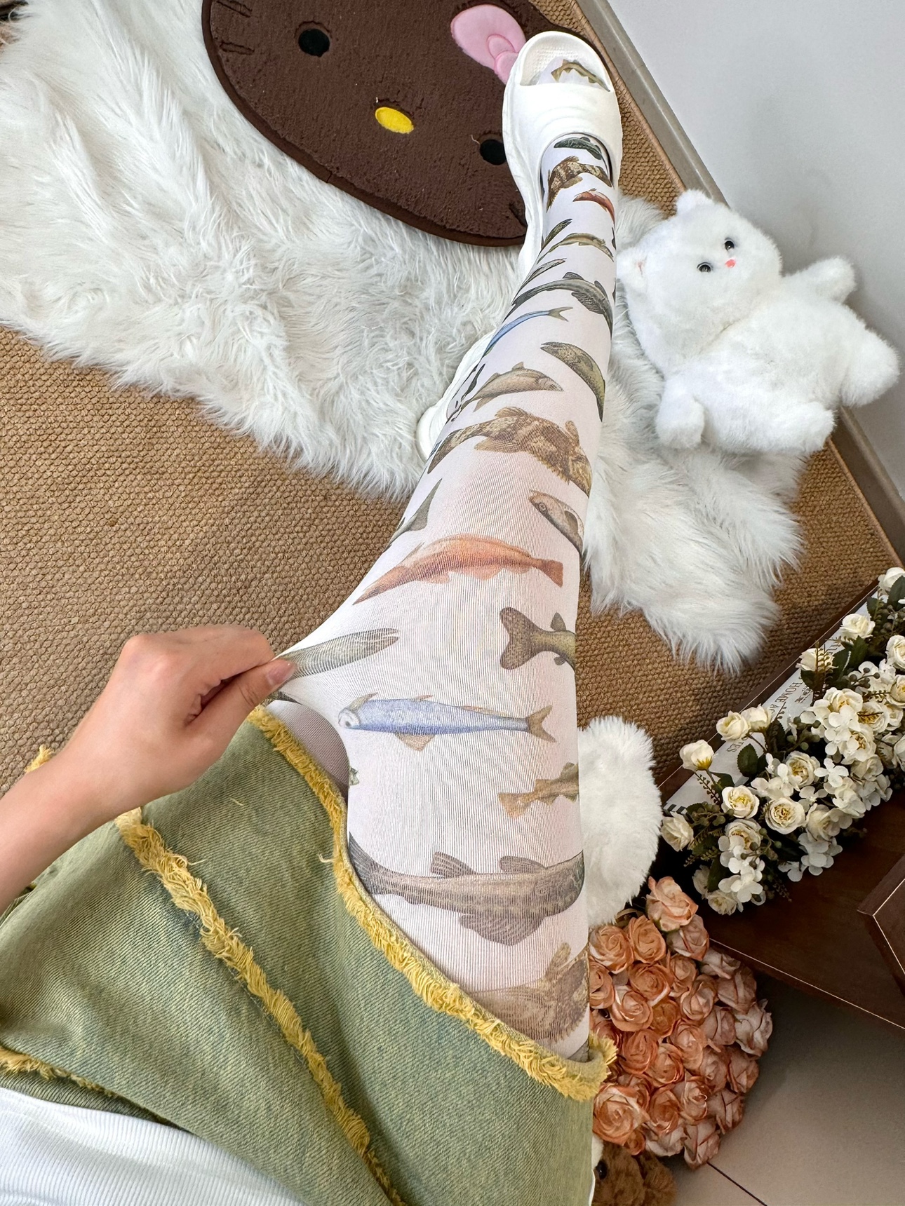 BON 自然海洋彩色热带鱼印花打底袜高级白色丝袜个性y2k辣妹穿搭 [Original Page Link]