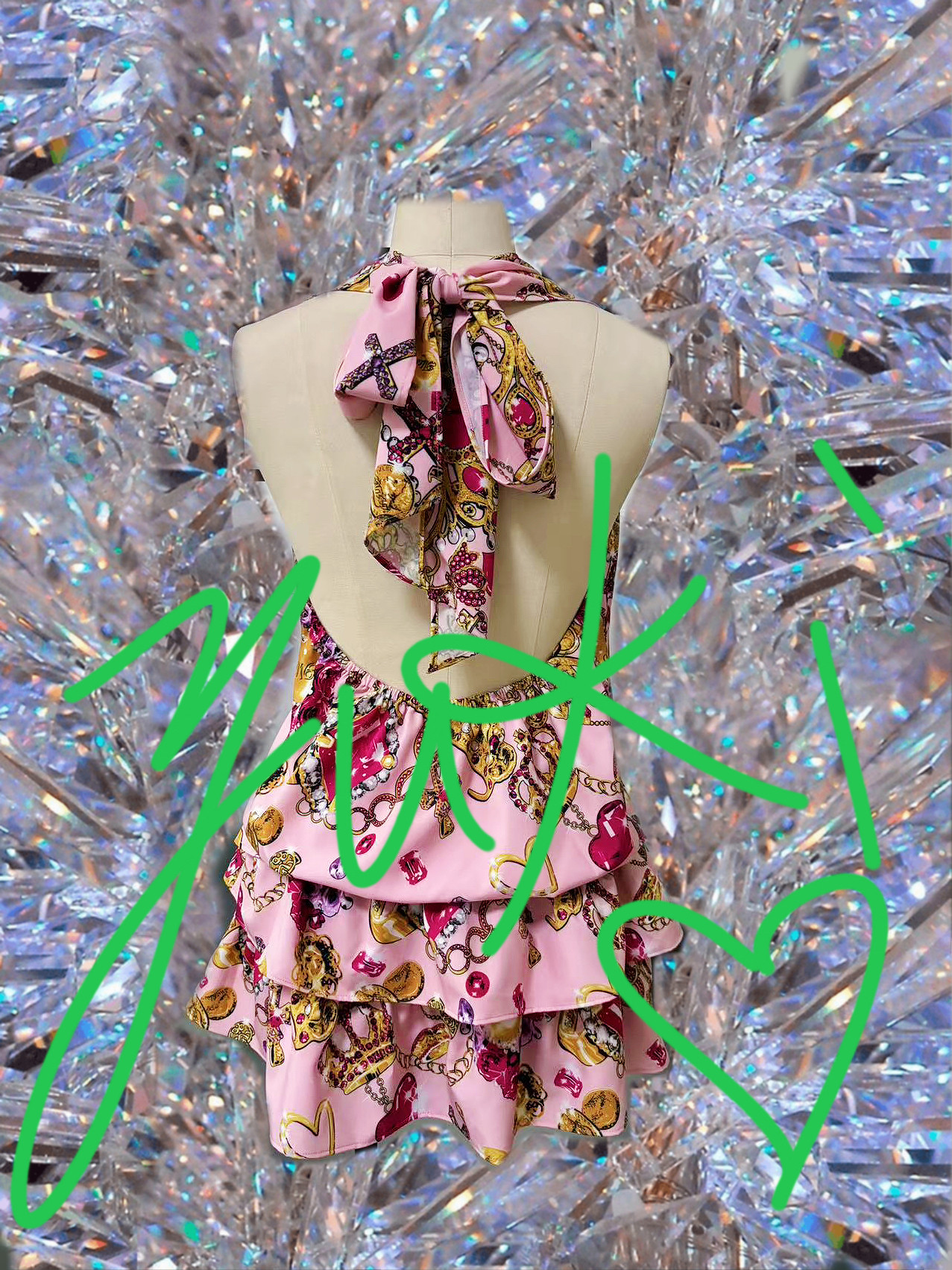 现货,宝石挂颈露背上衣加半身裙套装,日系亚文化辣妹不tui不换 [Original Page Link]