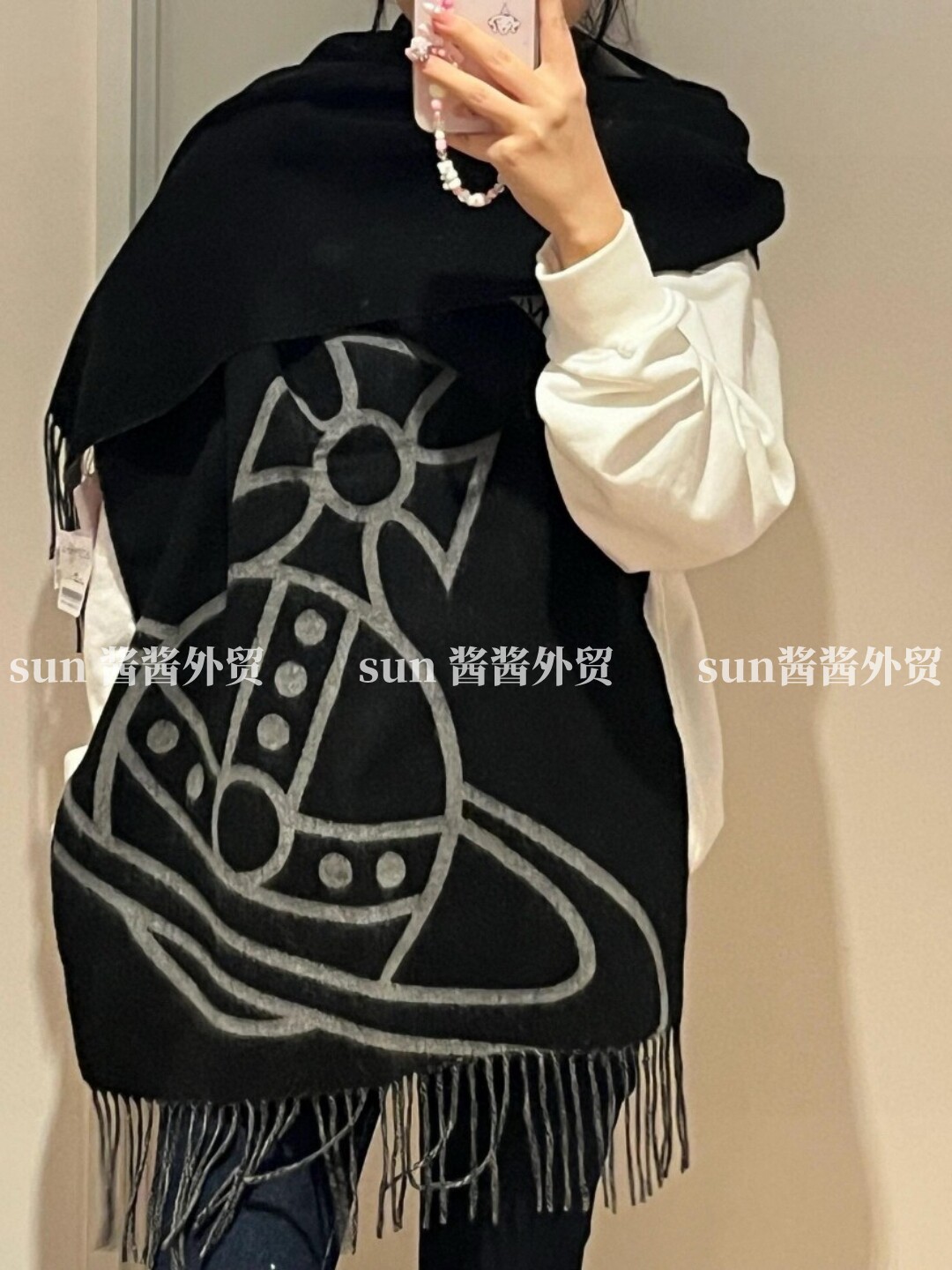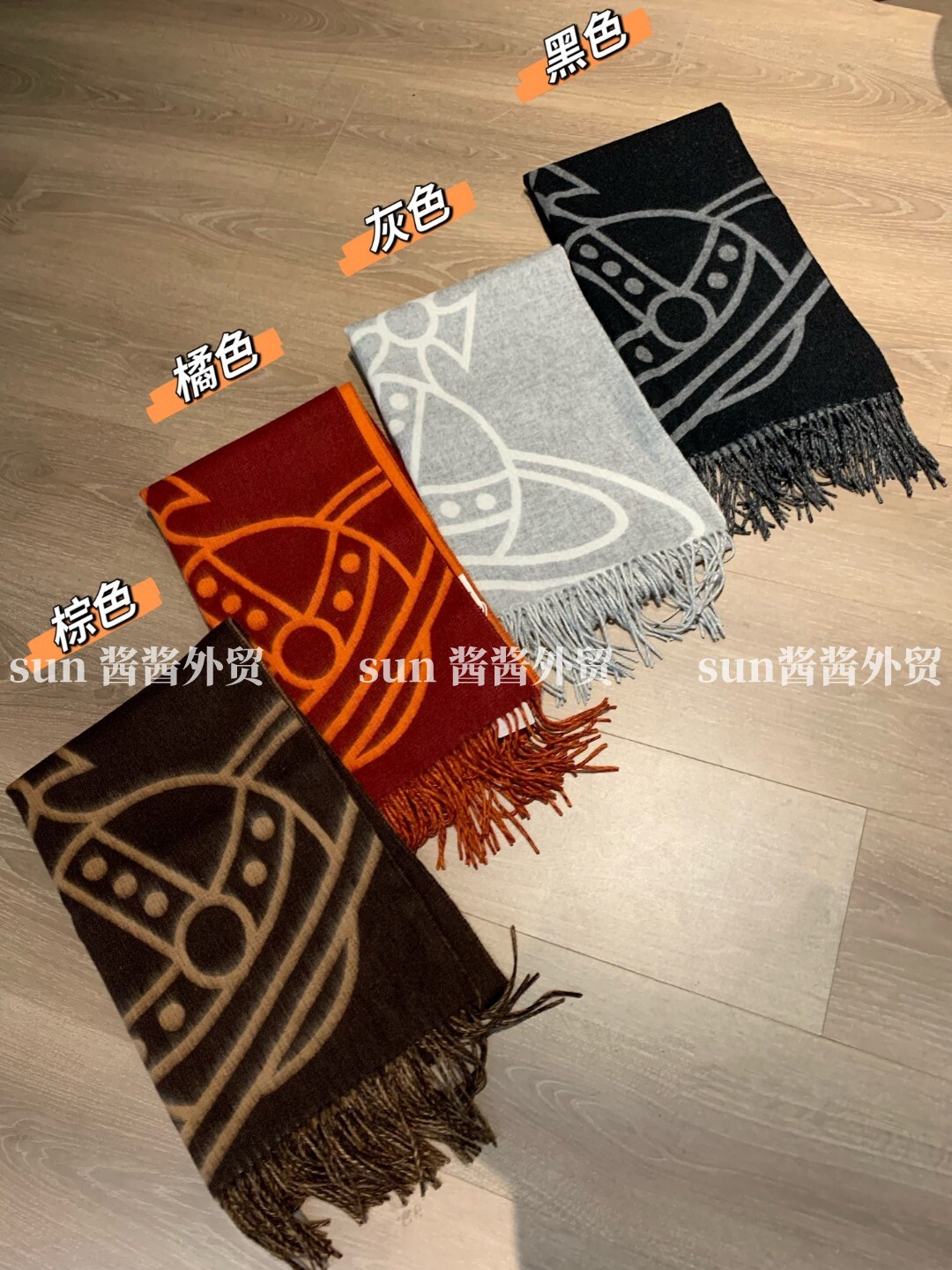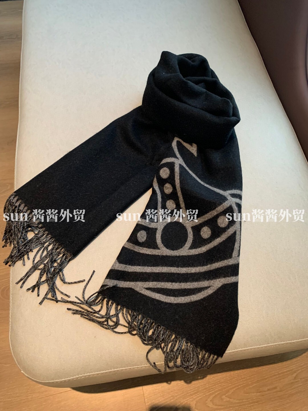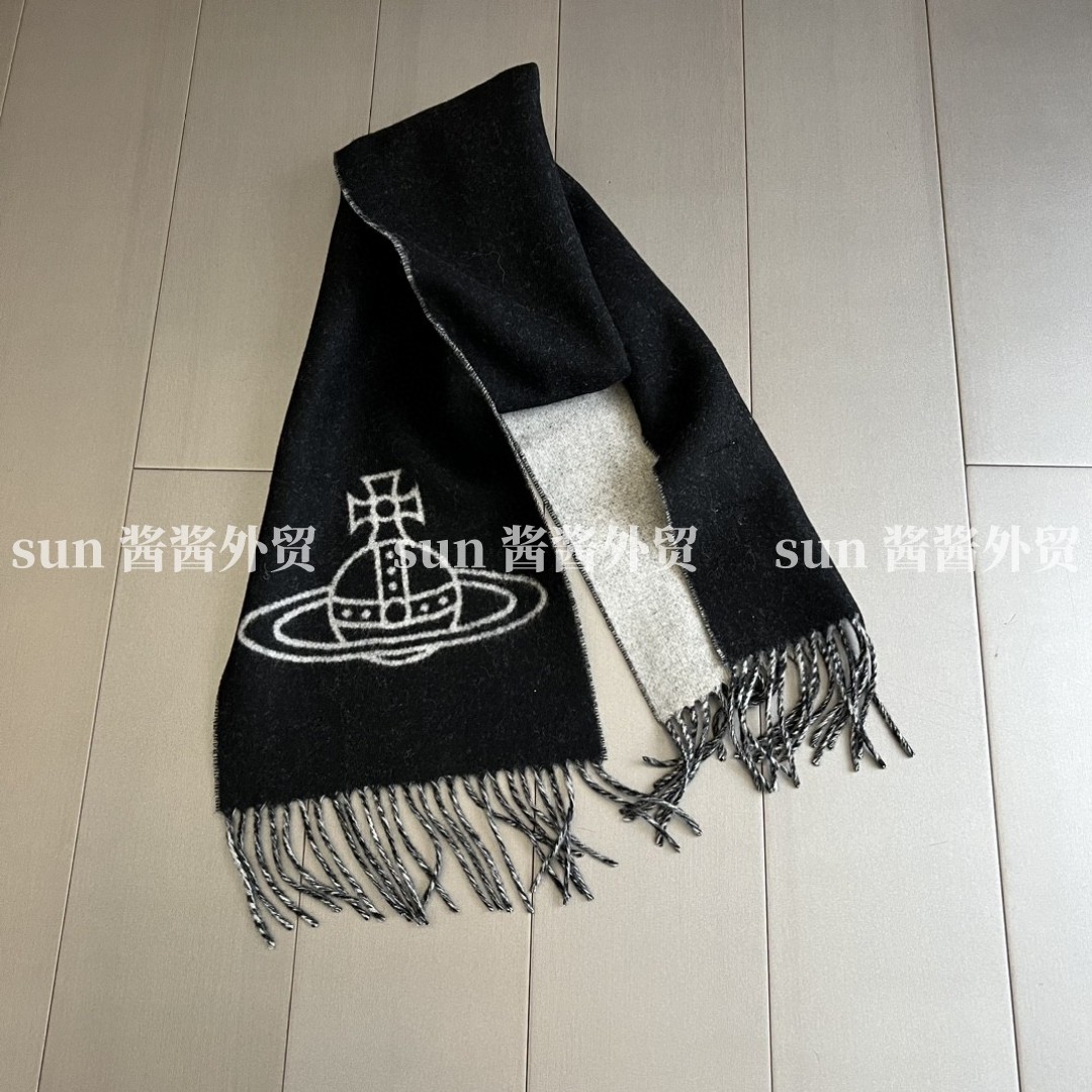 美拉德色系土星图案双面羊毛提花围巾保暖洋气流苏百搭围脖披肩 [Original Page Link]