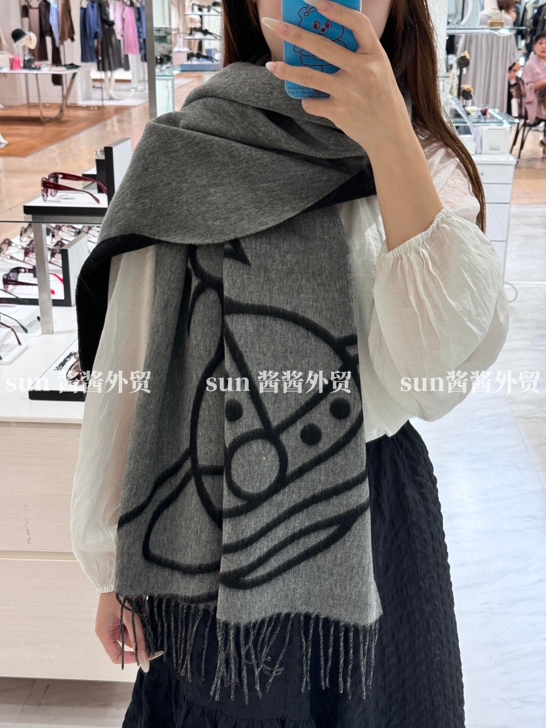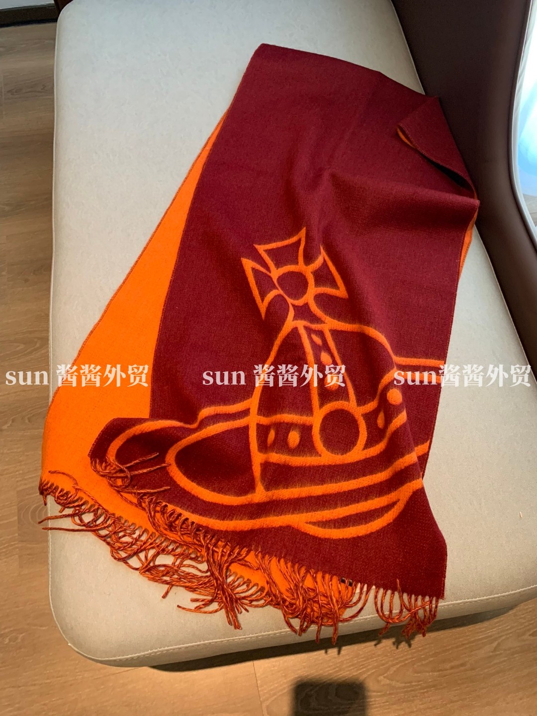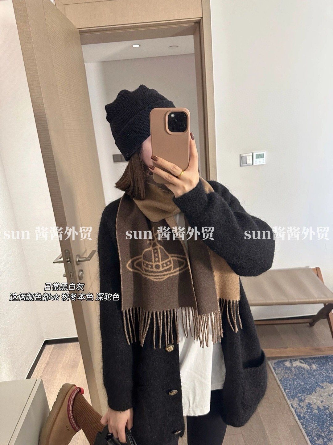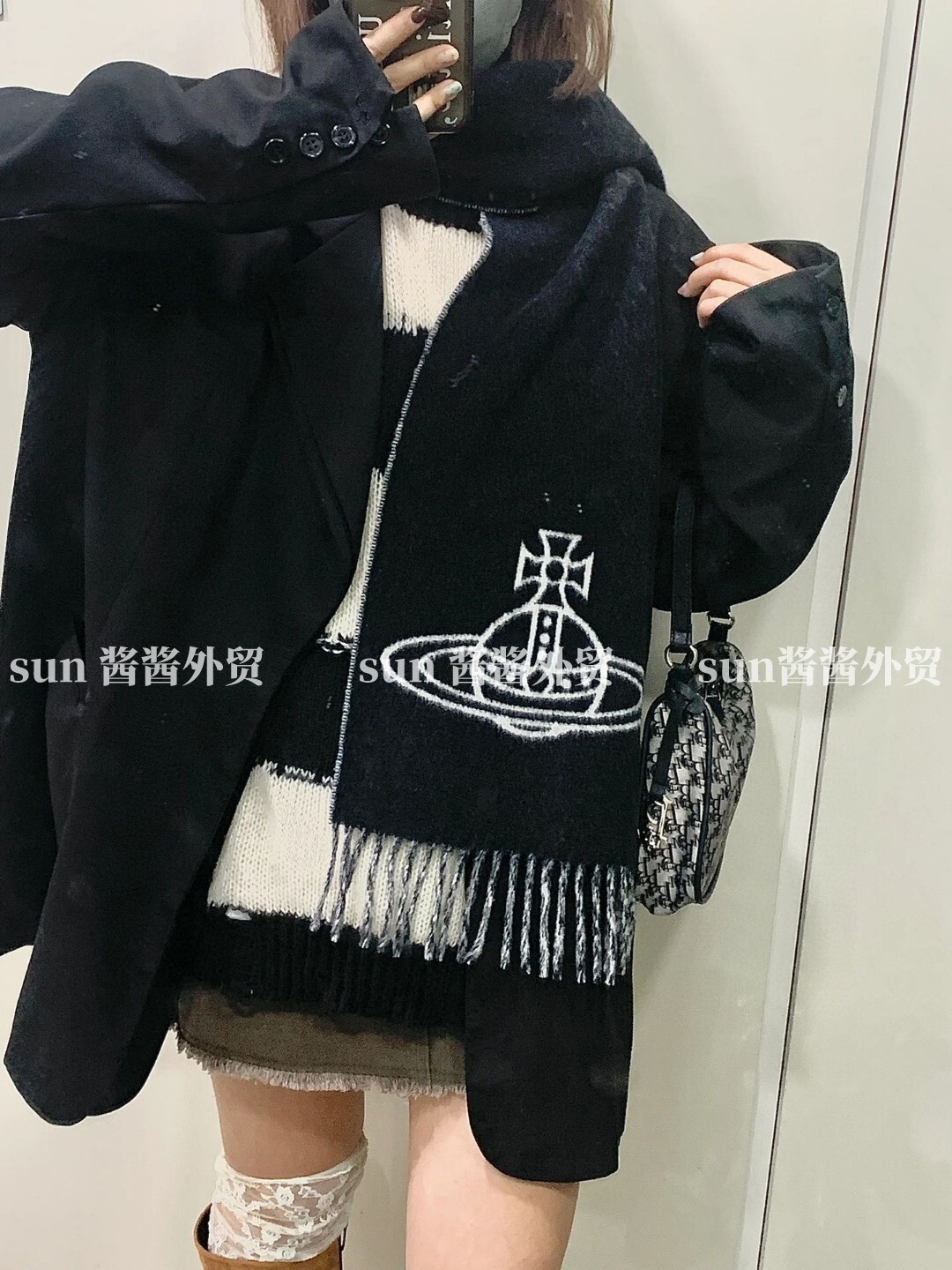 美拉德色系土星图案双面羊毛提花围巾保暖洋气流苏百搭围脖披肩 [Original Page Link]