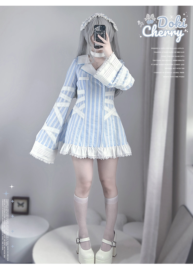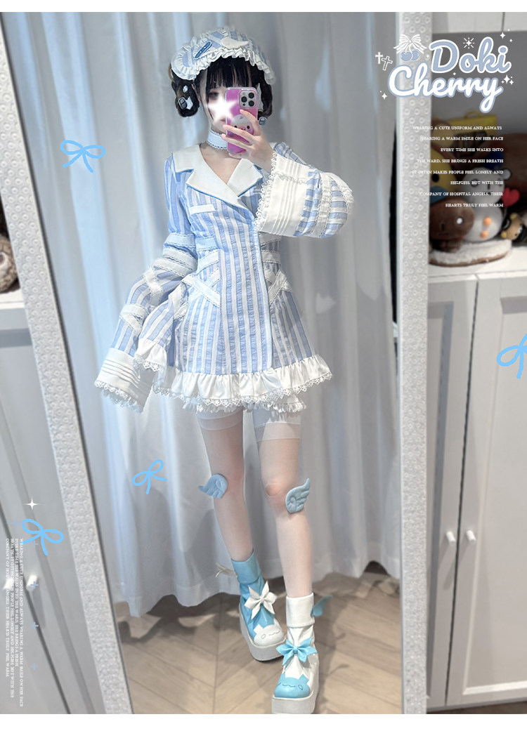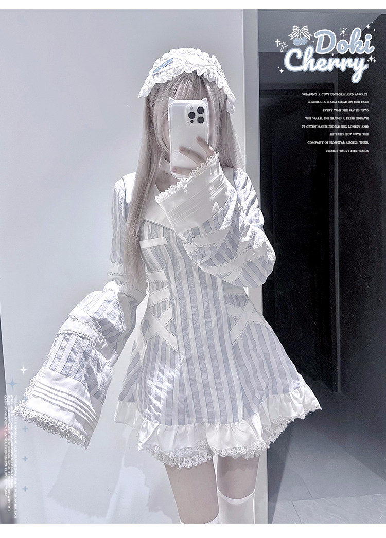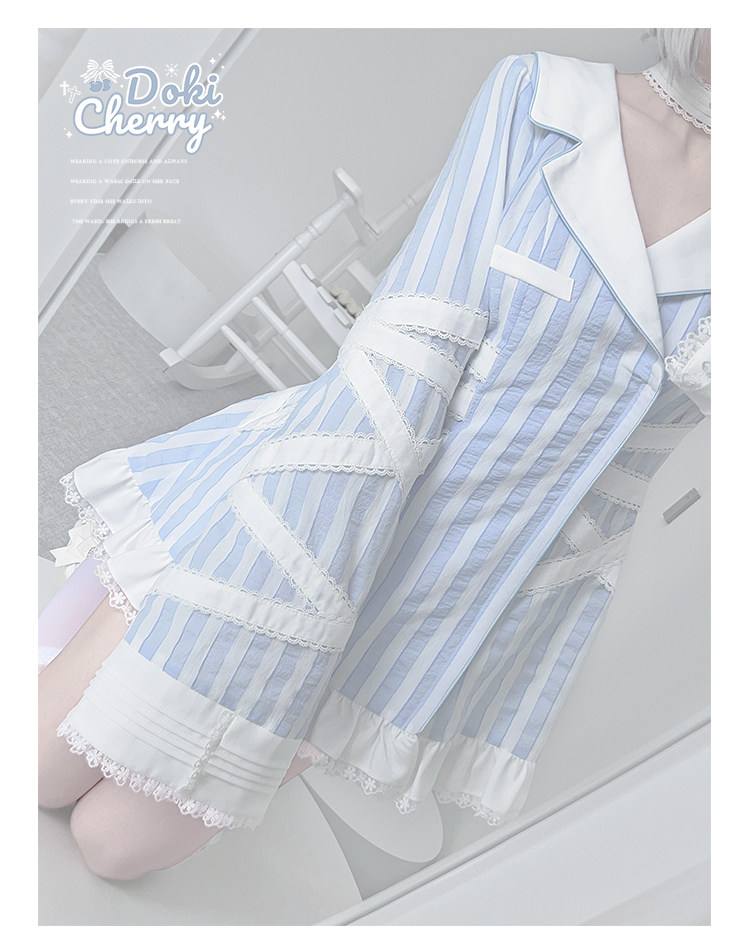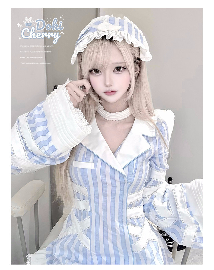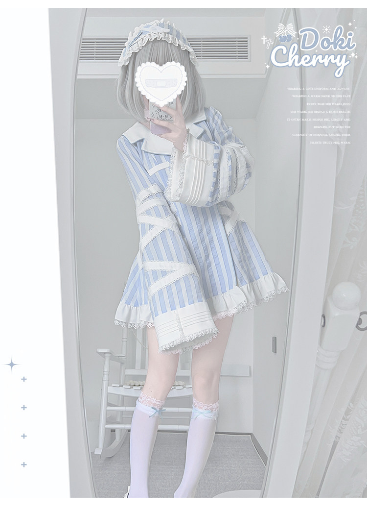 【寄存】Dokicherry原创医院套装长袖条纹绷带衬衫水色亚种 [Original Page Link]