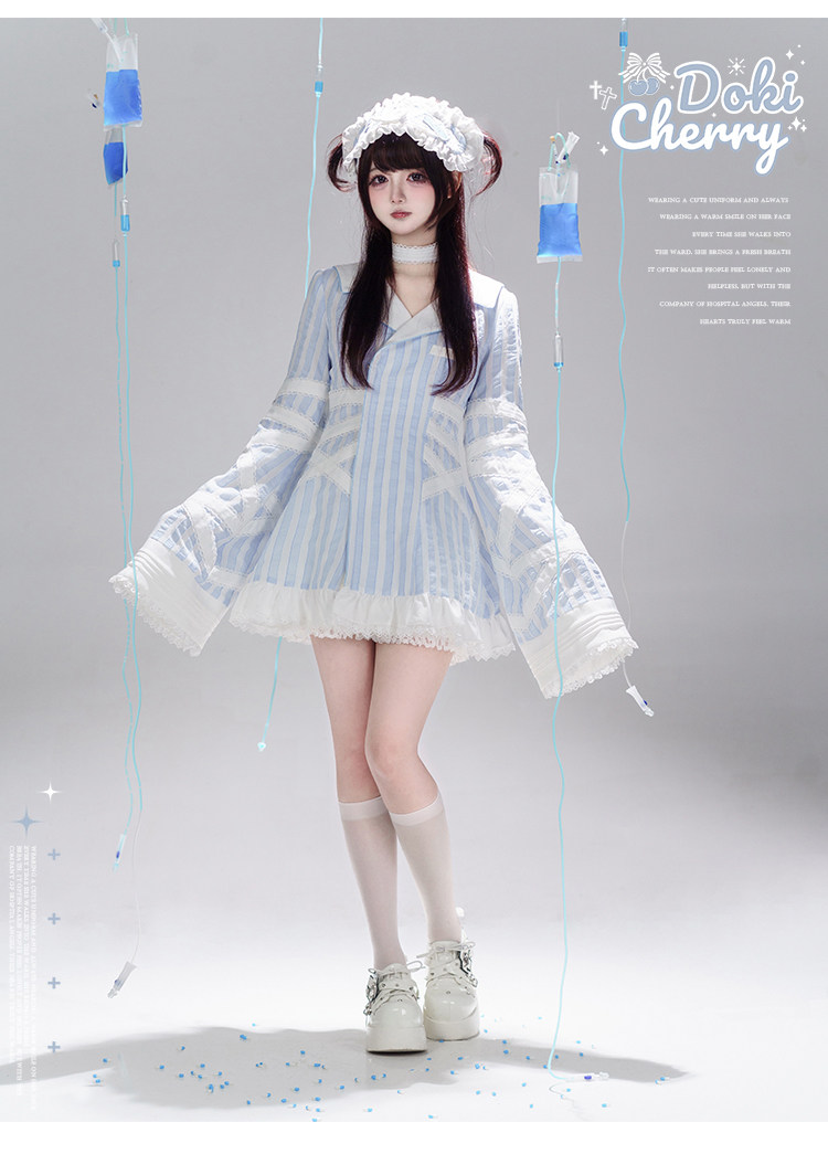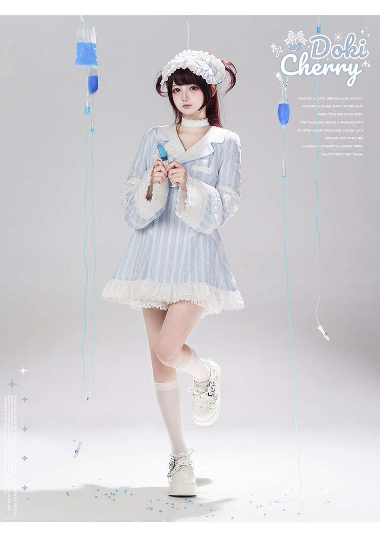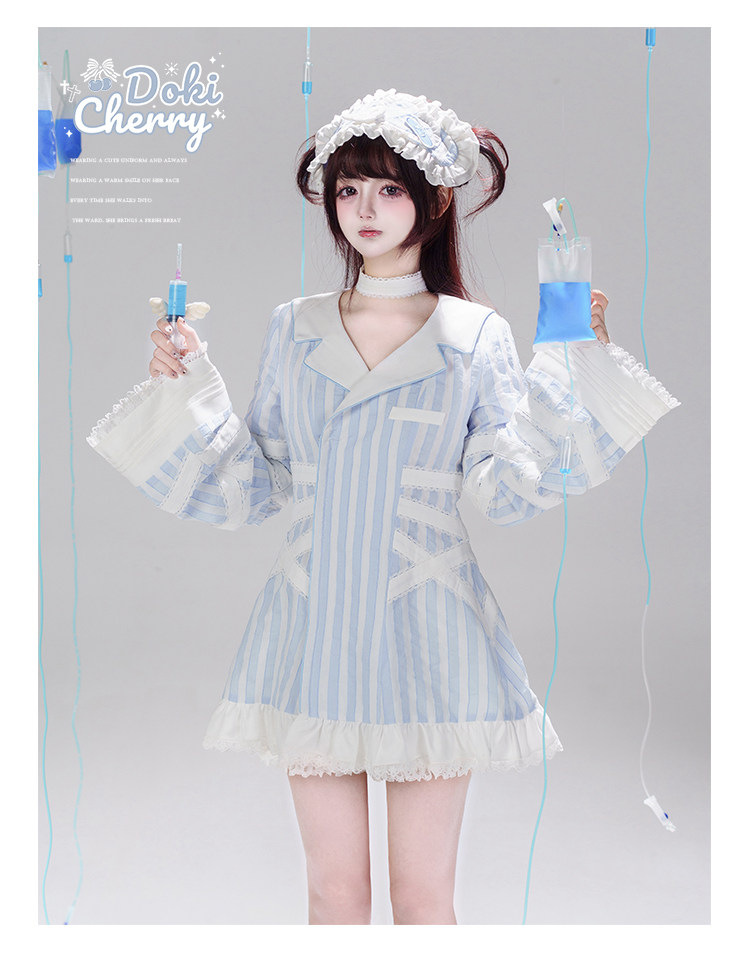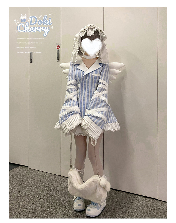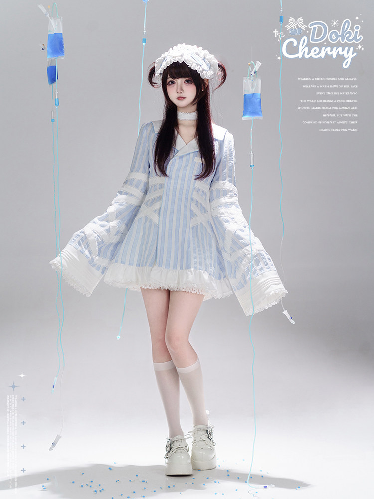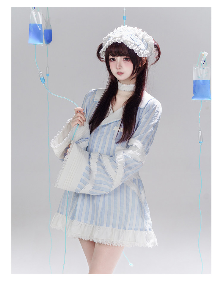 【寄存】Dokicherry原创医院套装长袖条纹绷带衬衫水色亚种 [Original Page Link]