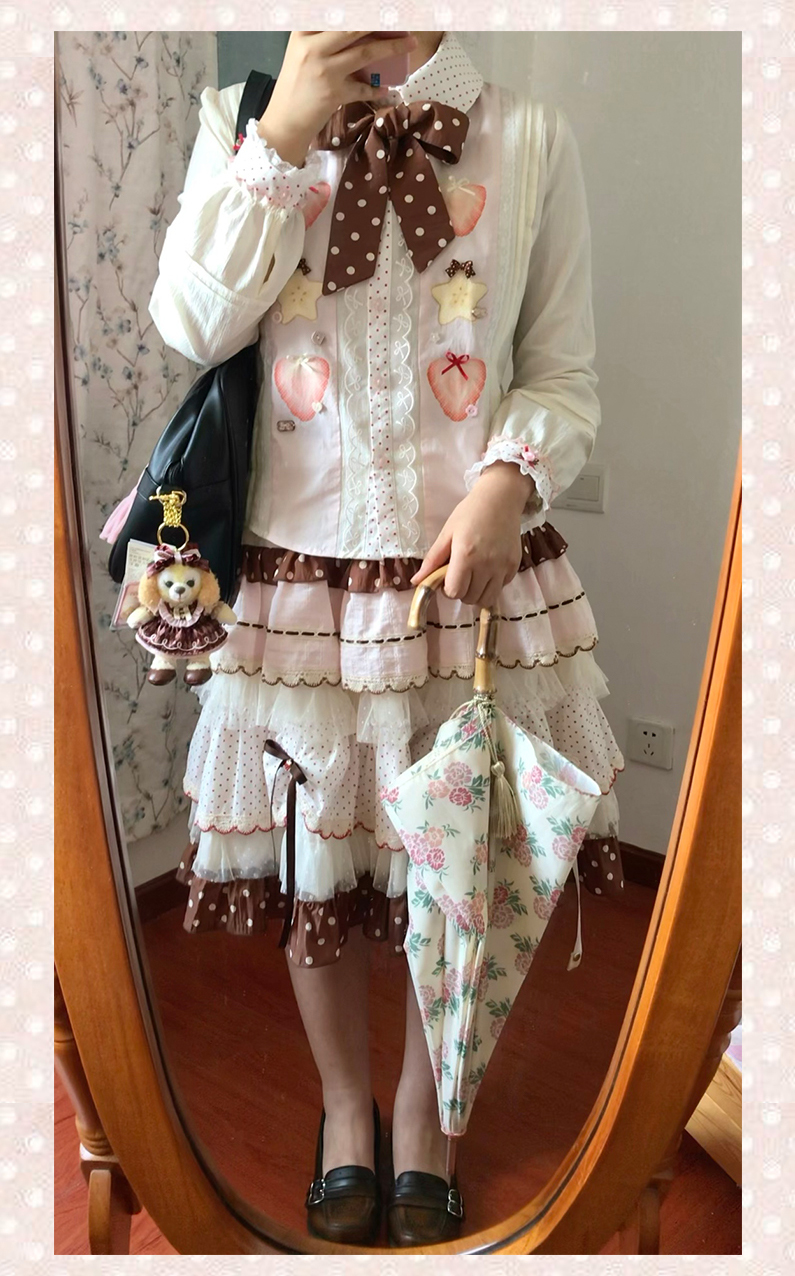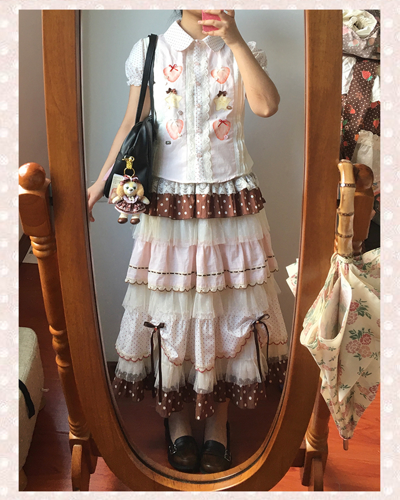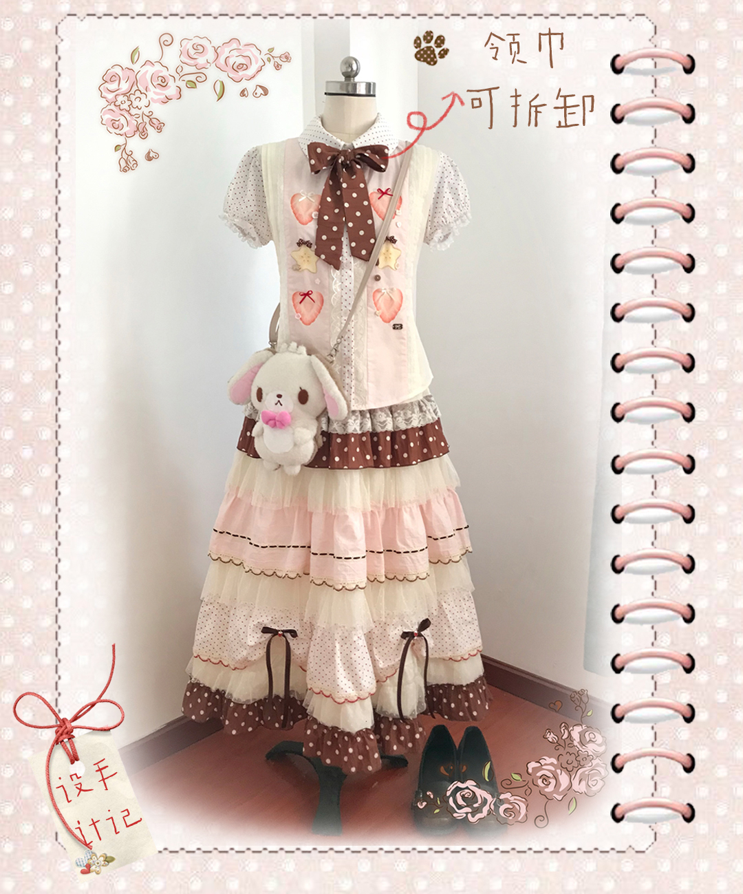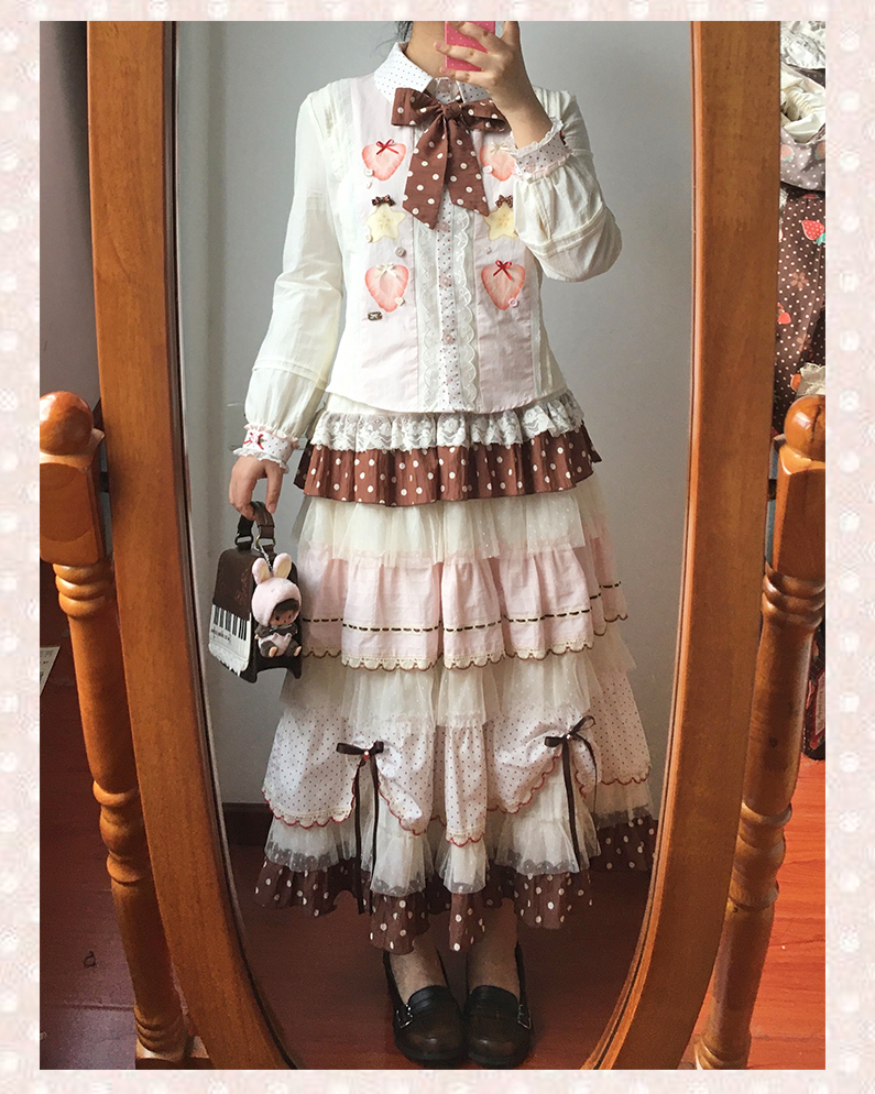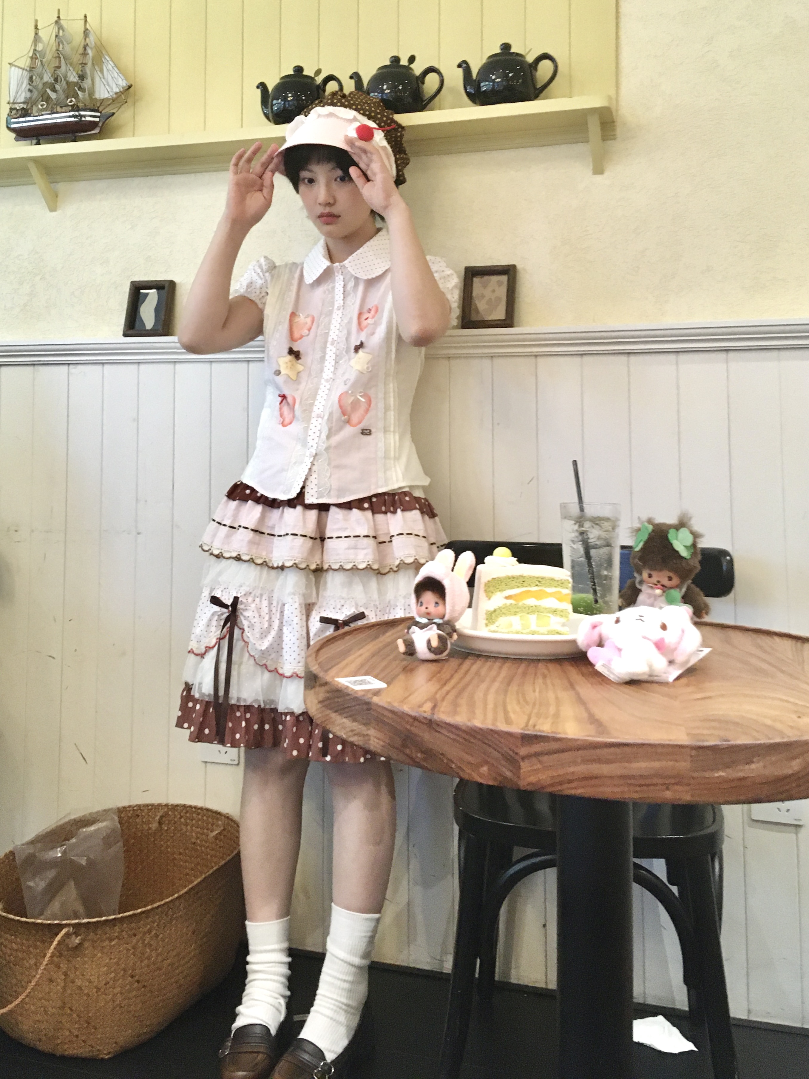 【全款现货掉落】kiwipinky原创草莓三明治古早感日系衬衣蛋糕裙 [Original Page Link]