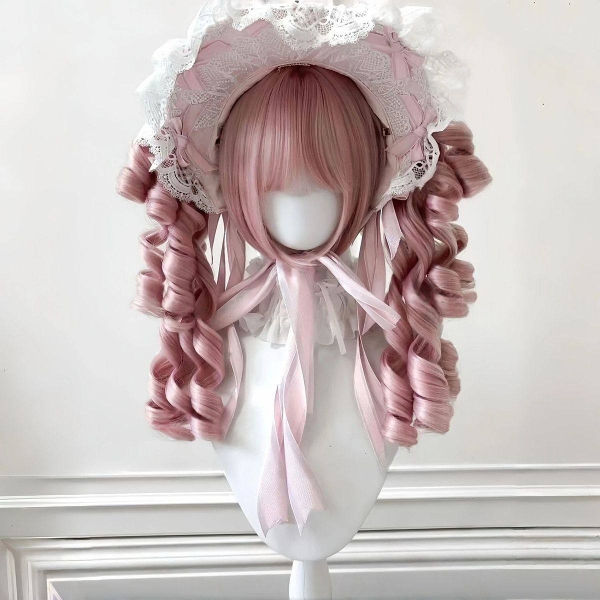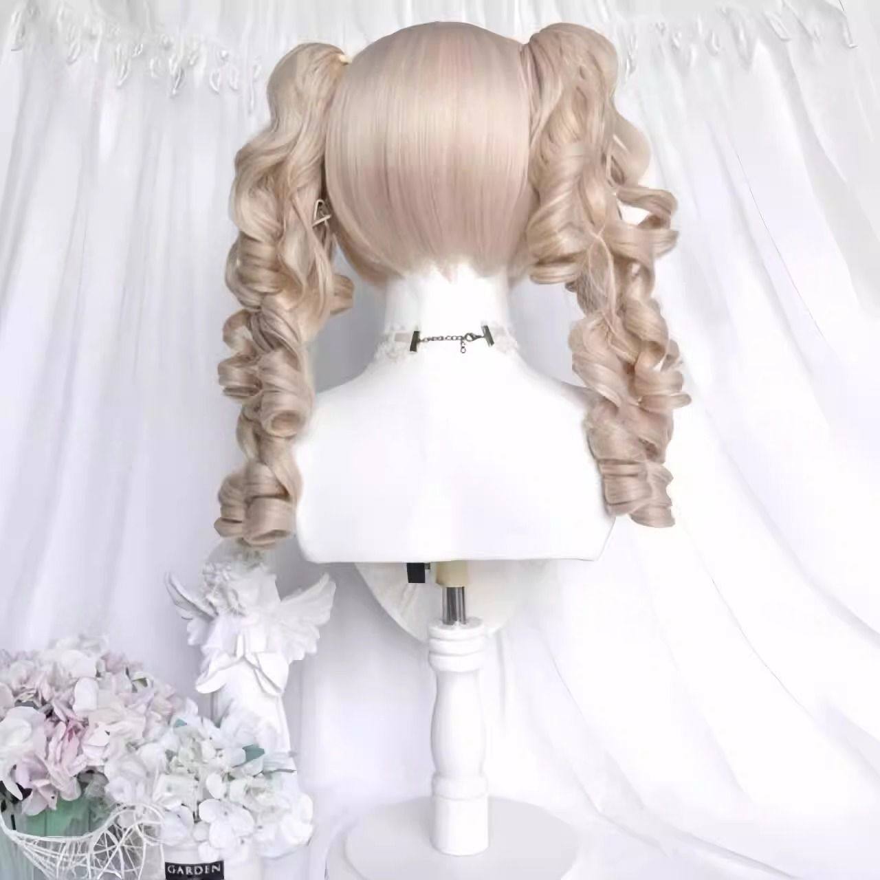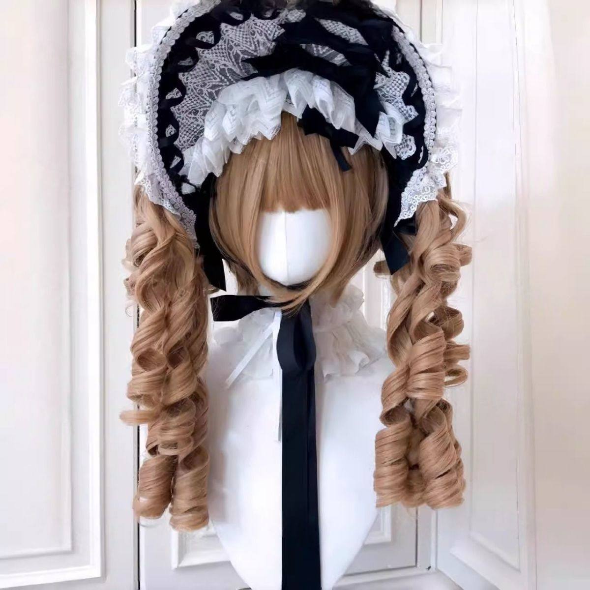 [Millet Pie] Wig for Women Ancient Lolita Tiger Mouth Sandwich Roman Curl Double Ponytail Doll Feel Full Headdress