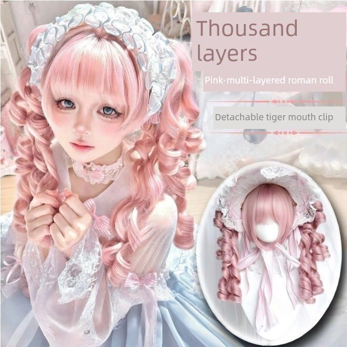 [千层派]假发为妇女古代洛丽塔虎嘴三明治罗马卷双马尾娃娃感觉充分的头饰 [Original Page Link]