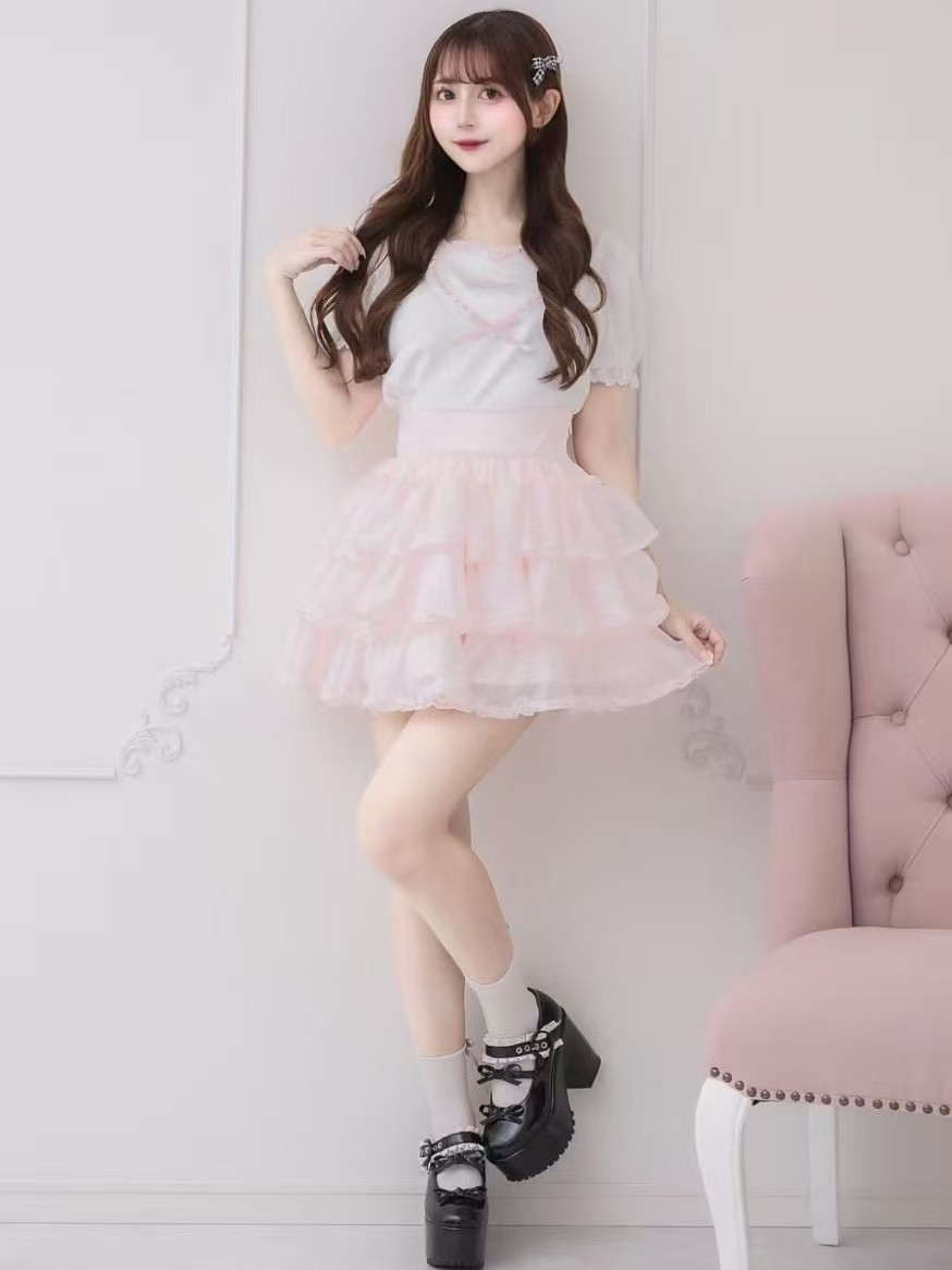 Swsu Japanese p home handmade ribbon love sweet comfortable knitted short sleeve yd in stock