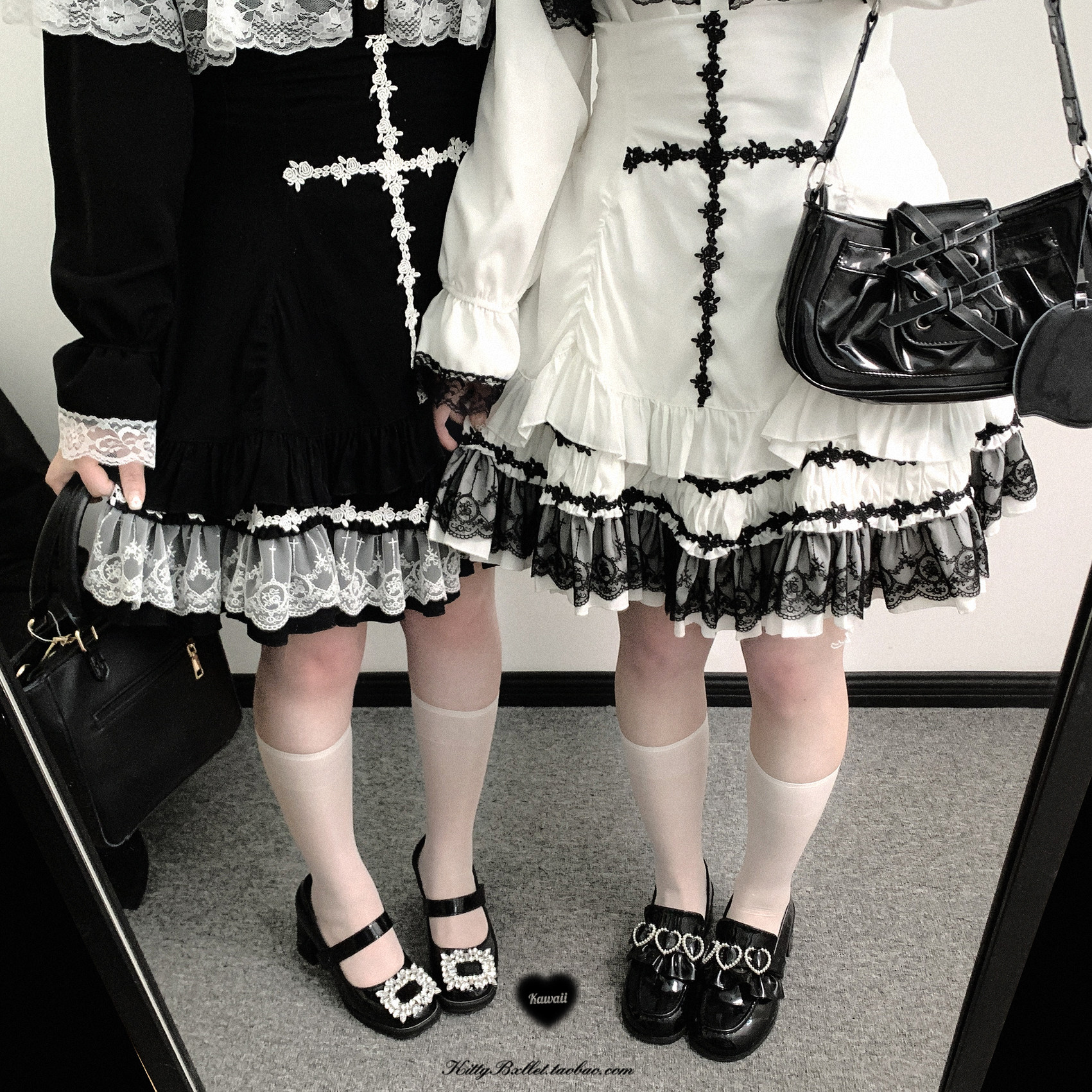 KittyBxllet原创【十字契约】蕾系十字图案蕾丝花边摆高腰半裙 [Original Page Link]