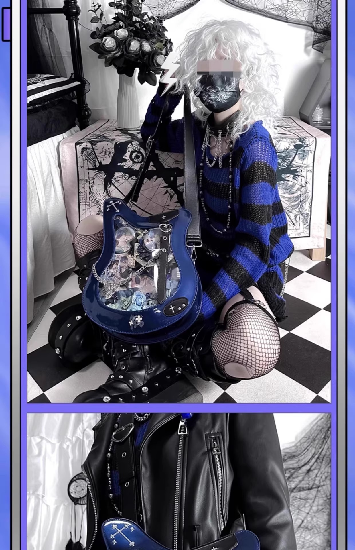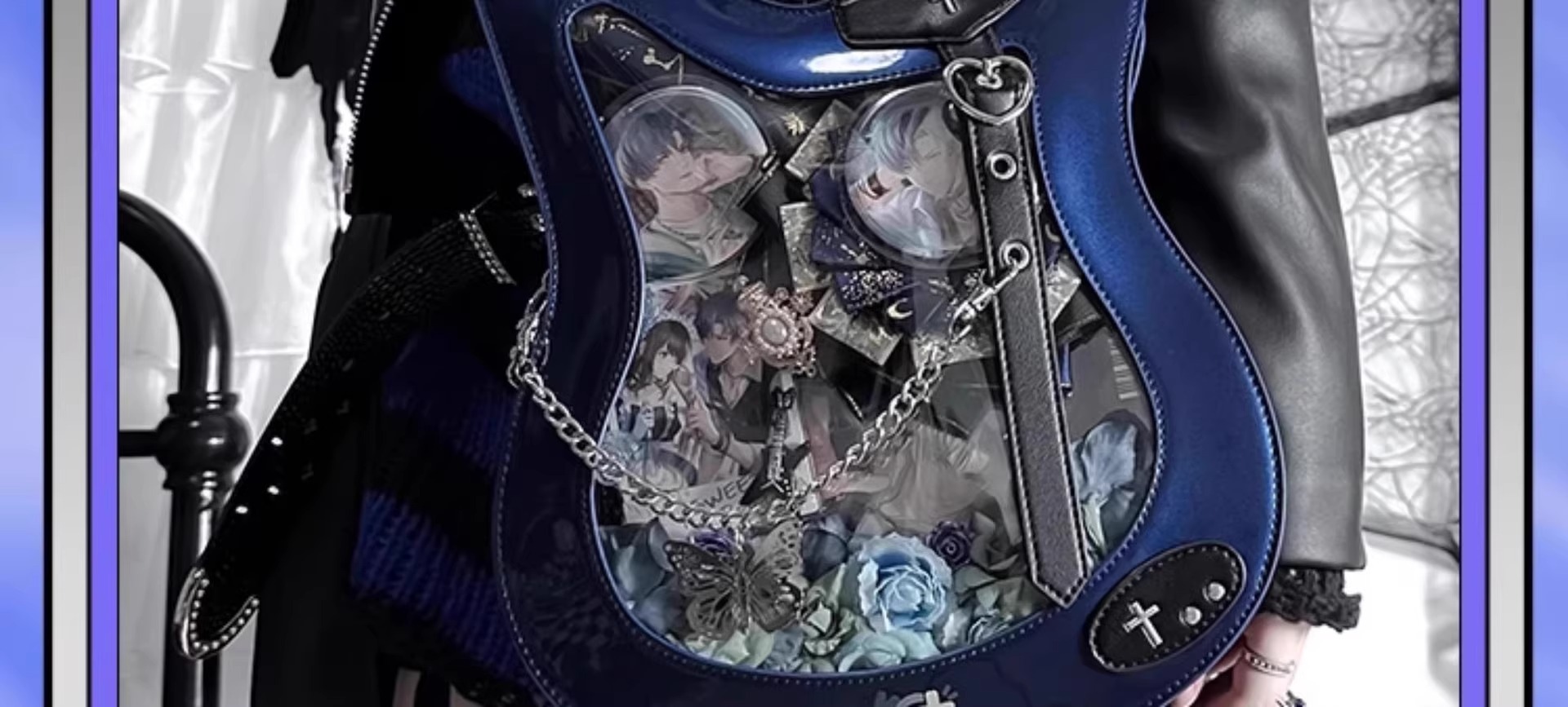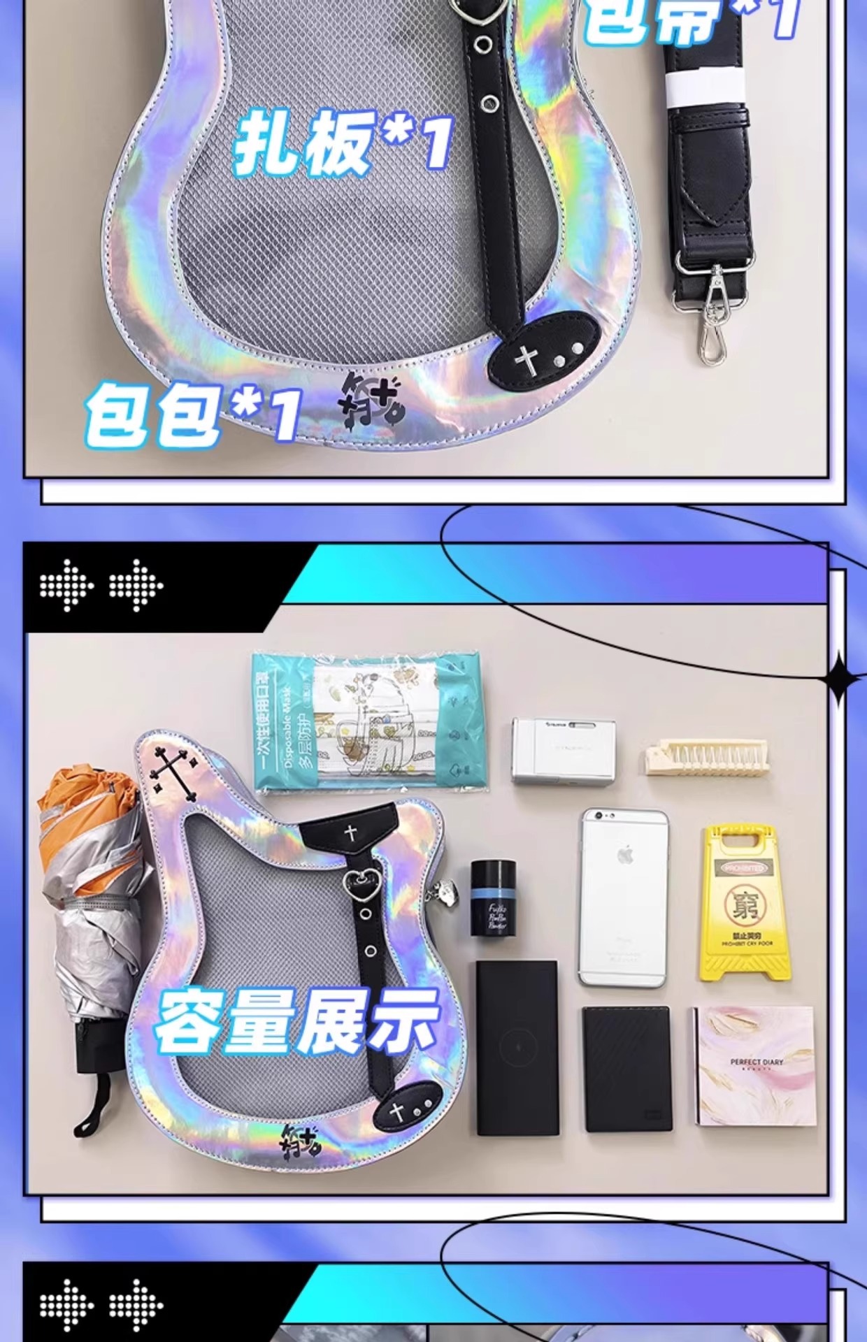 原创设计贝斯痛包镭射单肩斜挎写卡包吧唧谷子扎板异形甜酷吉他包 [Original Page Link]