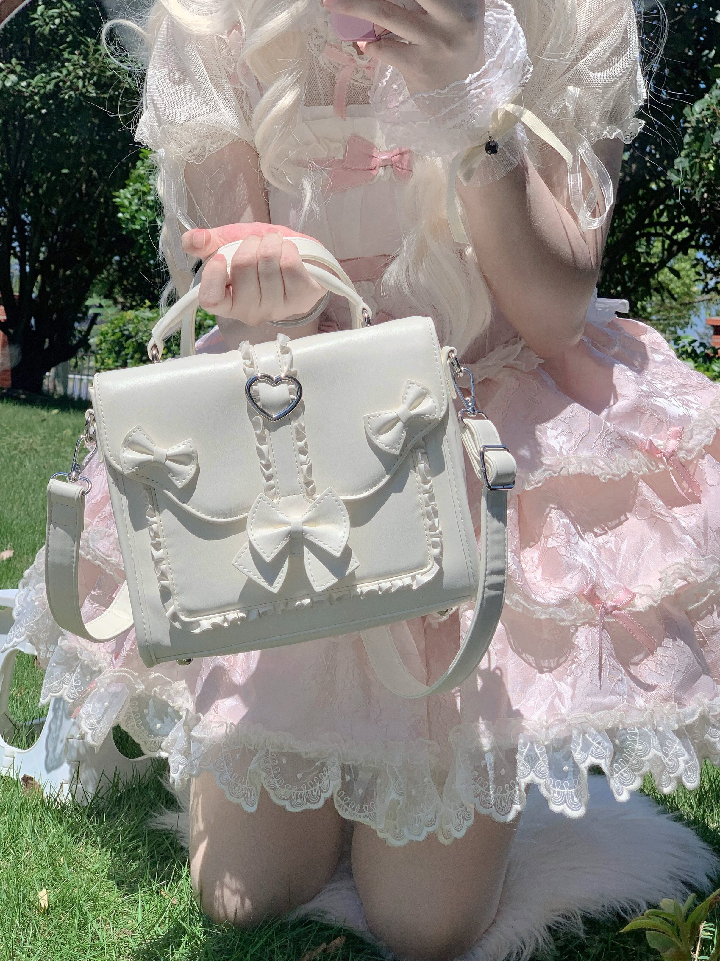 Cherry jam ita bag, original classic elegant bow Lolita style women's snack portable shoulder/crossbody bag.