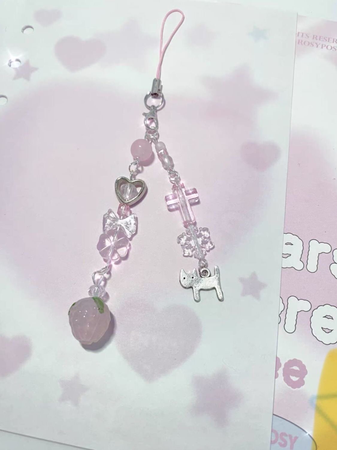 【草莓喵喵】ccd挂绳手作串珠自制少女心ins手机炼可爱咕本挂件炼 [Original Page Link]