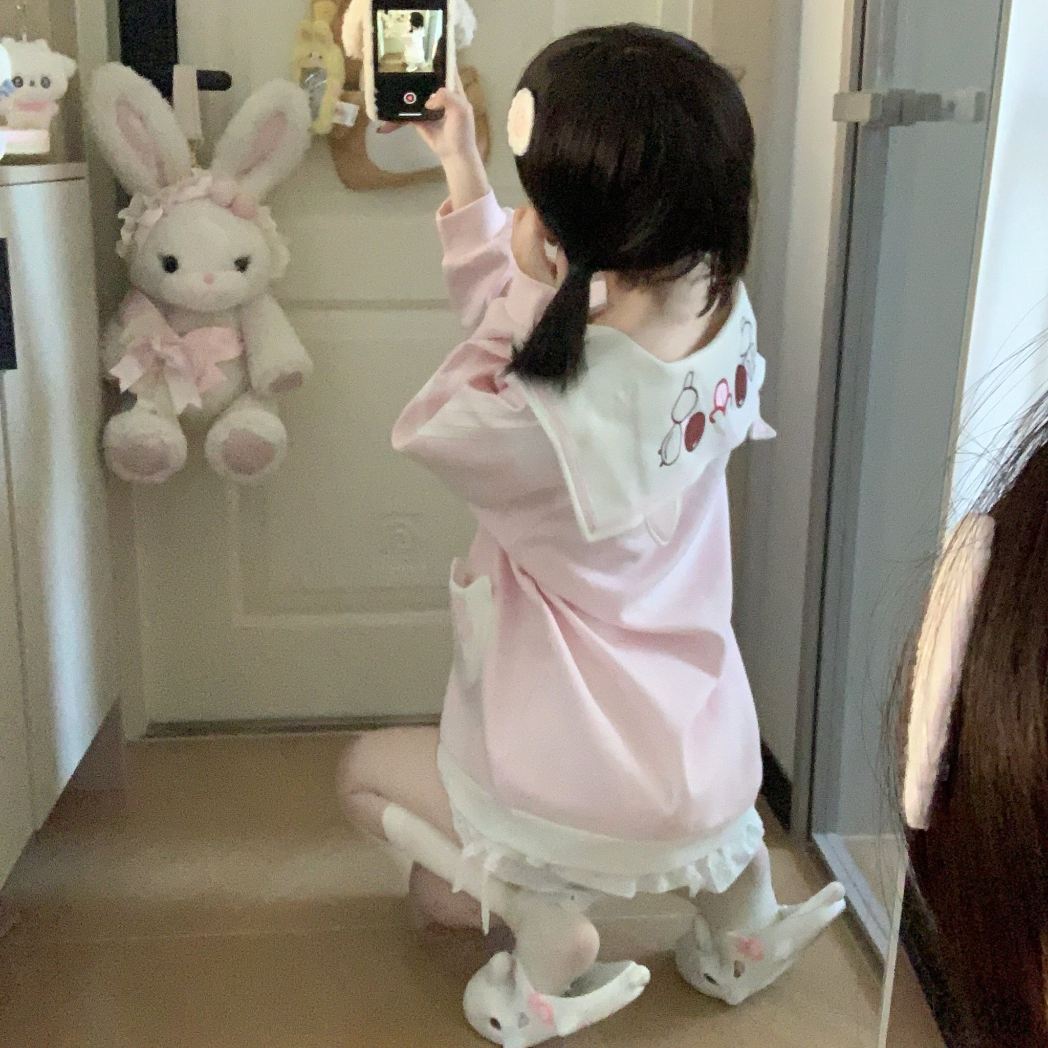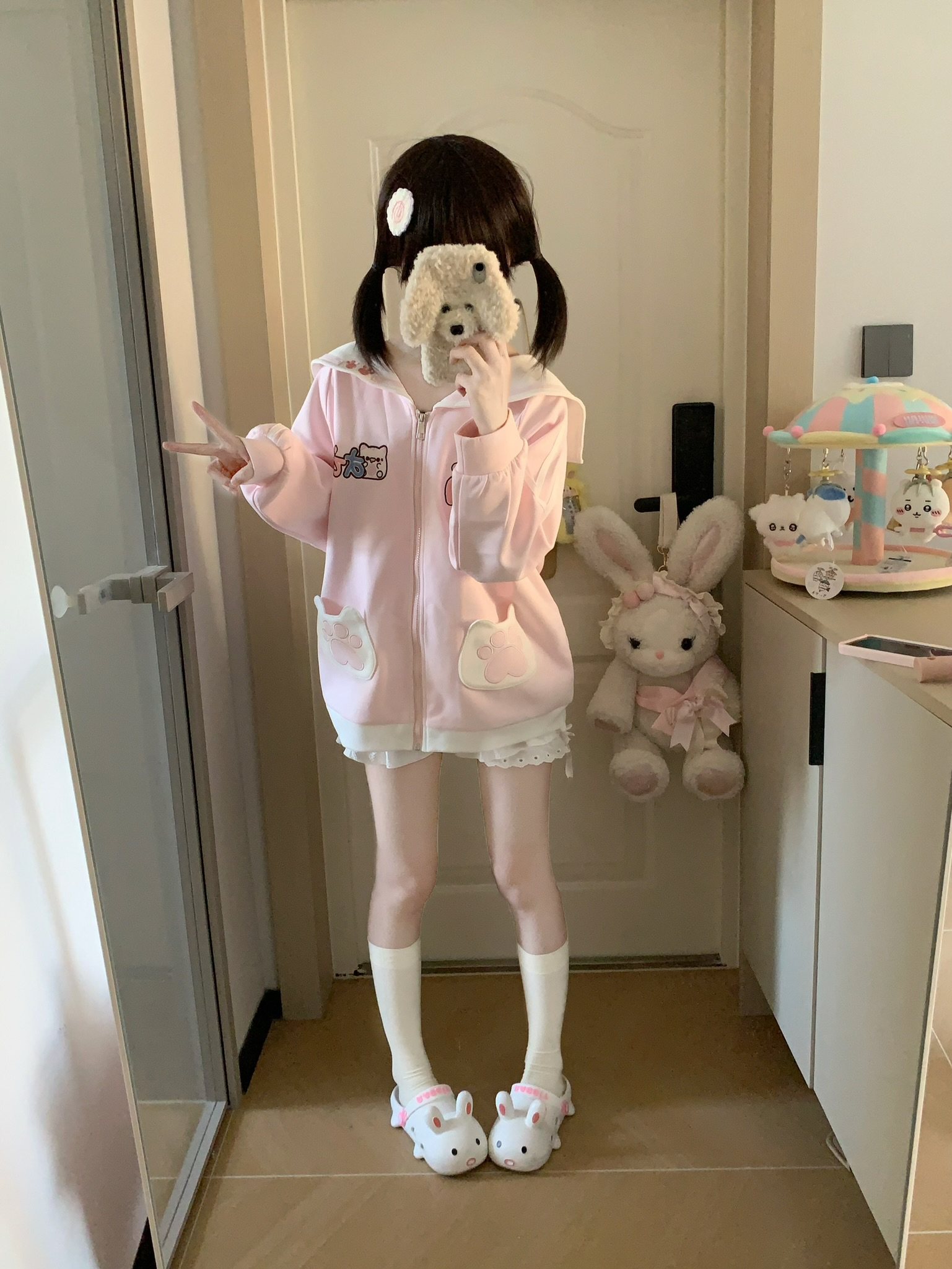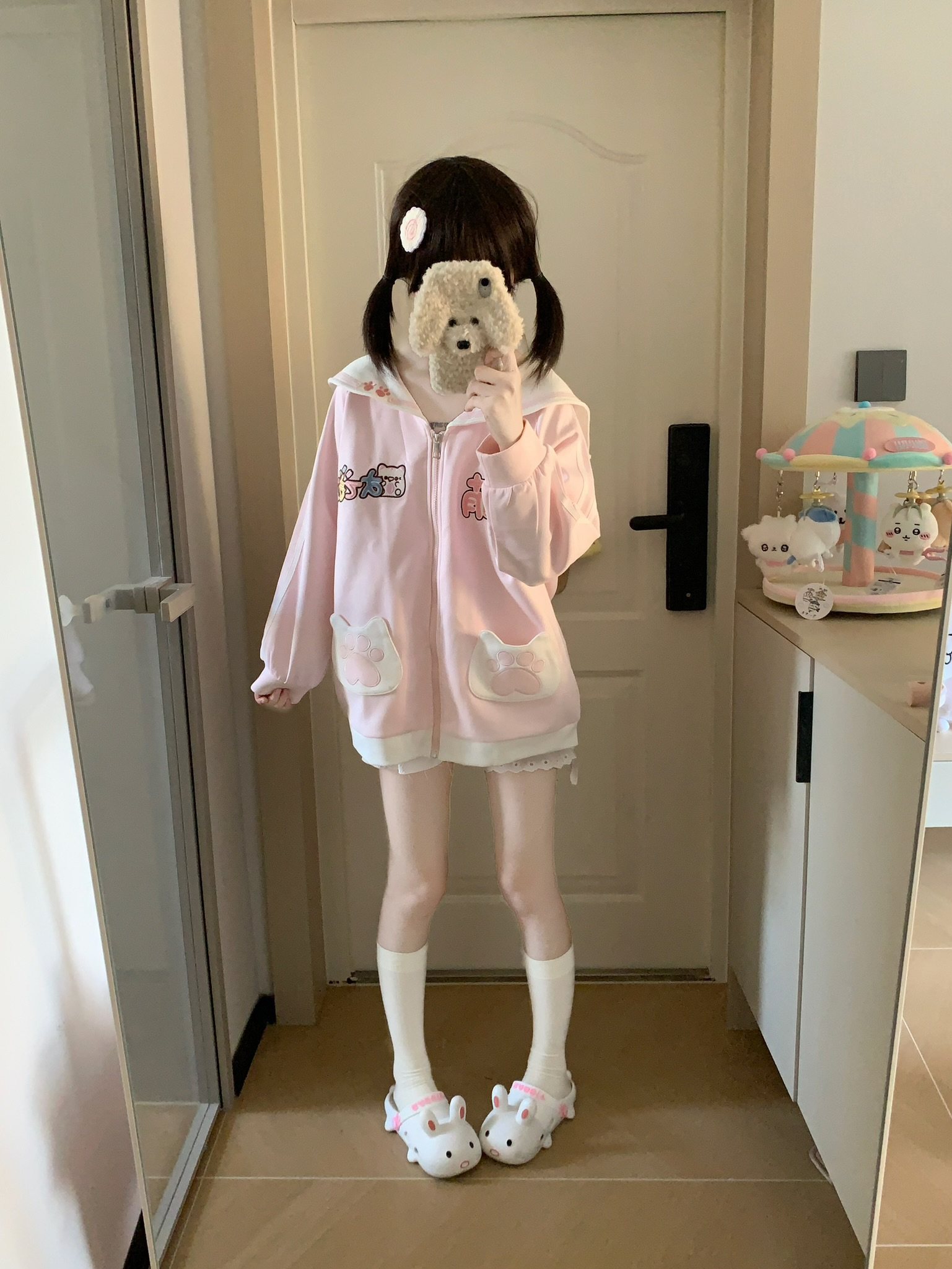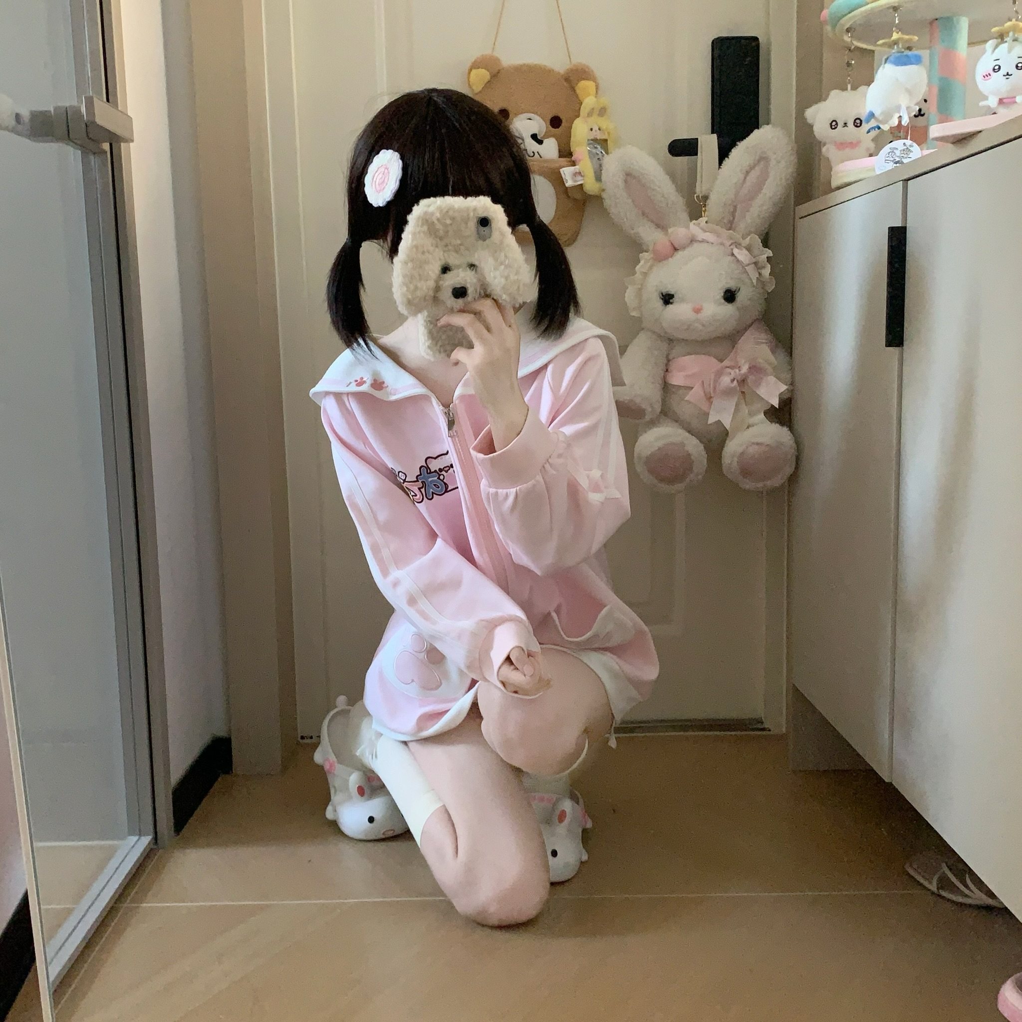 邱邱自制软妹可爱拼色小猫刺绣海军领拉炼长袖外套 [Original Page Link]