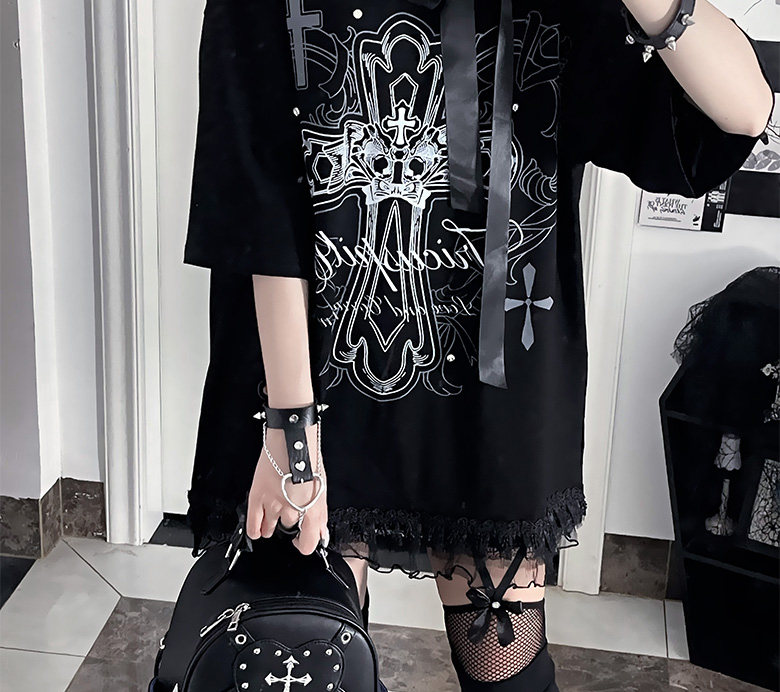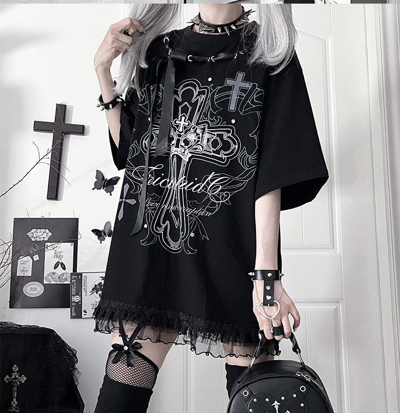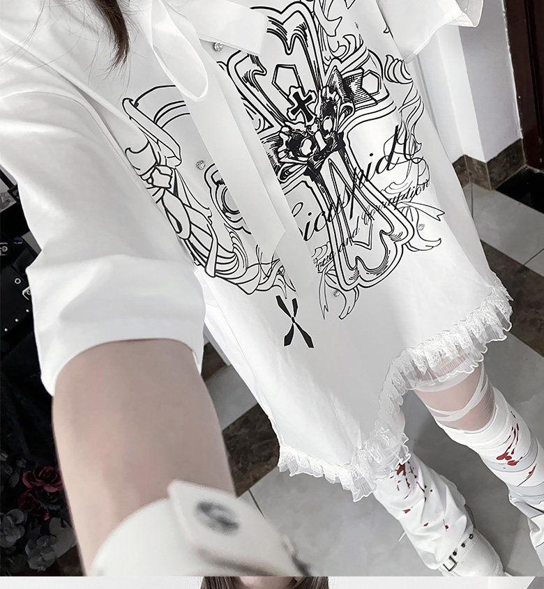 *Night Blood Love Letter* Zhezhiyin TC Original Printed Subculture Dark Loose Short-Sleeve Pure Cotton T-Shirt