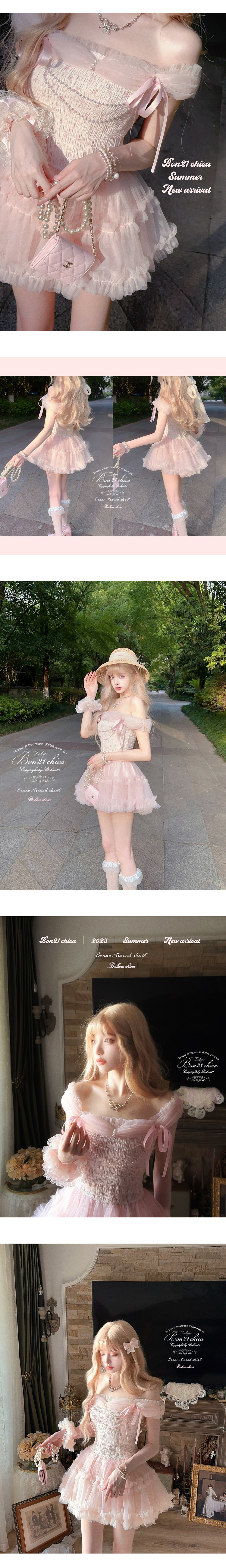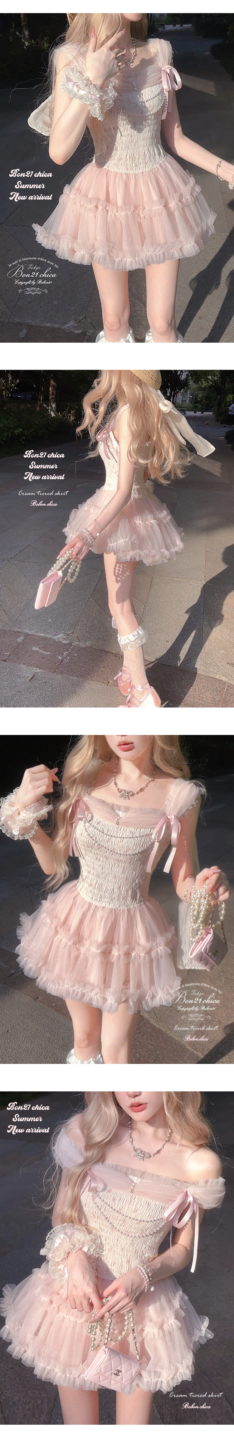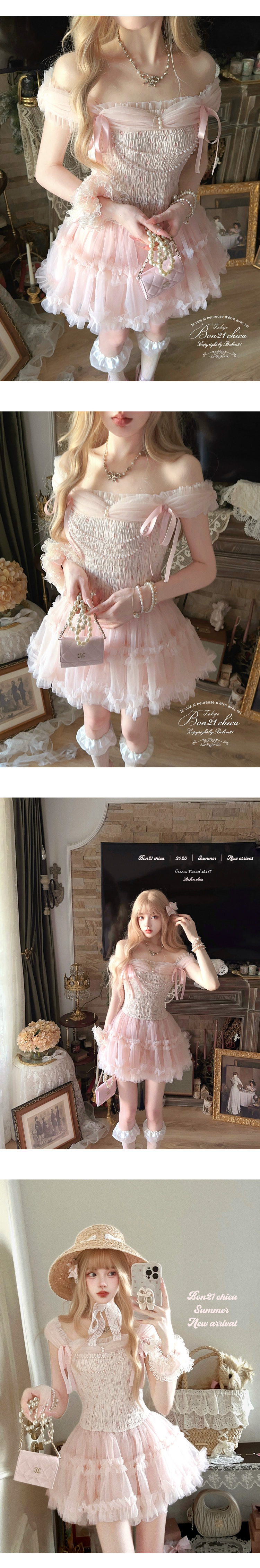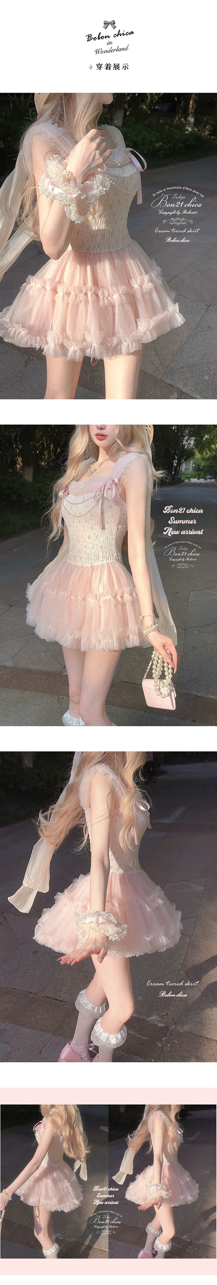Limo Bobon21 Qiansha Mist Palace Ribbon Cake Mesh Dress Dress D2416