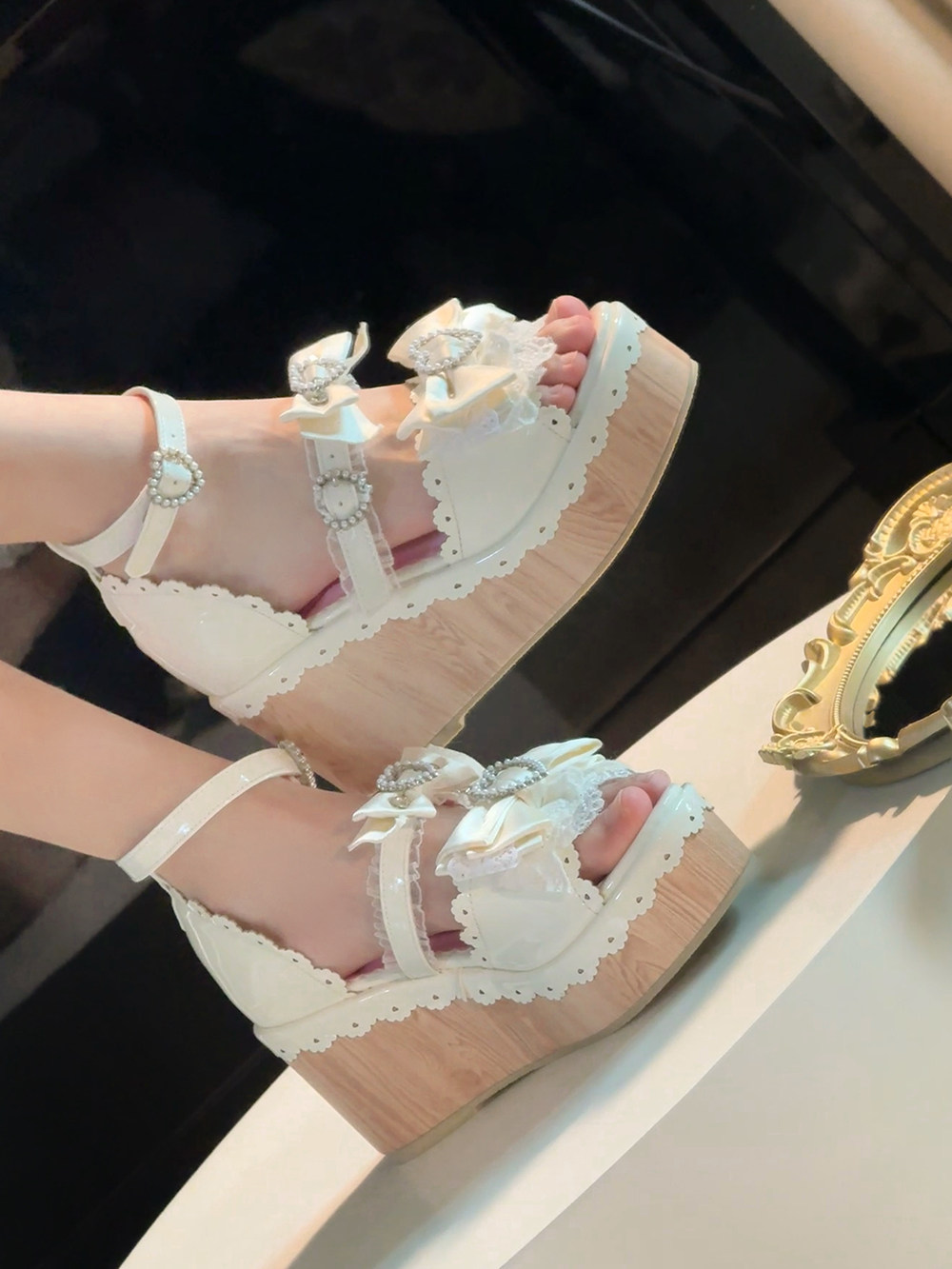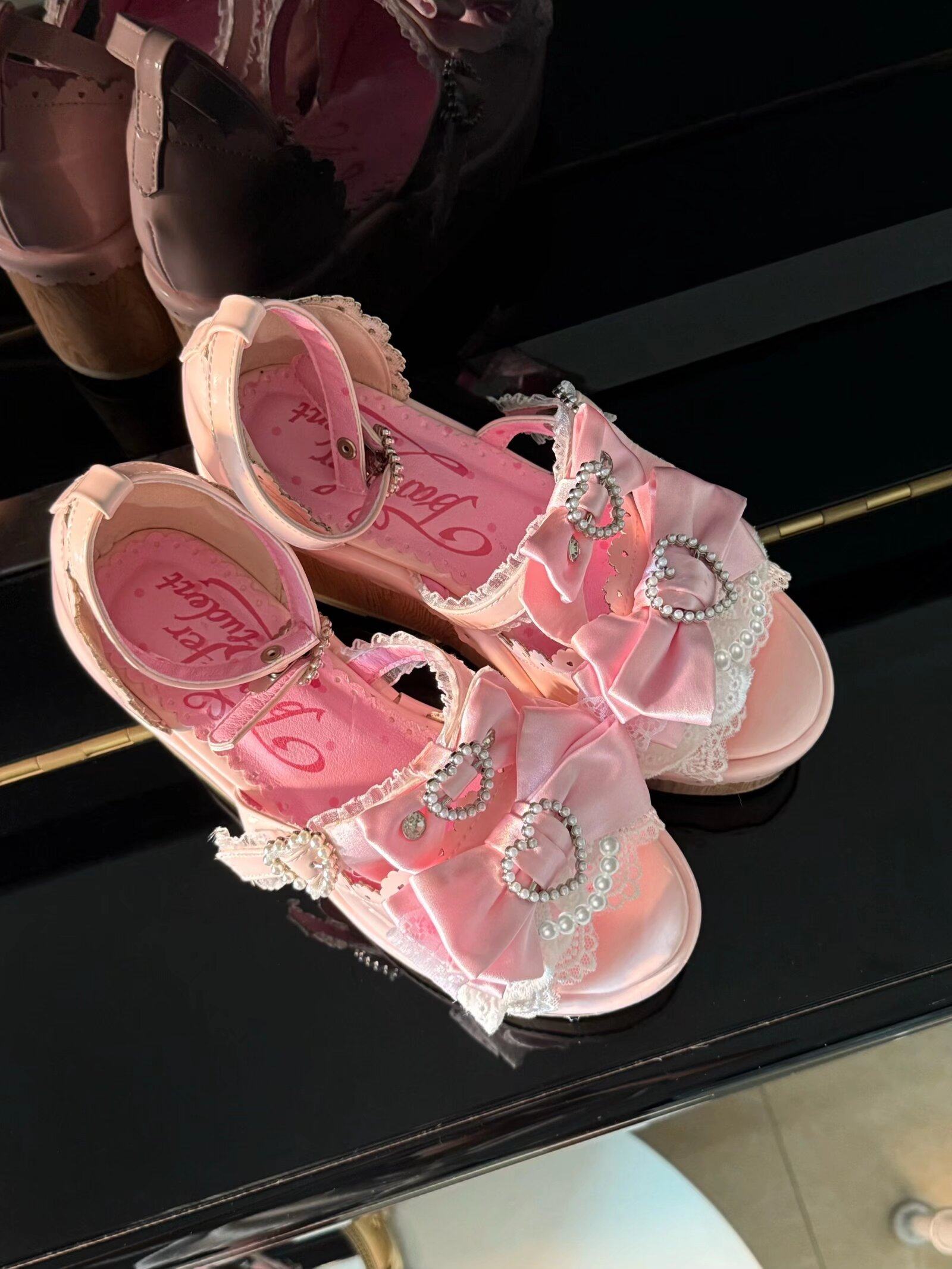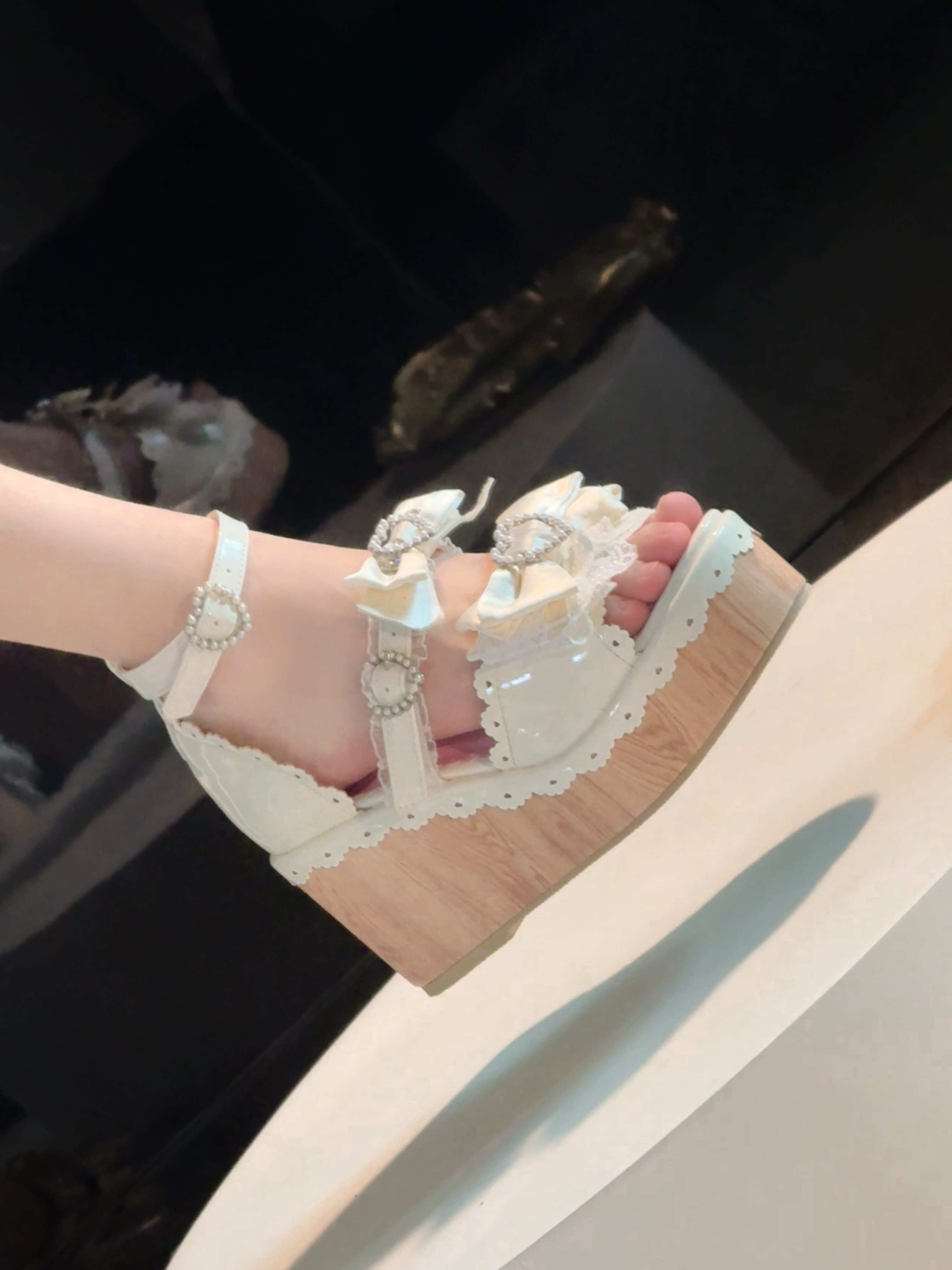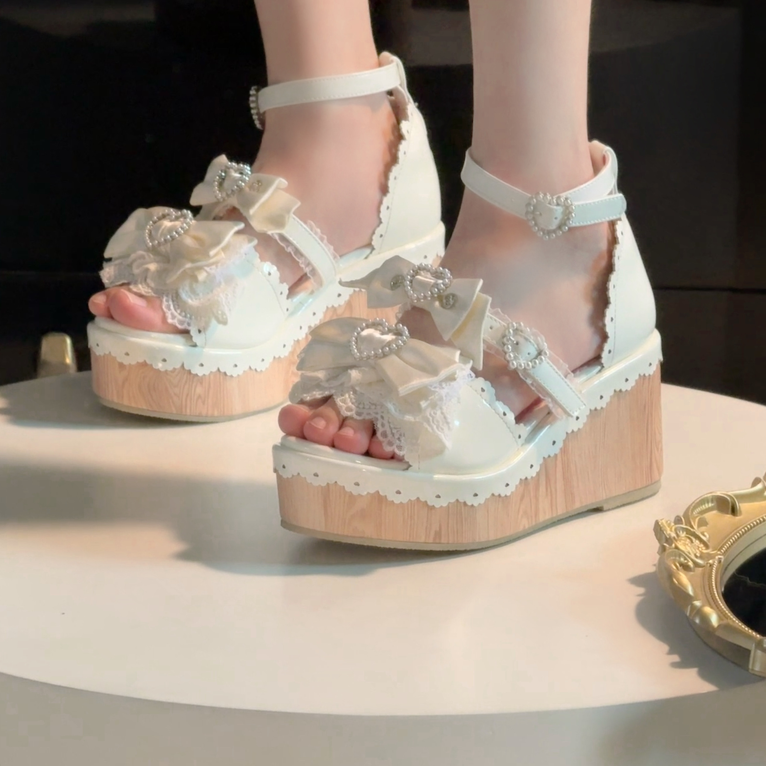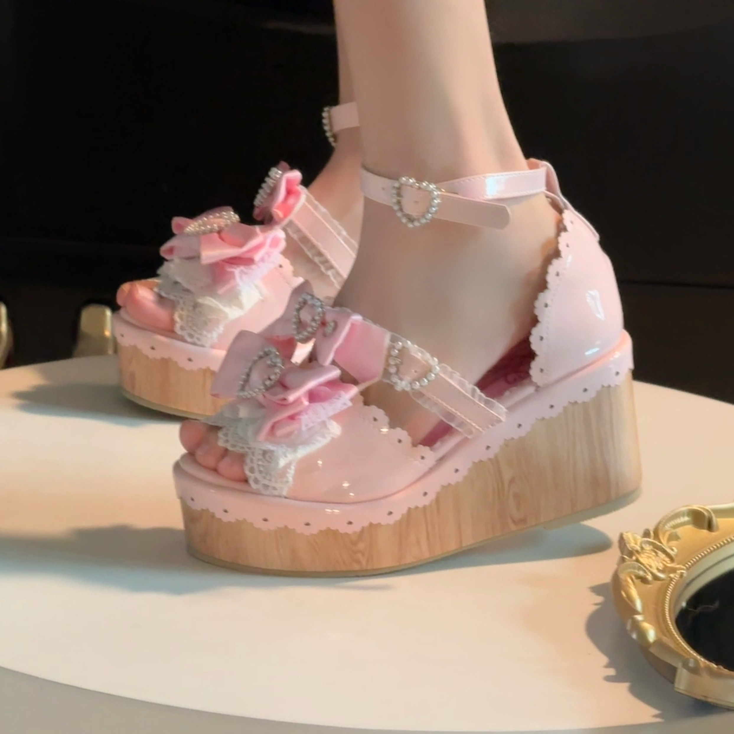 转校生 昭和夏梦 原创古早坡跟鞋漏指凉鞋千禧年姬系蝴蝶结lo鞋女 [Original Page Link]