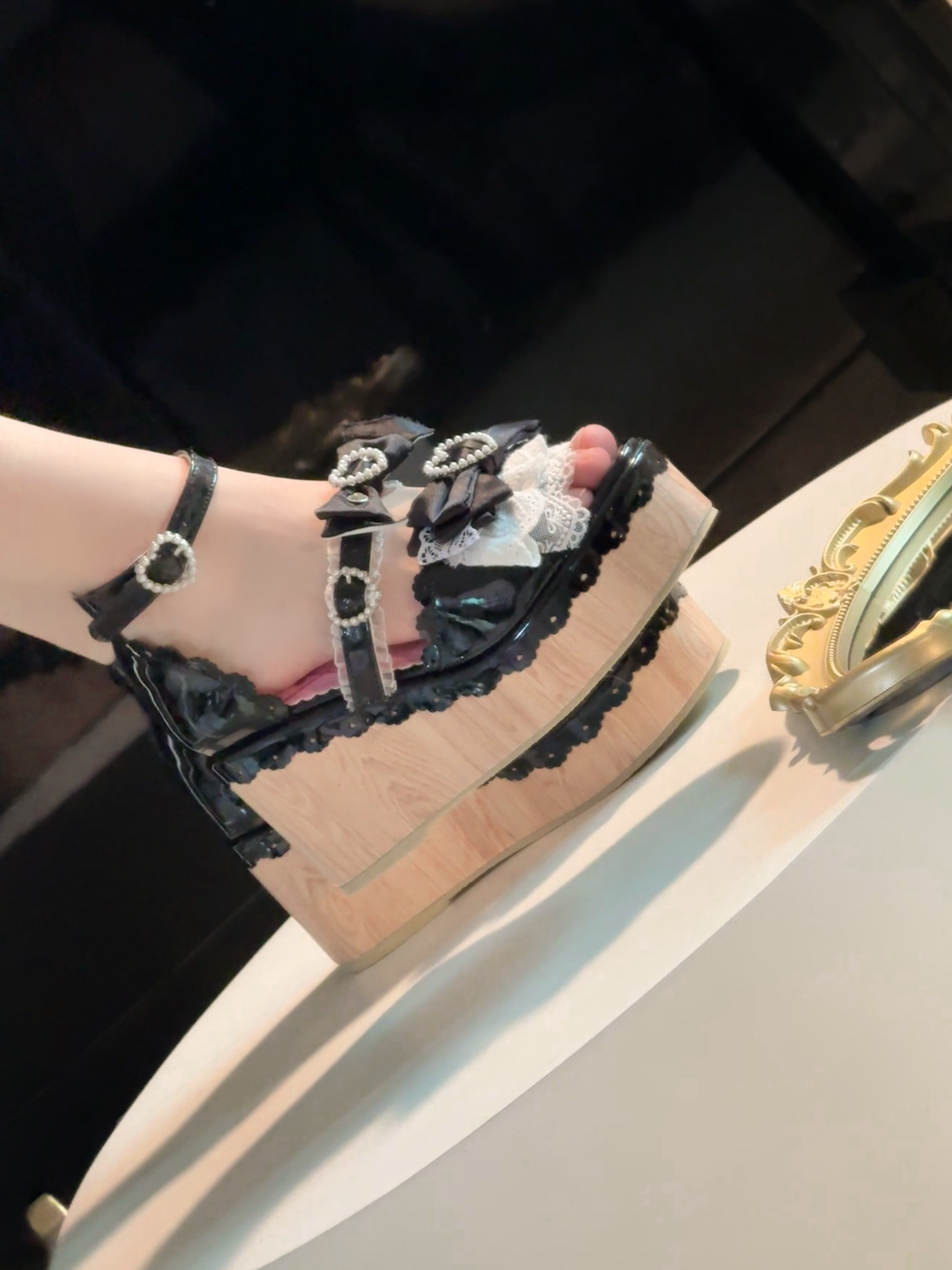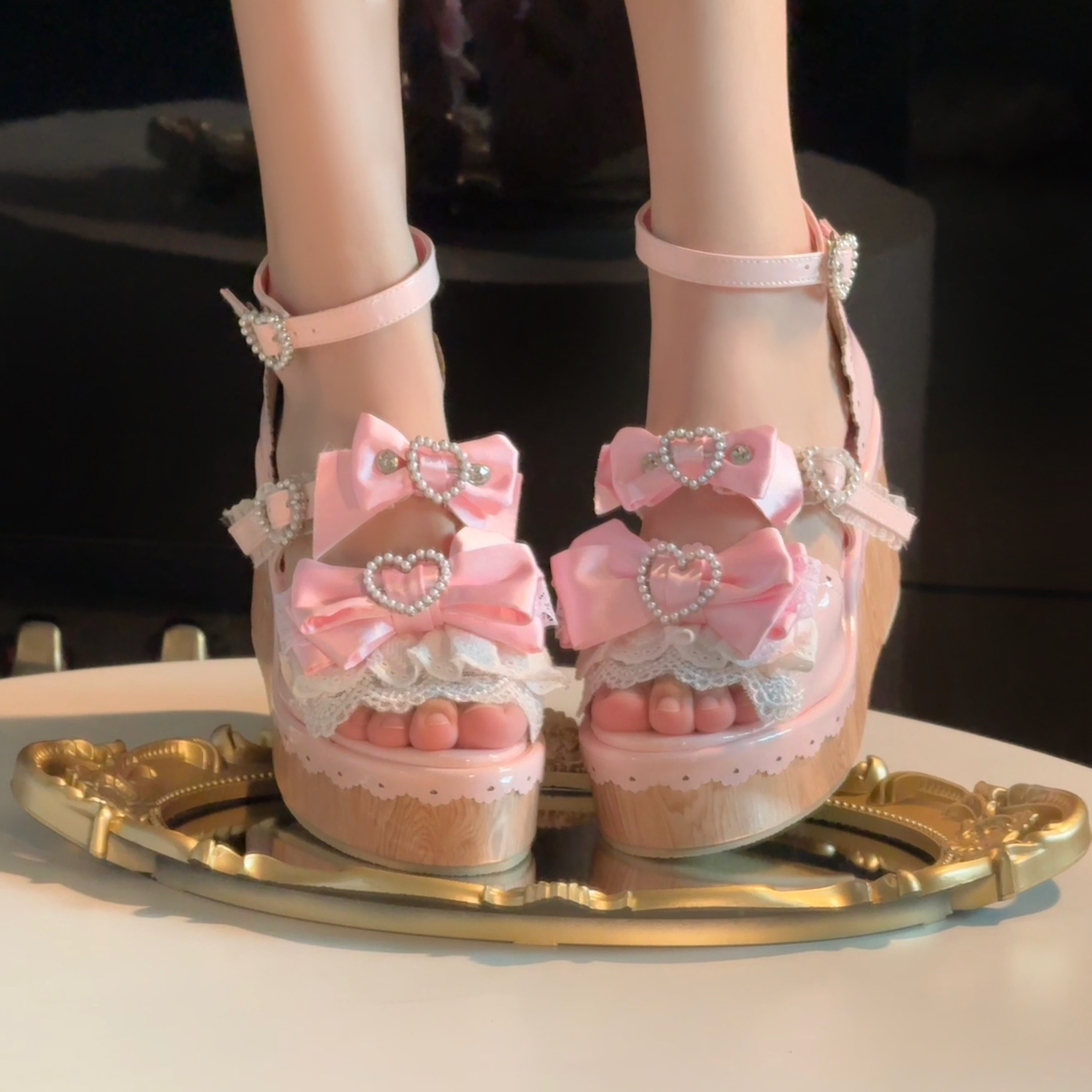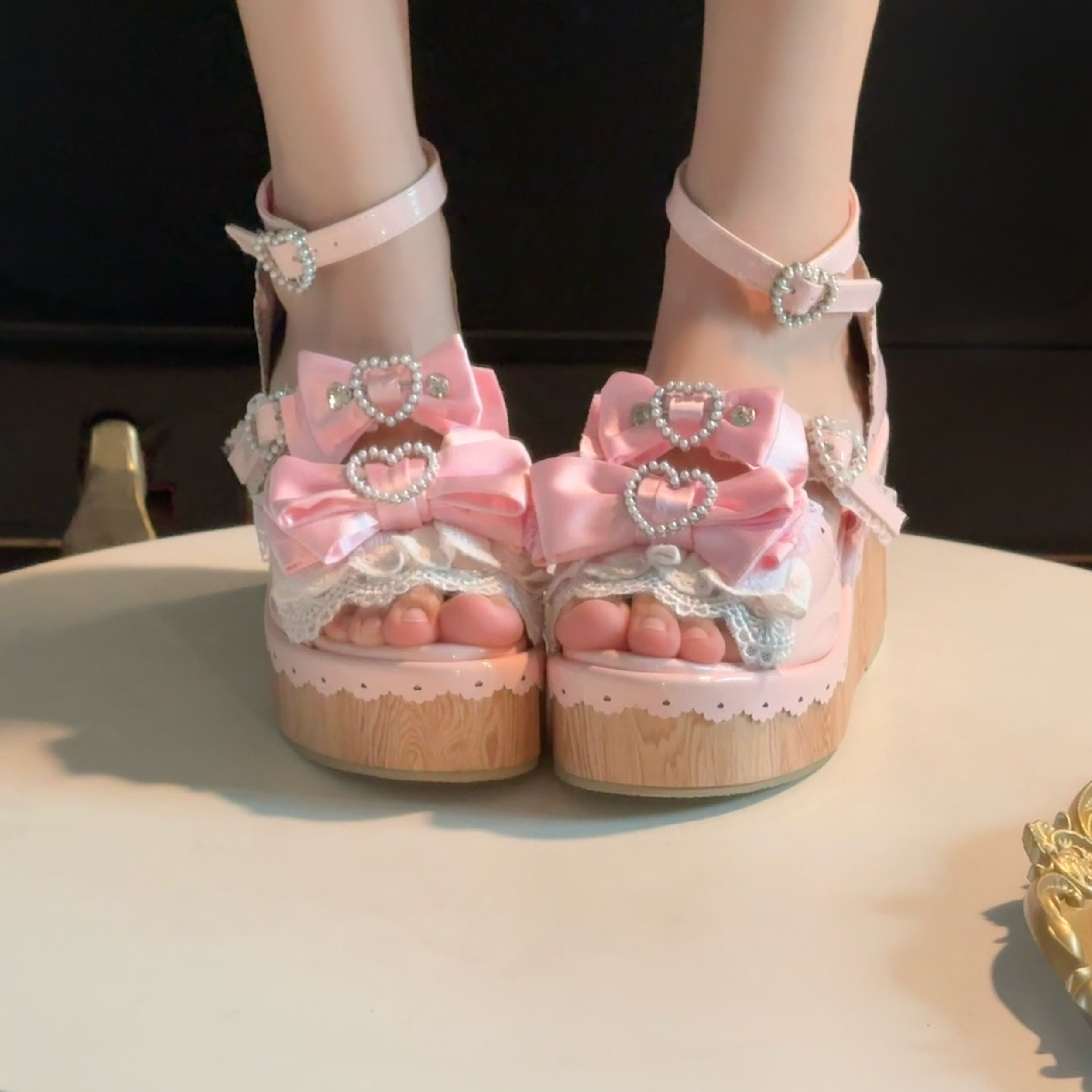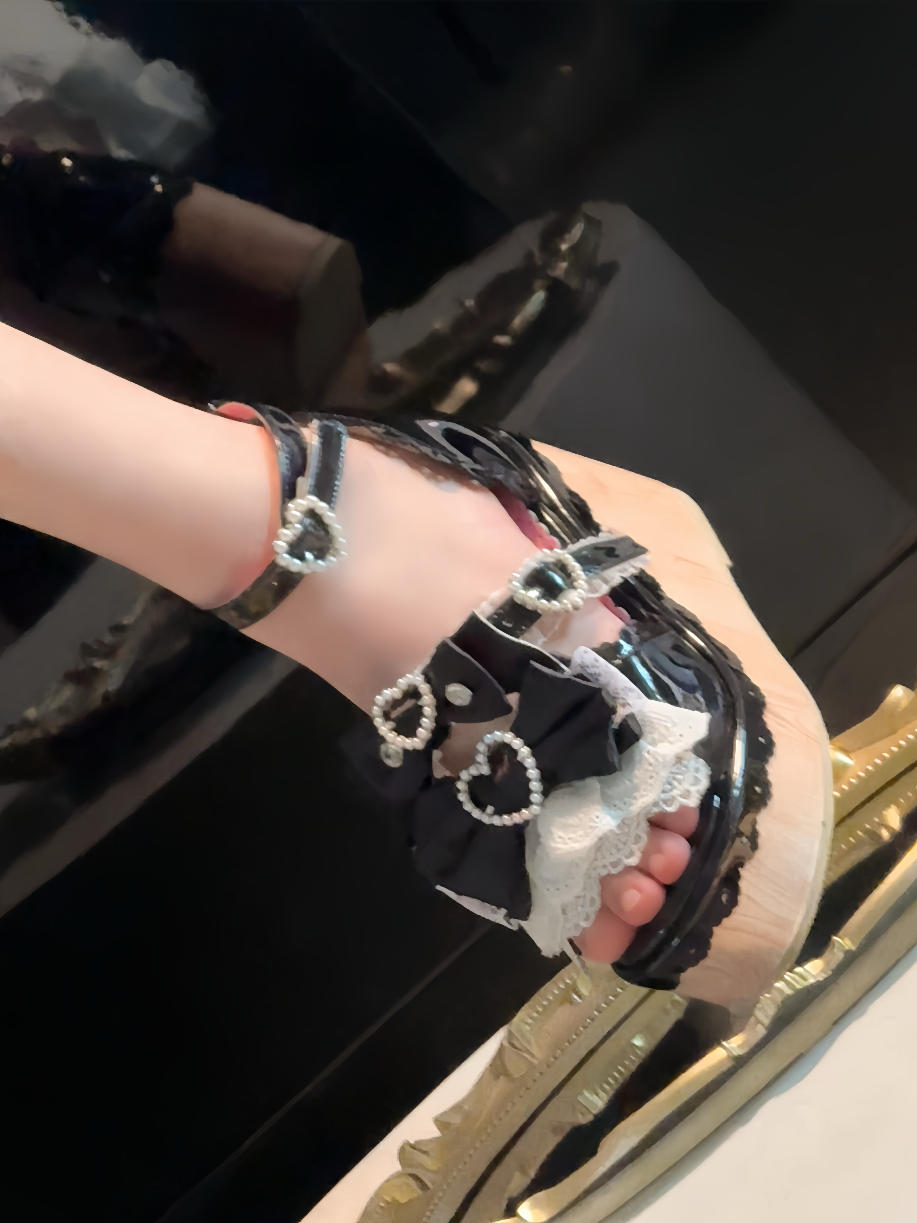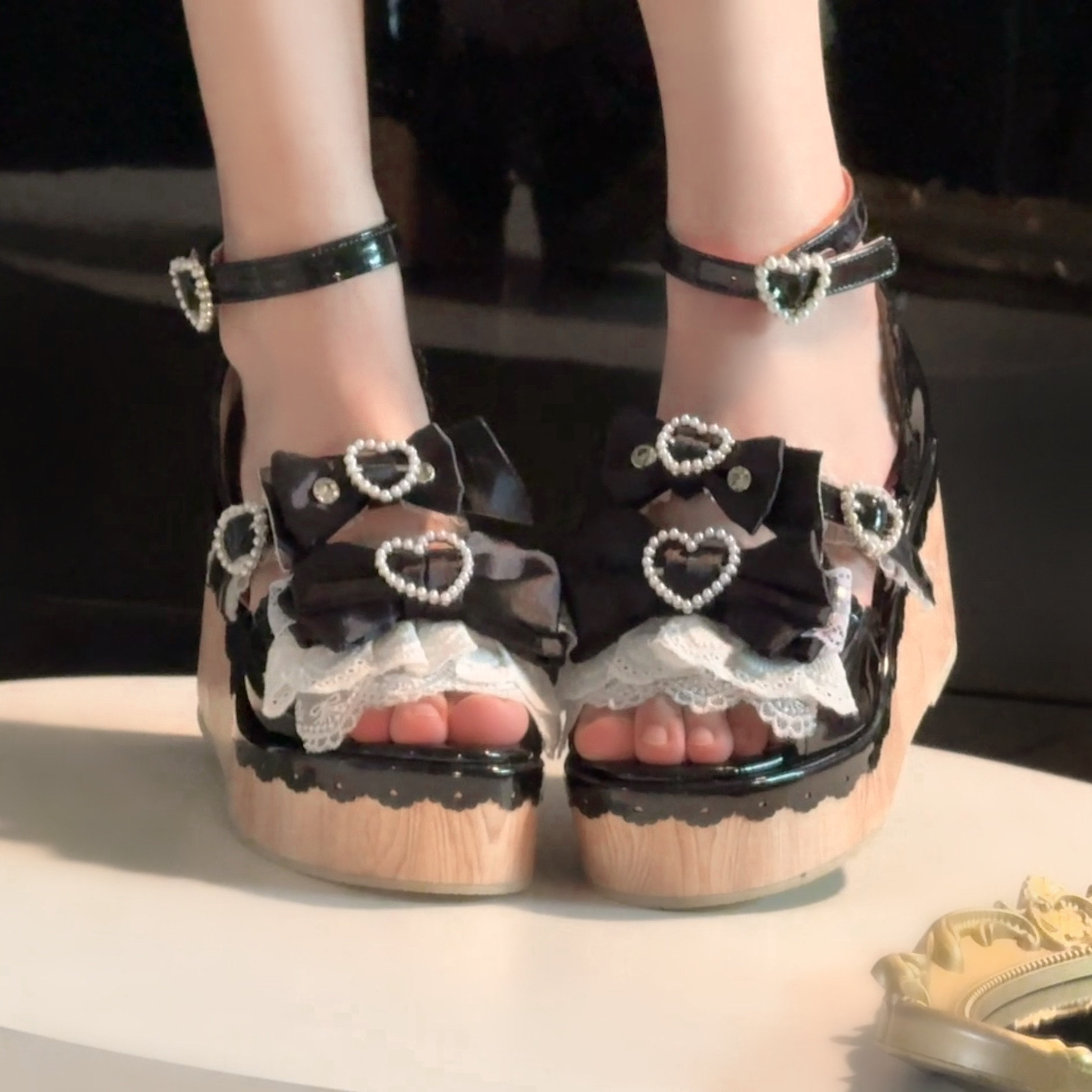 转校生 昭和夏梦 原创古早坡跟鞋漏指凉鞋千禧年姬系蝴蝶结lo鞋女 [Original Page Link]