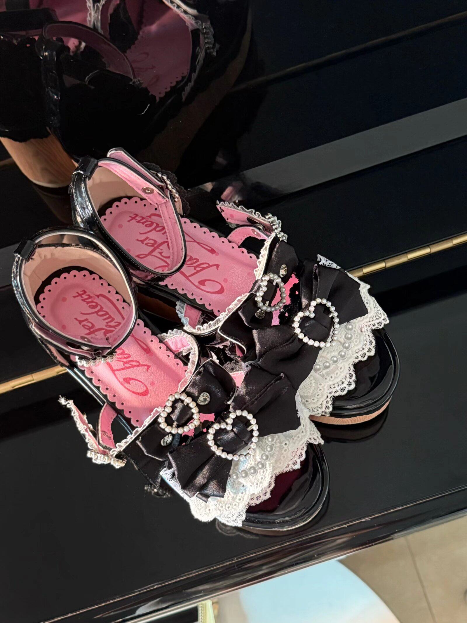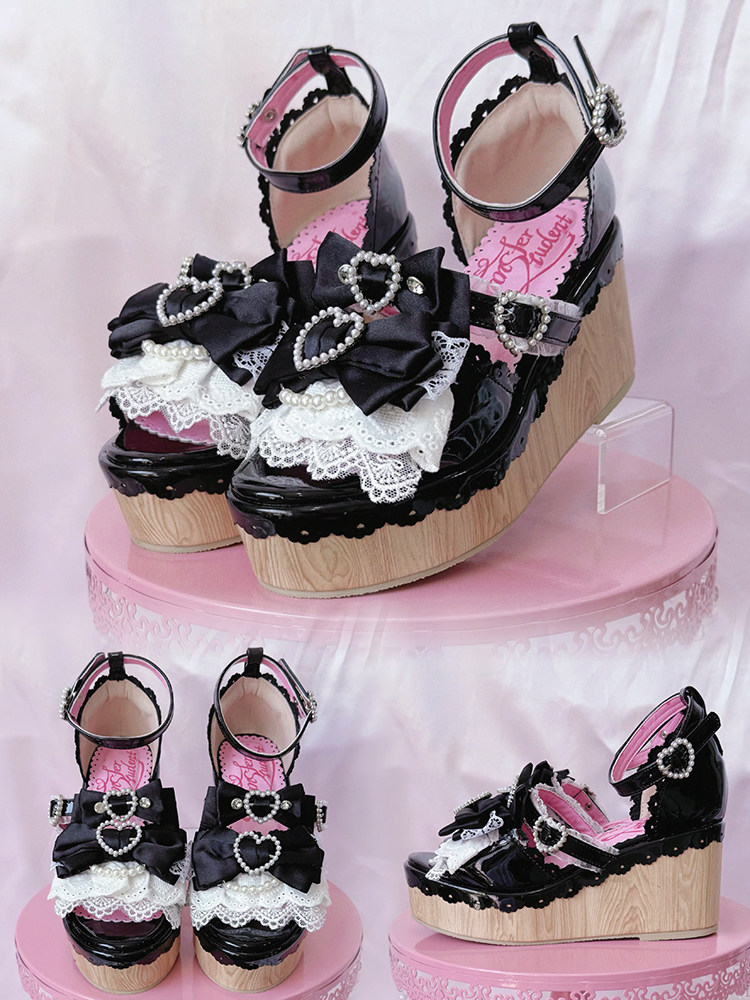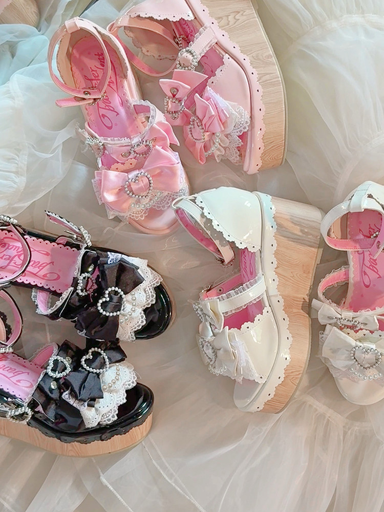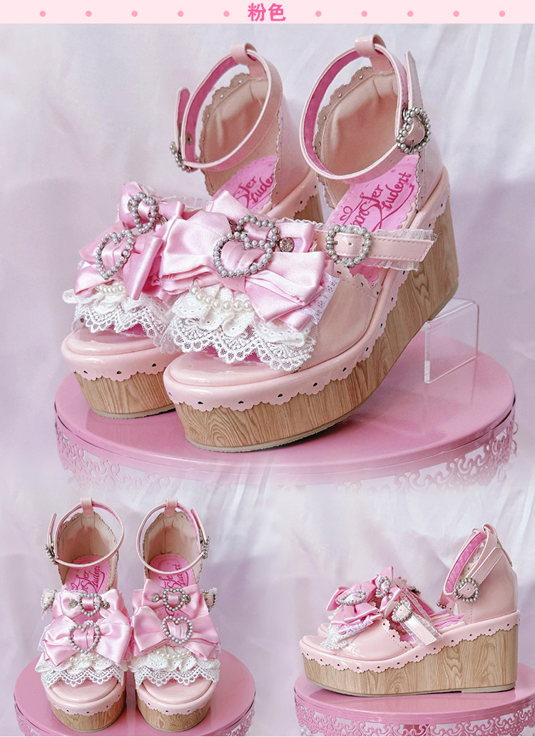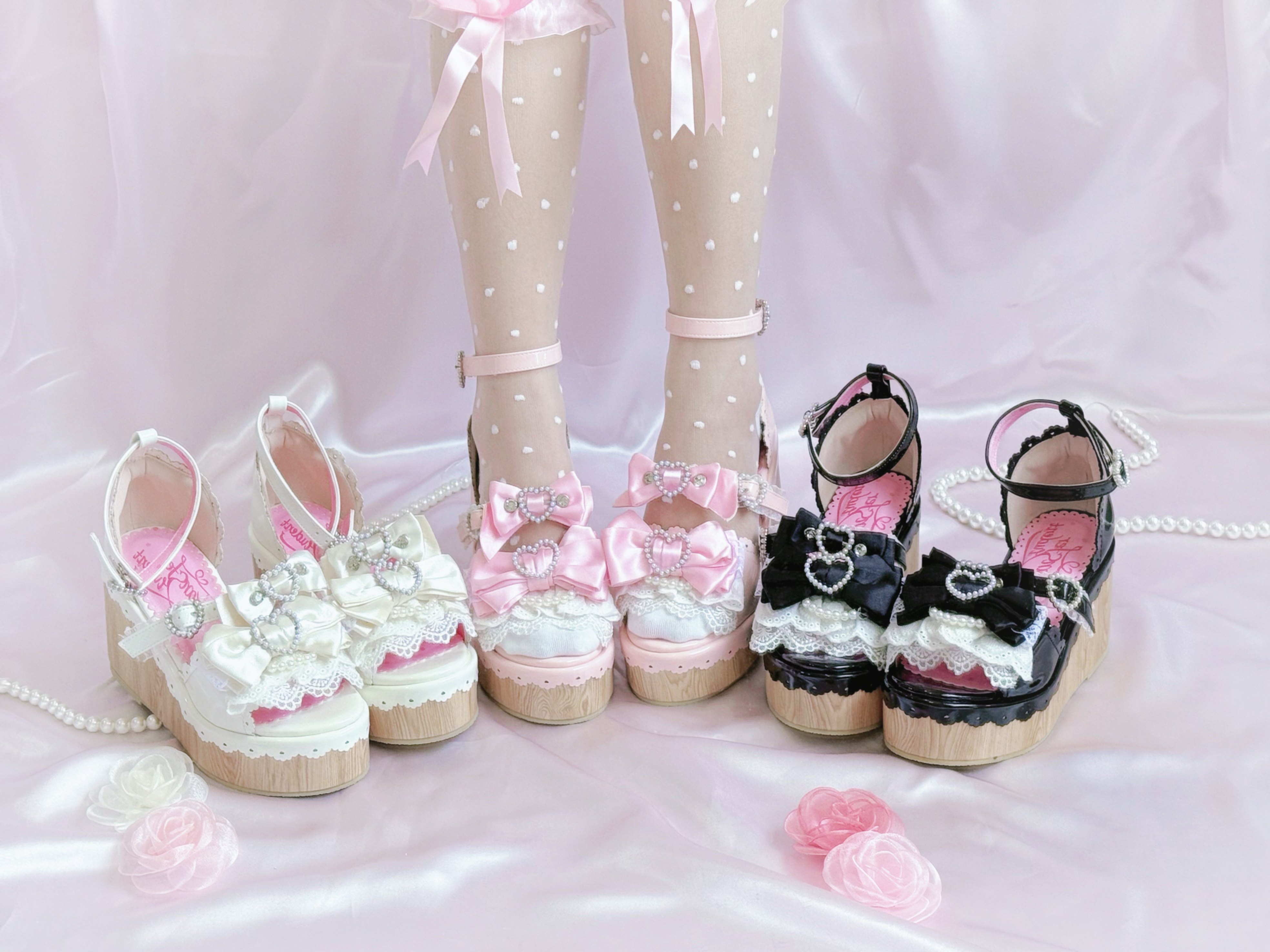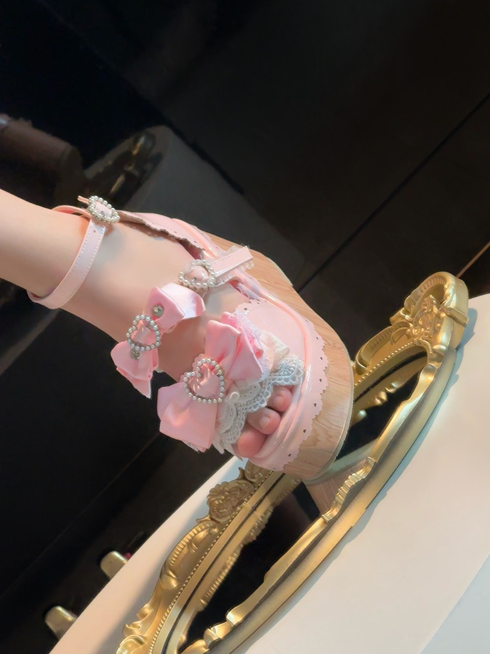 转校生 昭和夏梦 原创古早坡跟鞋漏指凉鞋千禧年姬系蝴蝶结lo鞋女 [Original Page Link]