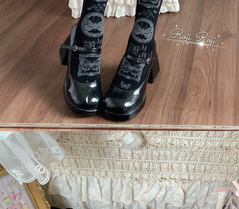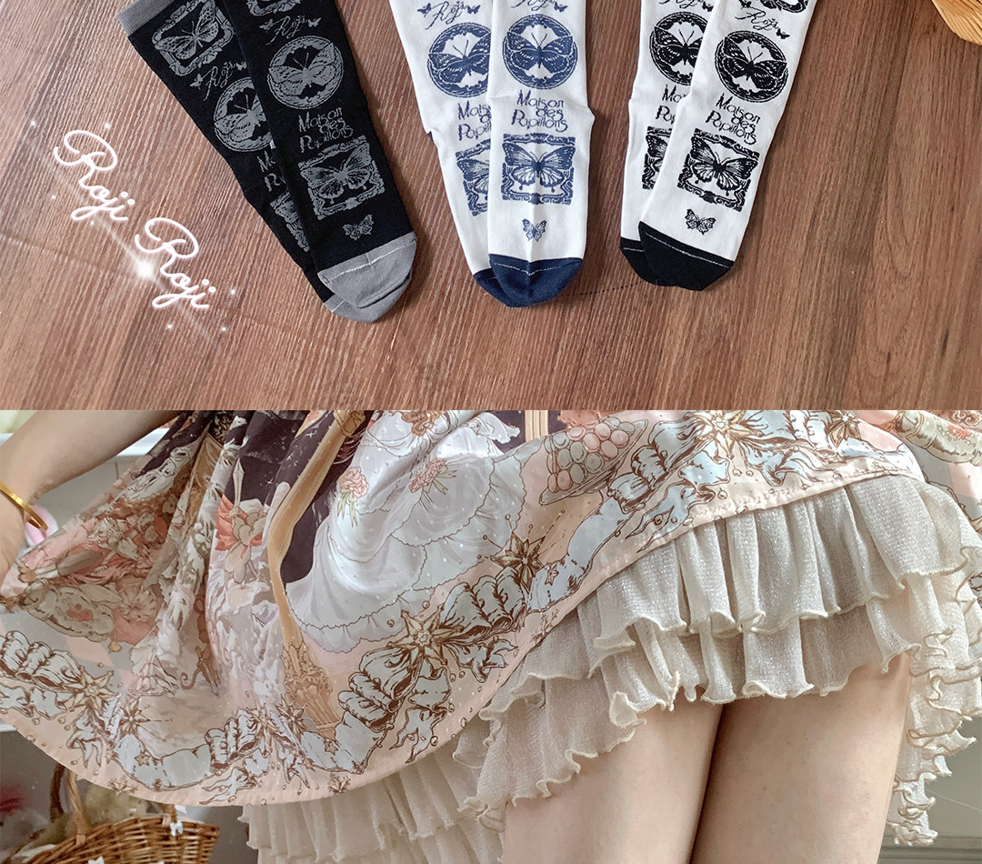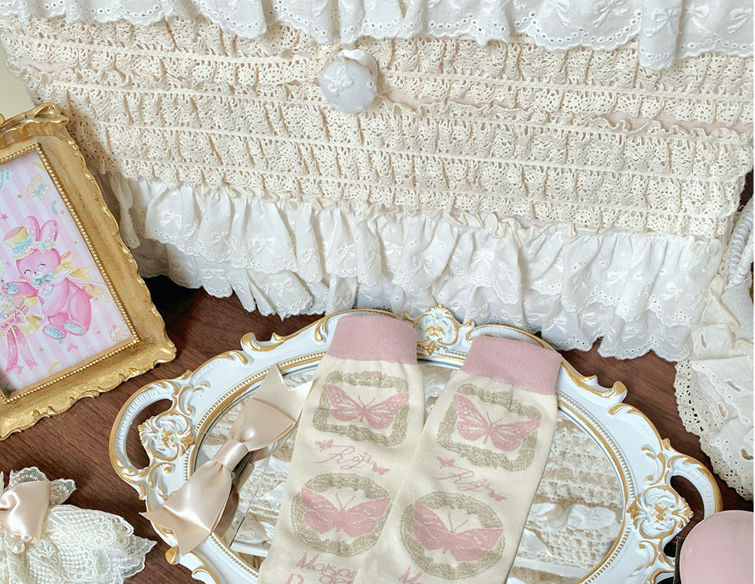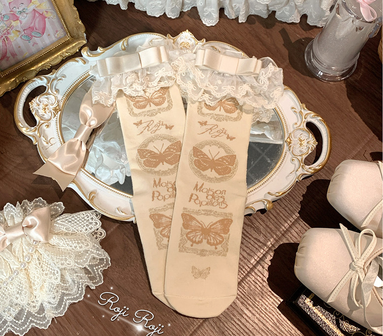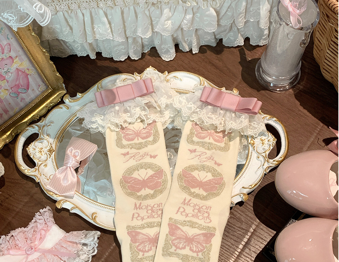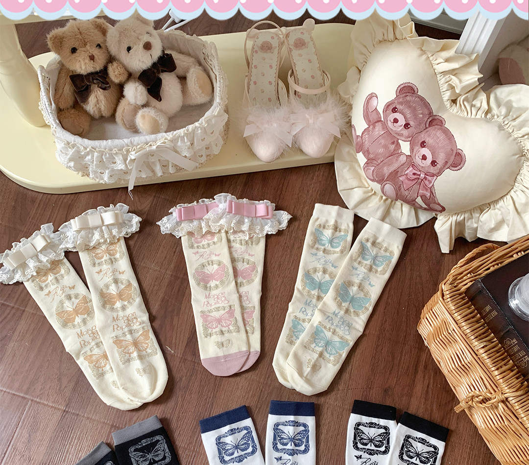 Roji Butterfly Gallery Lolita Lace Socks Women's Summer Breathable Cotton Bow Slimming Socks Lolita Japanese Style