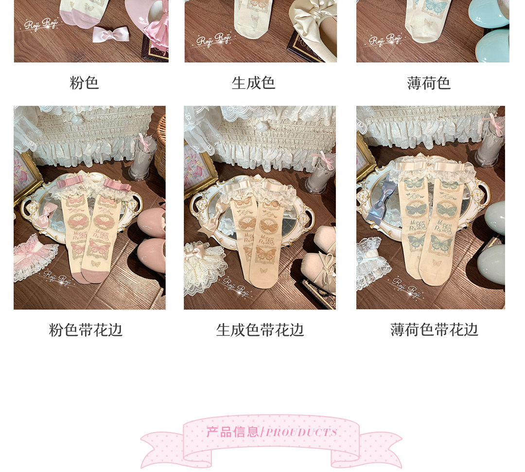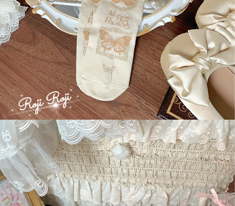 roji蝴蝶画廊Lolita花边袜女夏透气纯棉蝴蝶结瘦腿短袜洛丽塔日系 [Original Page Link]