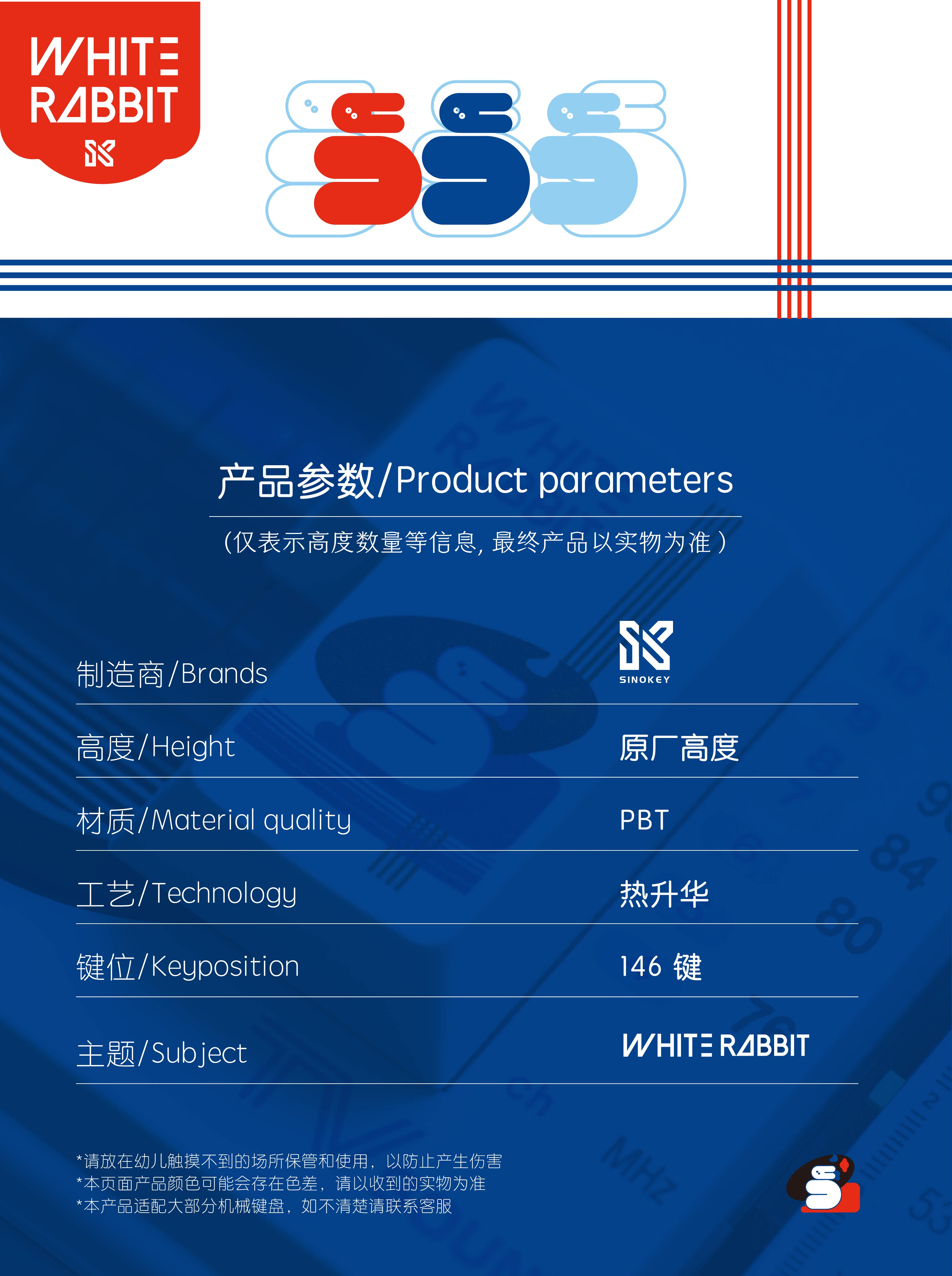 SINOKEY大白兔奶糖原创键帽原厂高度1.7mmPBT机械键盘键帽极简风 [Original Page Link]