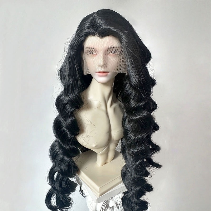 Yale BJD wig, high-temperature silk, wavy curls, single widow's peak, right-side parted long hair, rough shape.
