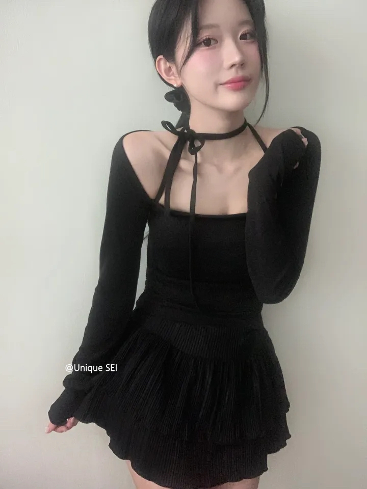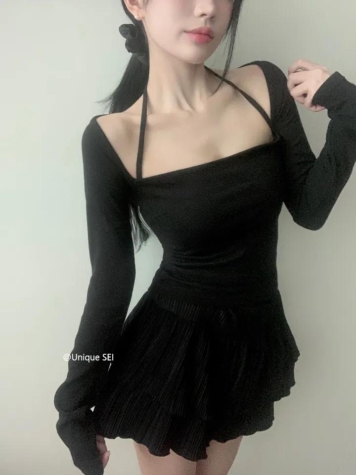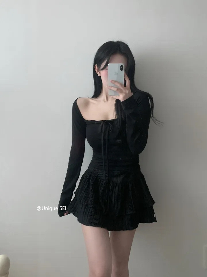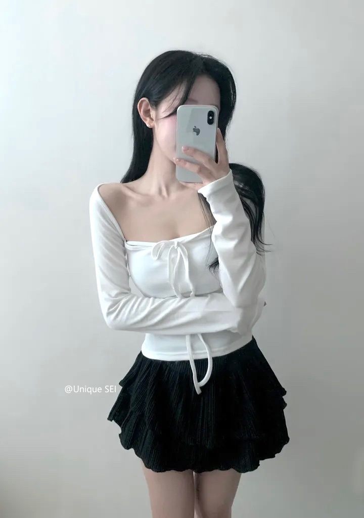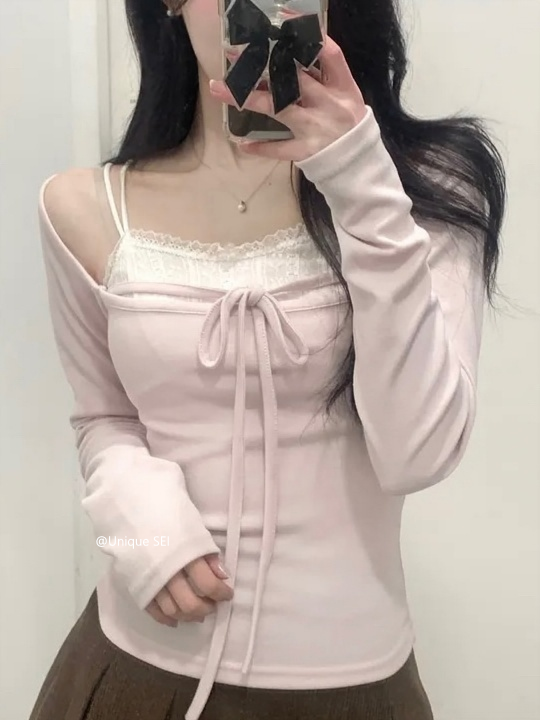 Unique SEI 古早韩系温柔芭蕾少女感修身百搭显瘦绑带长袖T恤上衣 [Original Page Link]