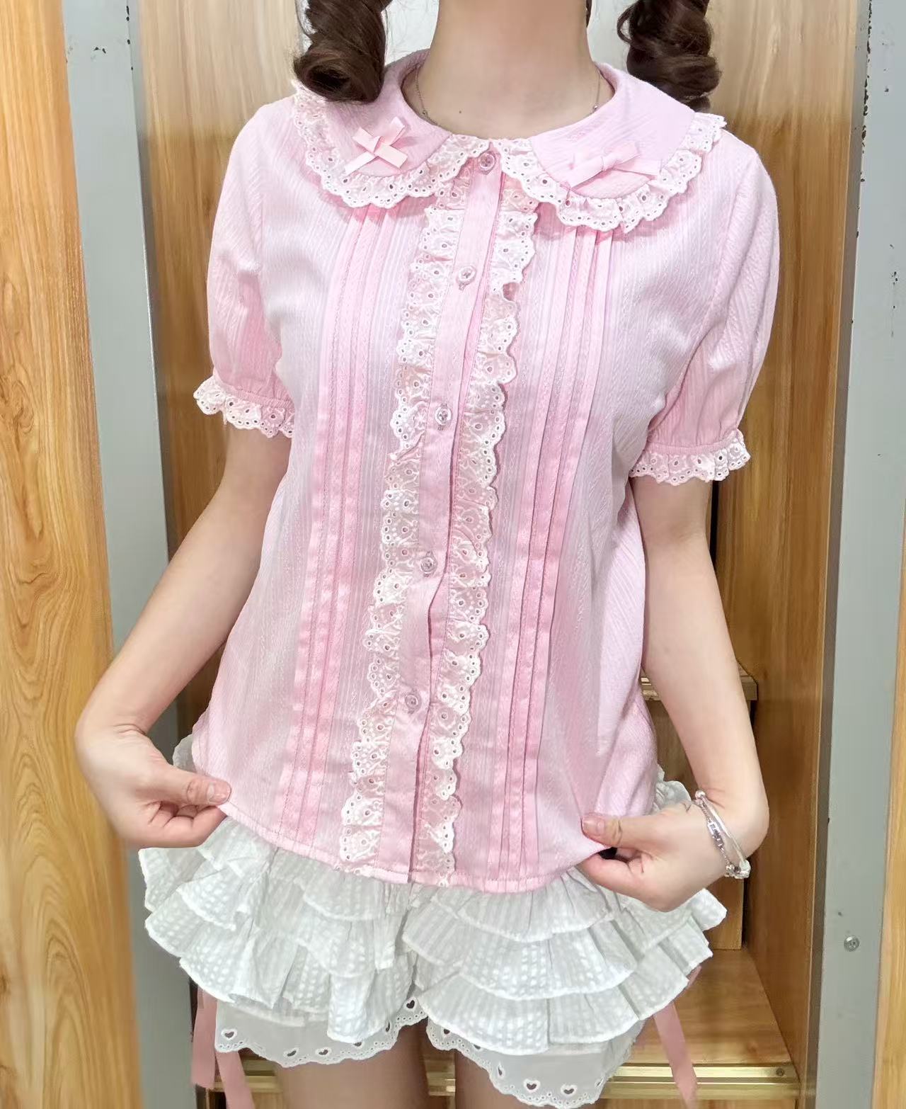 lolita纯棉衬衫日系软妹娃娃领短袖甜美内搭修身上衣女夏洛丽塔 [Original Page Link]
