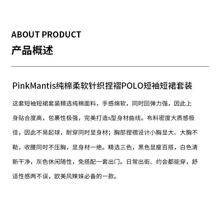 pinkmantis纯棉柔软针织捏褶短袖短裙套装四色 [Original Page Link]