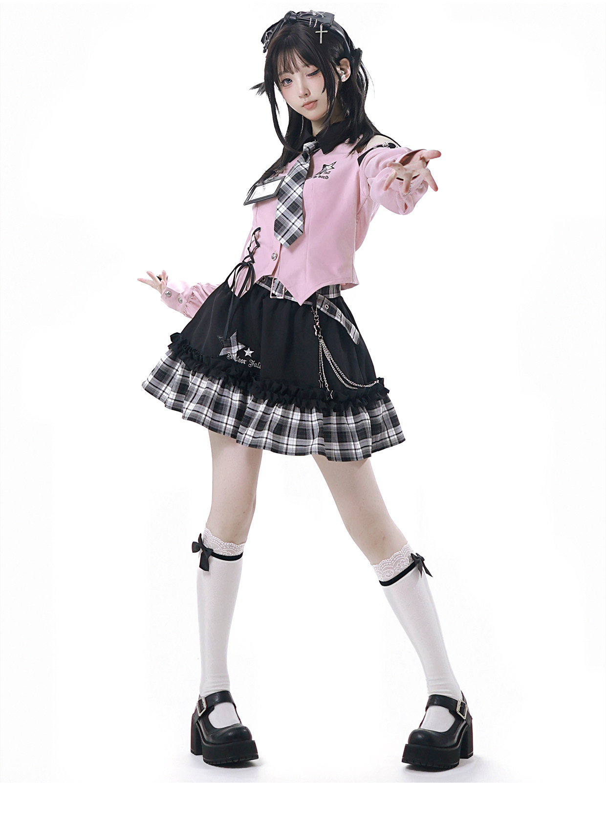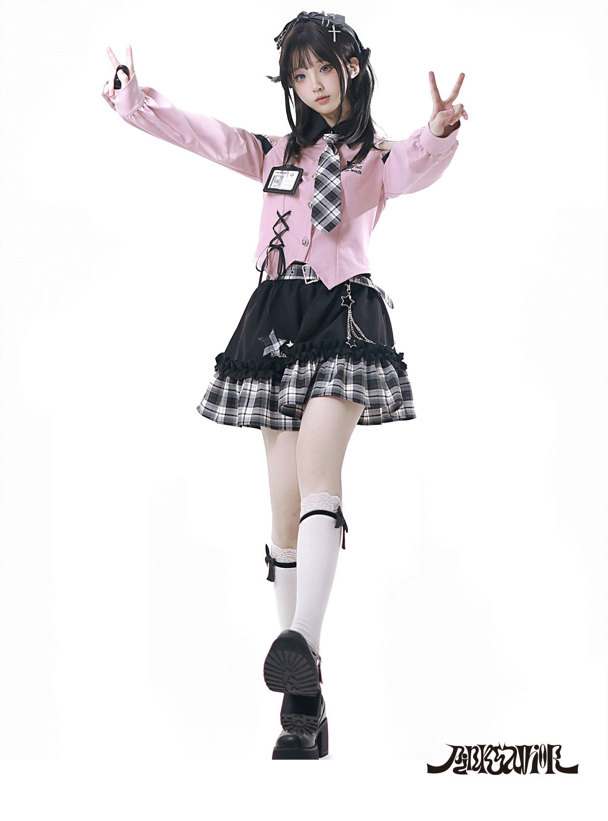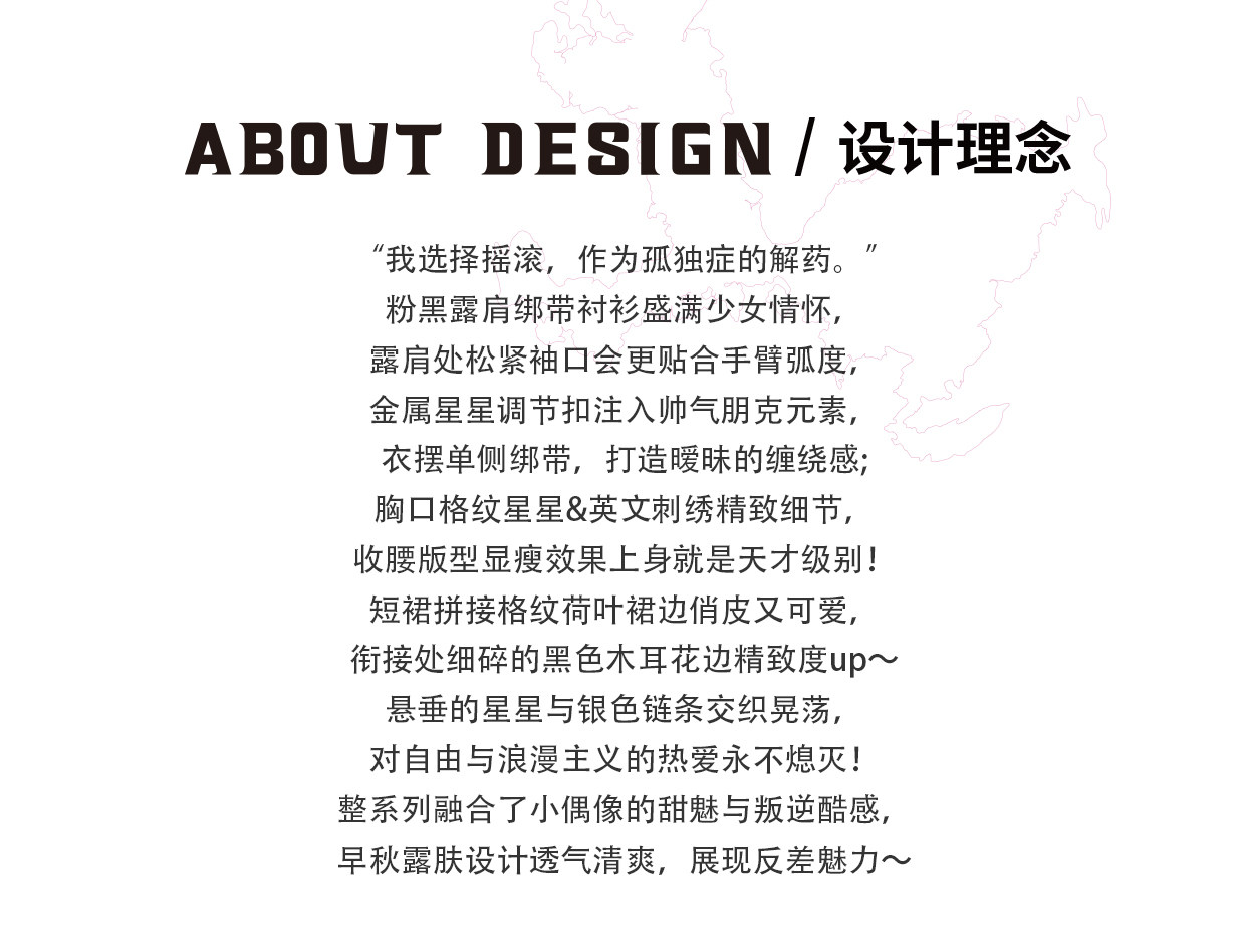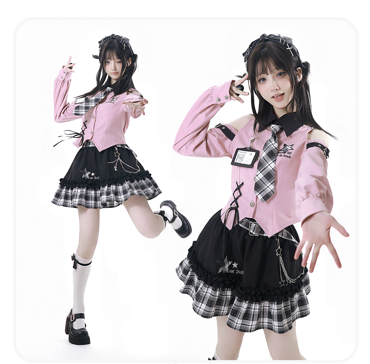 pinksavior【星辰闪耀】露肩粉黑早秋衬衫半裙设计感显瘦套装 [Original Page Link]