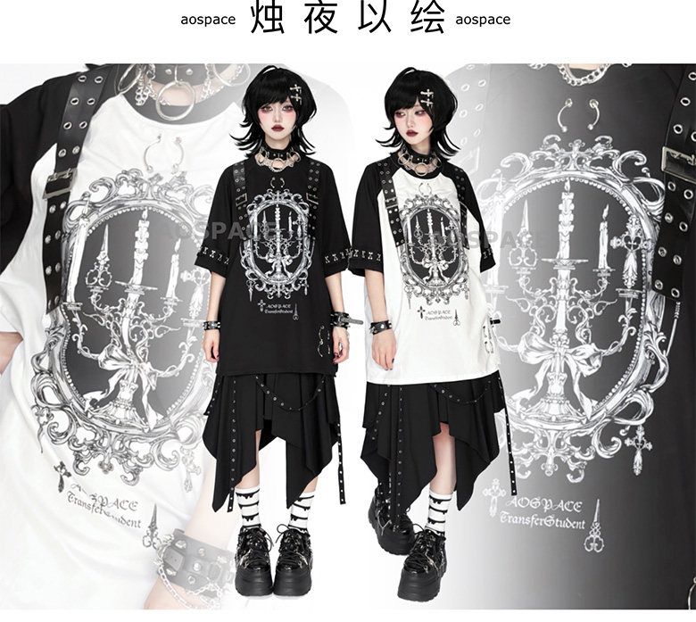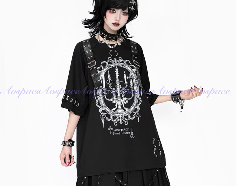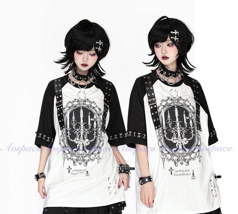 缺氧外太空【烛夜以绘】自制画框印花皮带装饰插肩暗黑轻亚短袖 [Original Page Link]