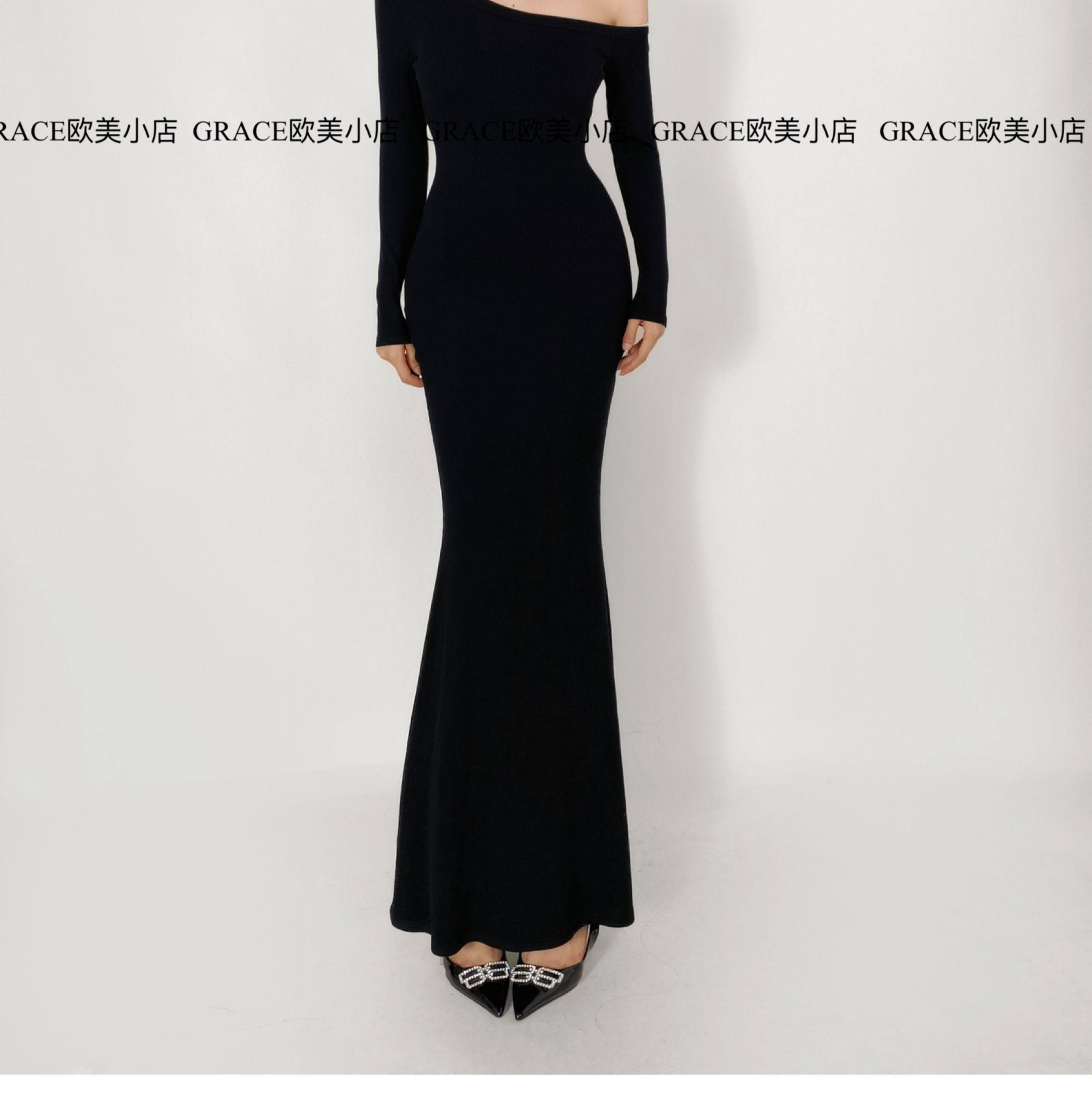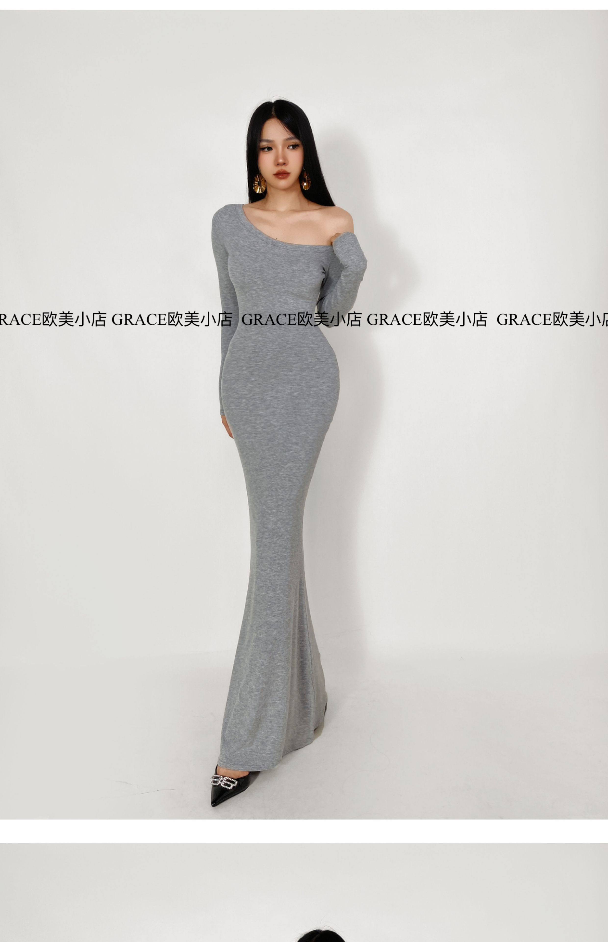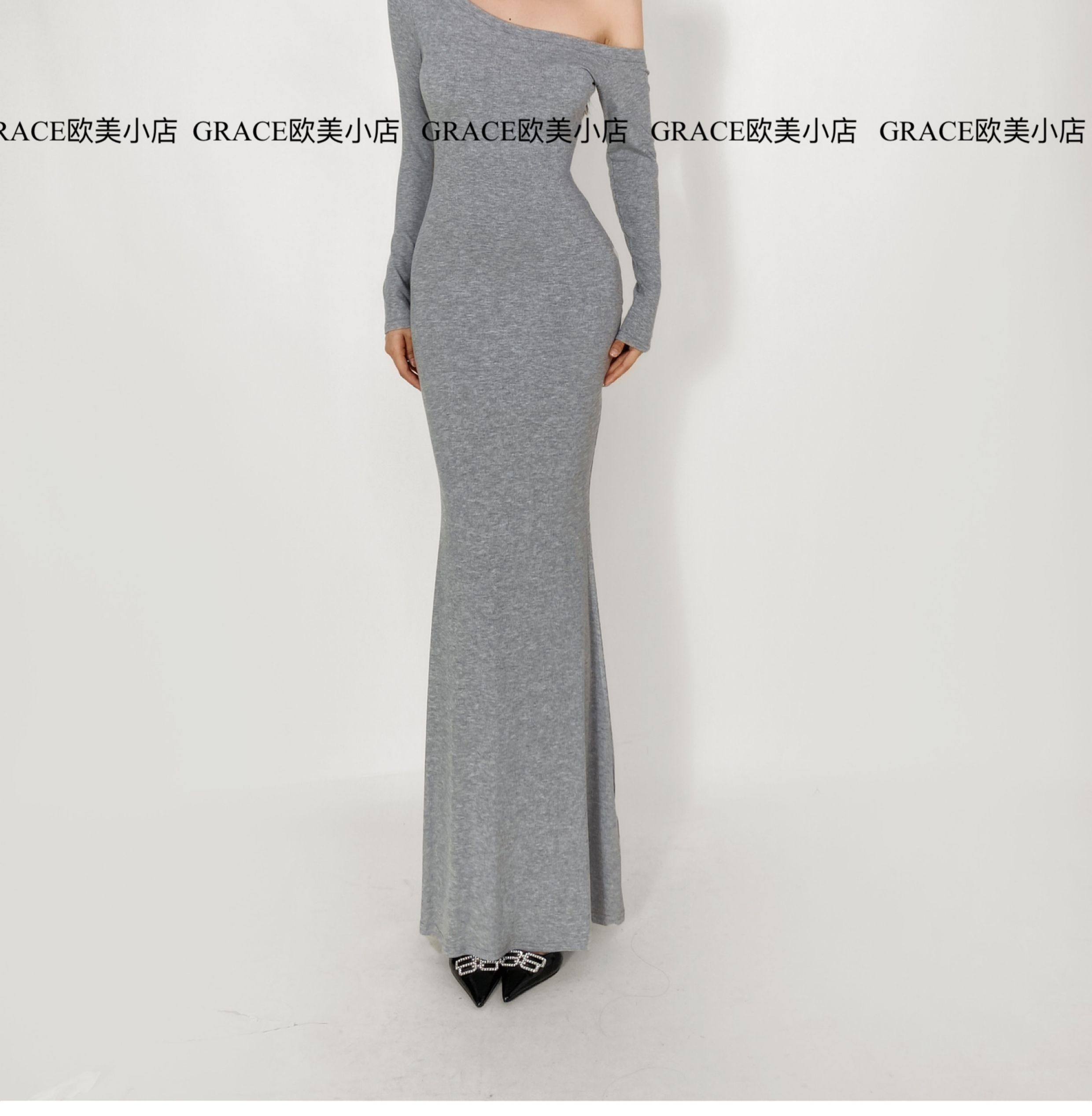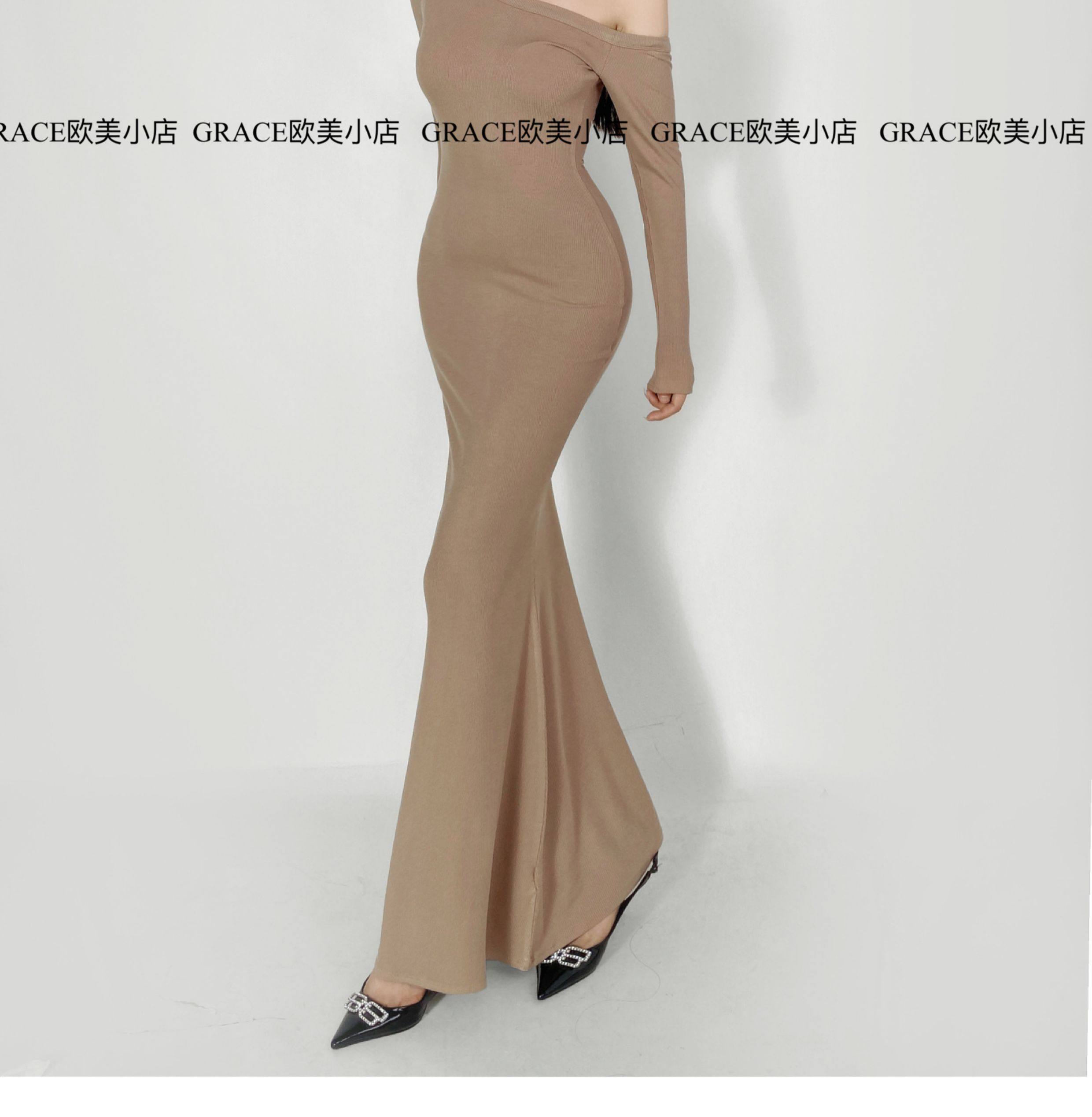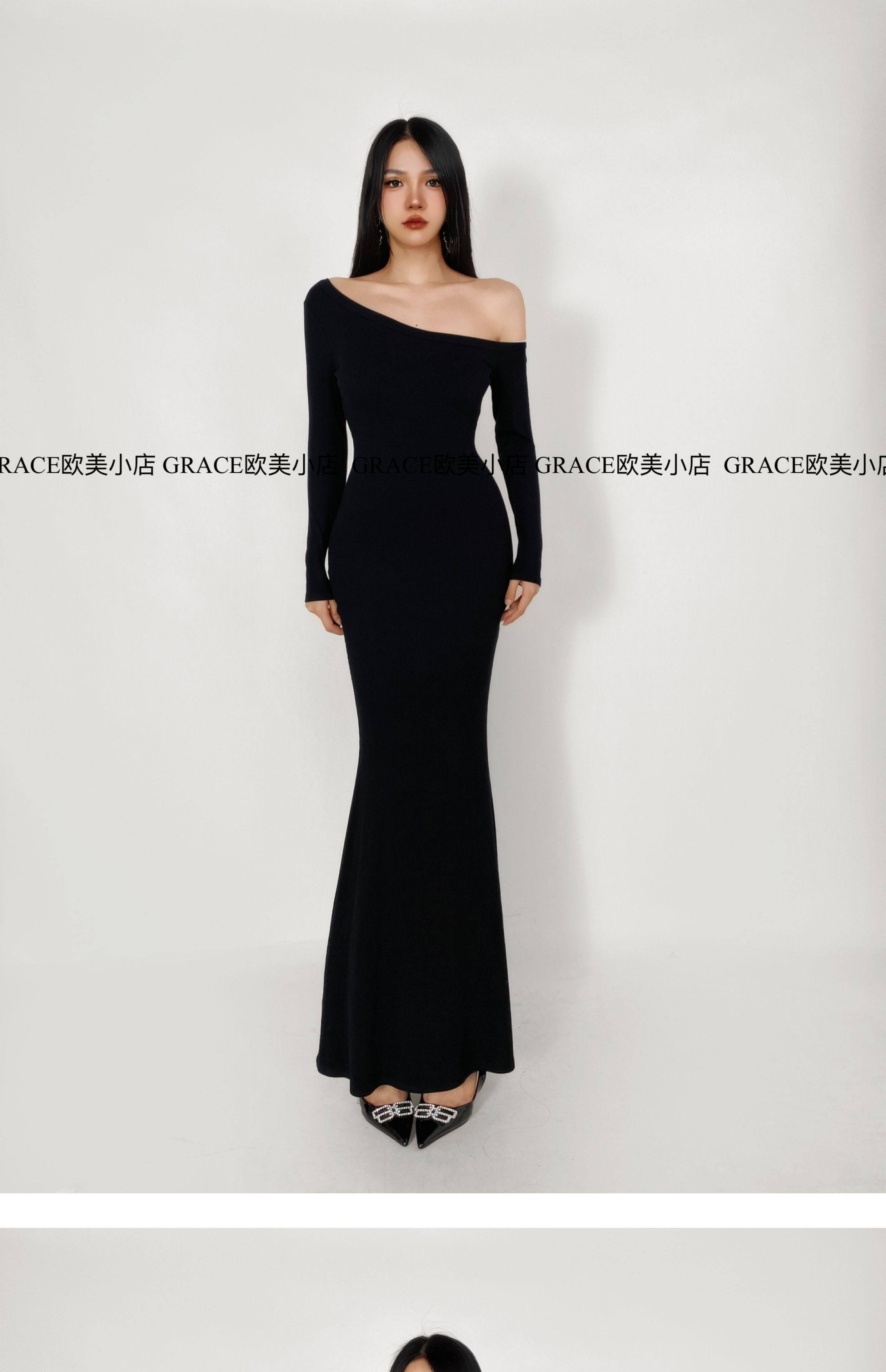 GRACE欧美小店2025秋季新款斜肩连衣裙女包臀裙显瘦御姐风长裙子 [Original Page Link]