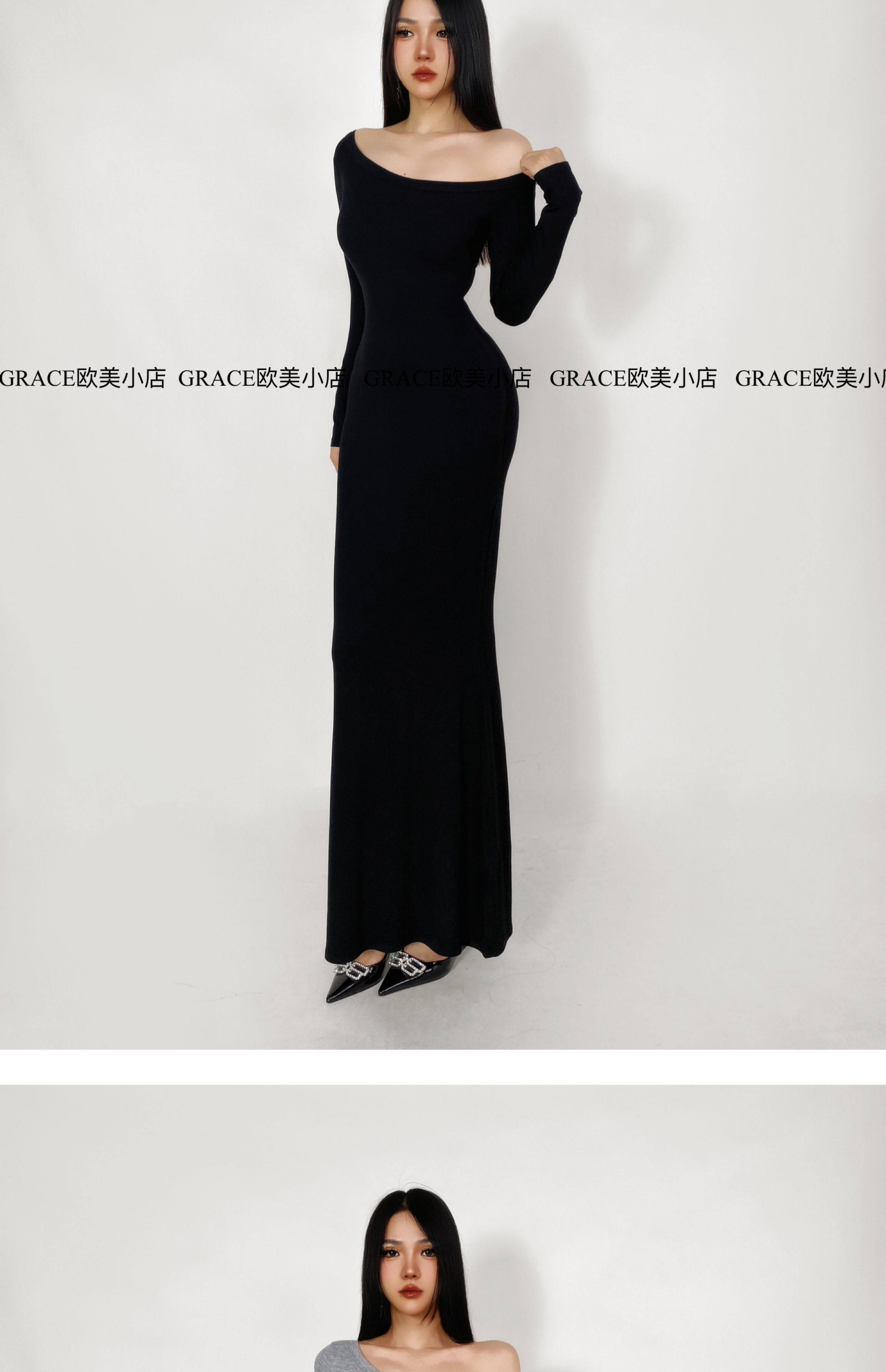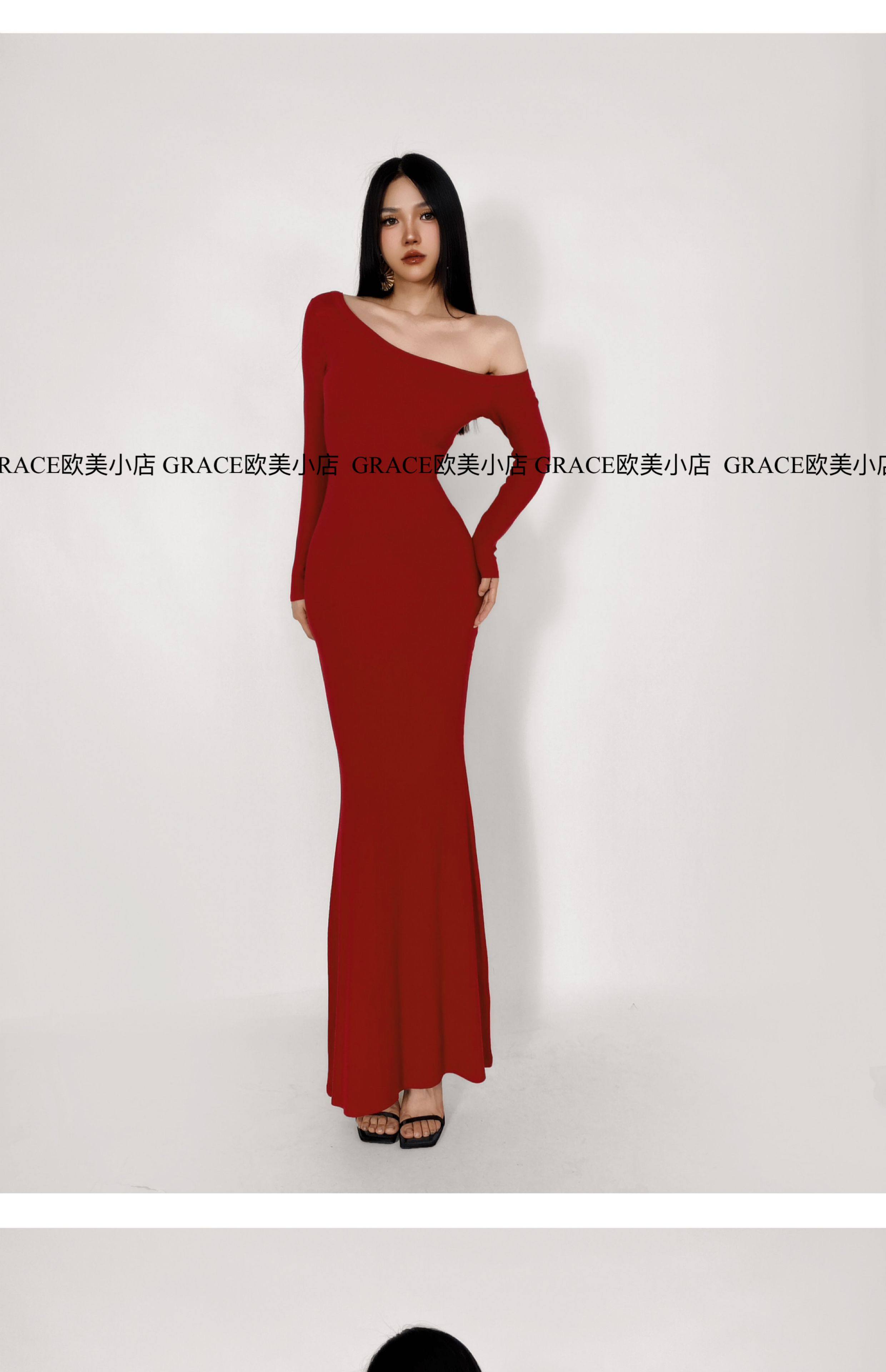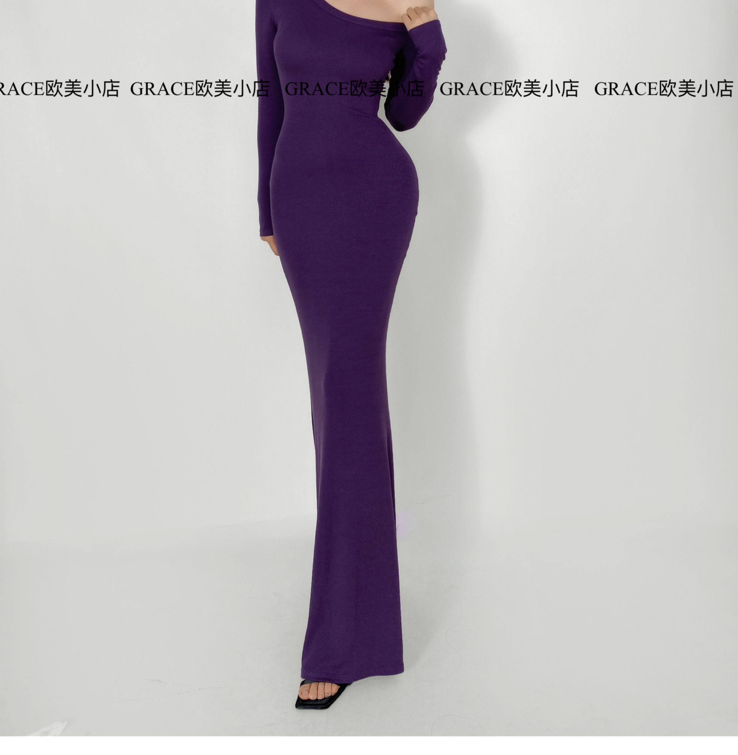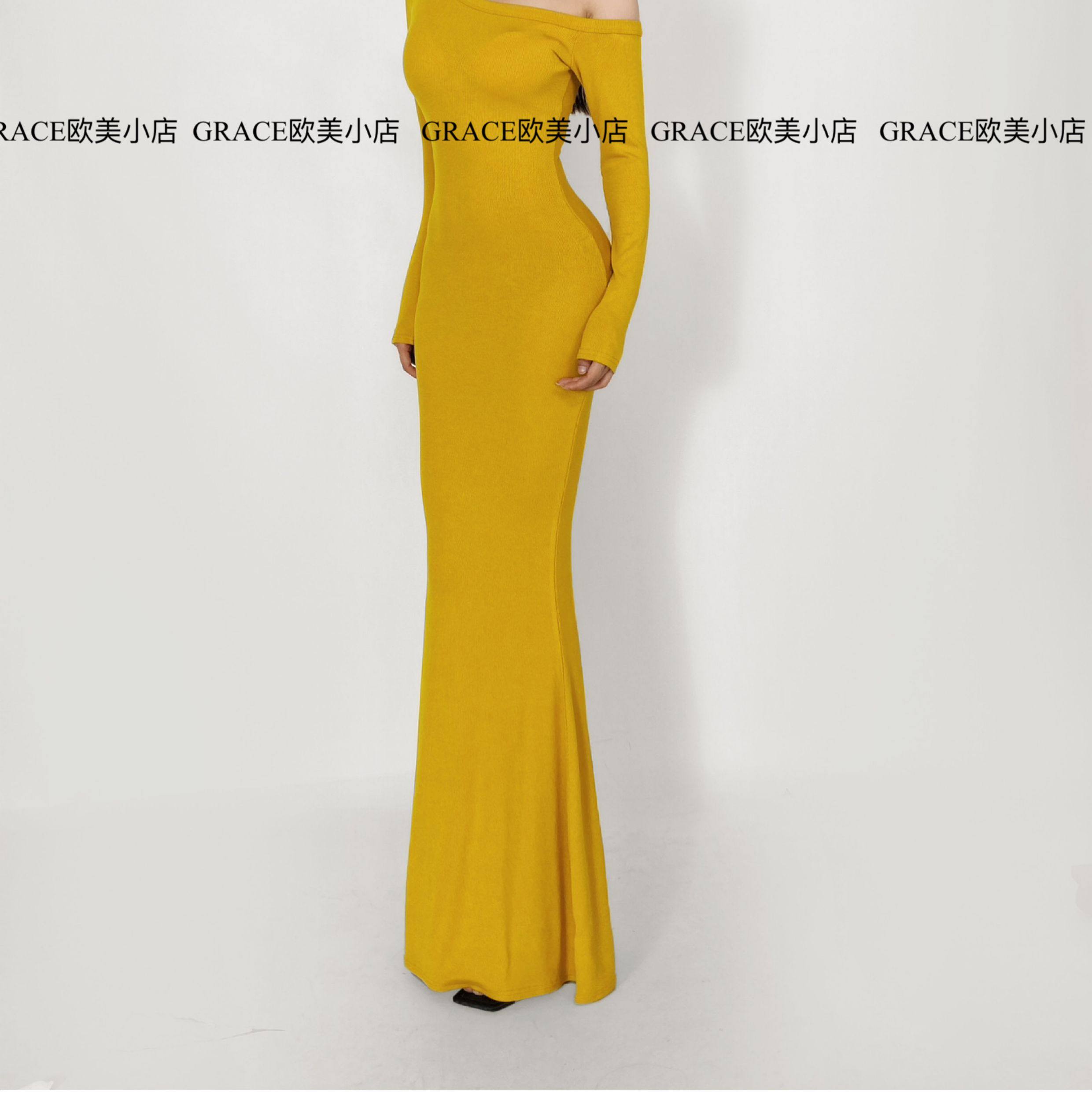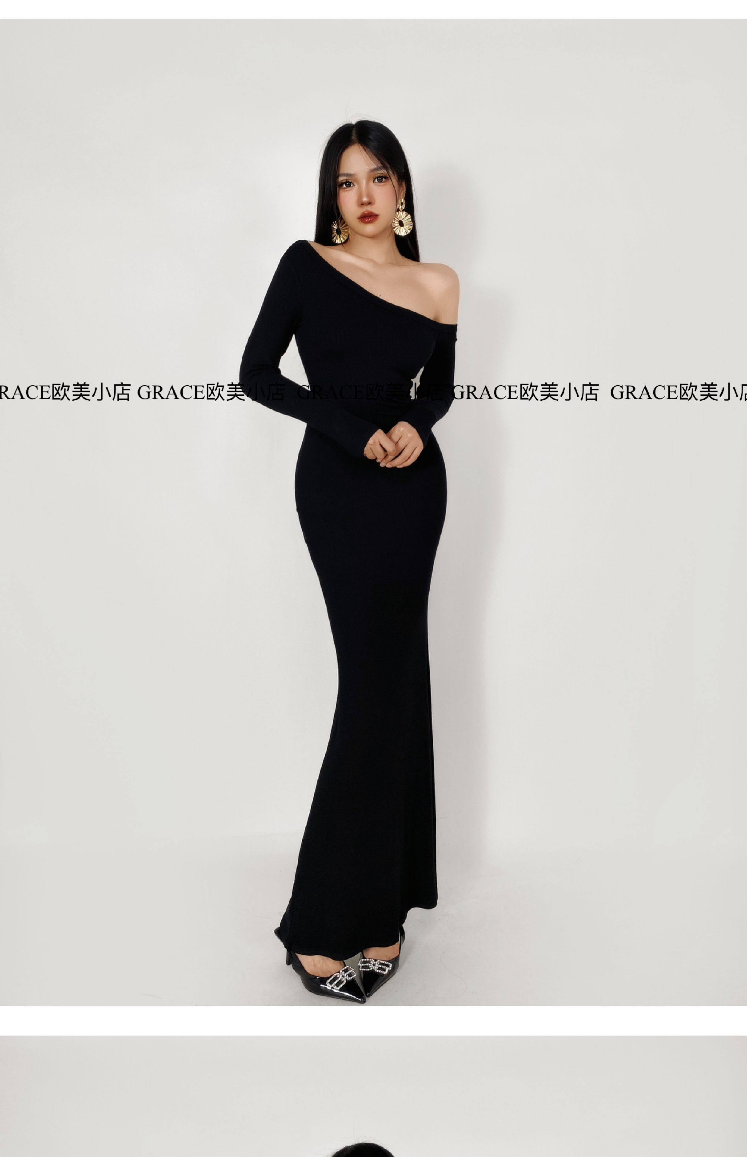 GRACE欧美小店2025秋季新款斜肩连衣裙女包臀裙显瘦御姐风长裙子 [Original Page Link]
