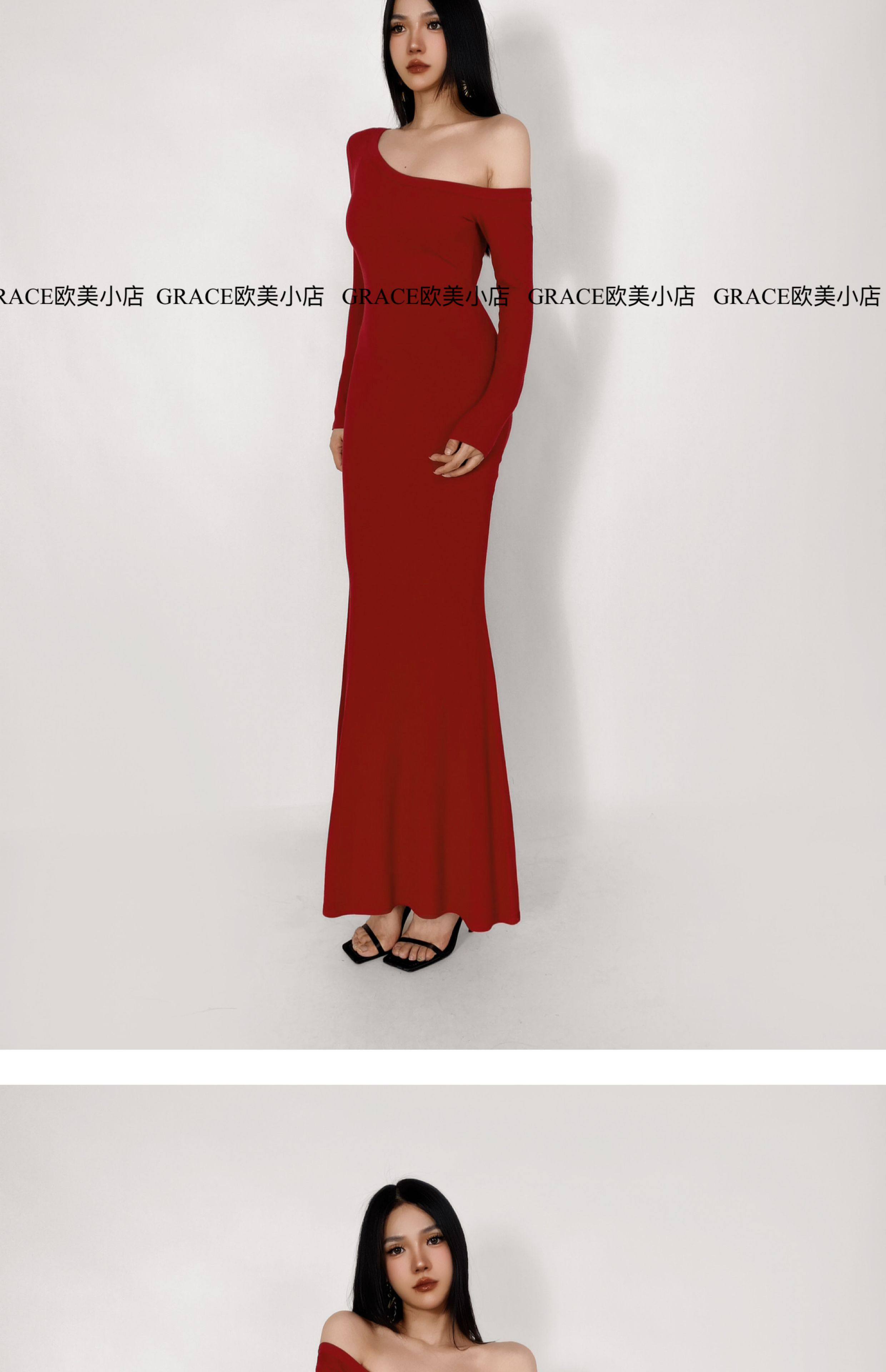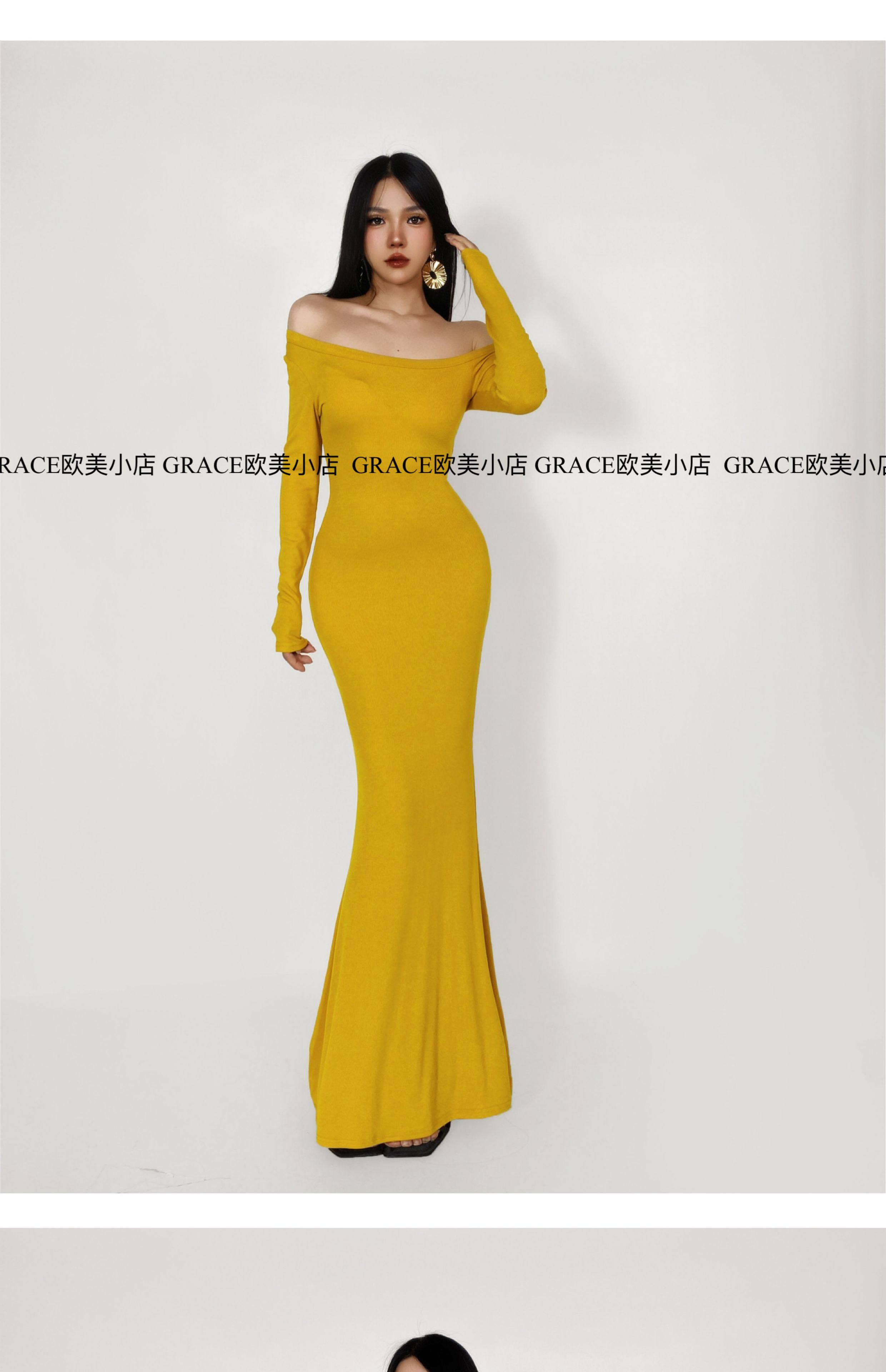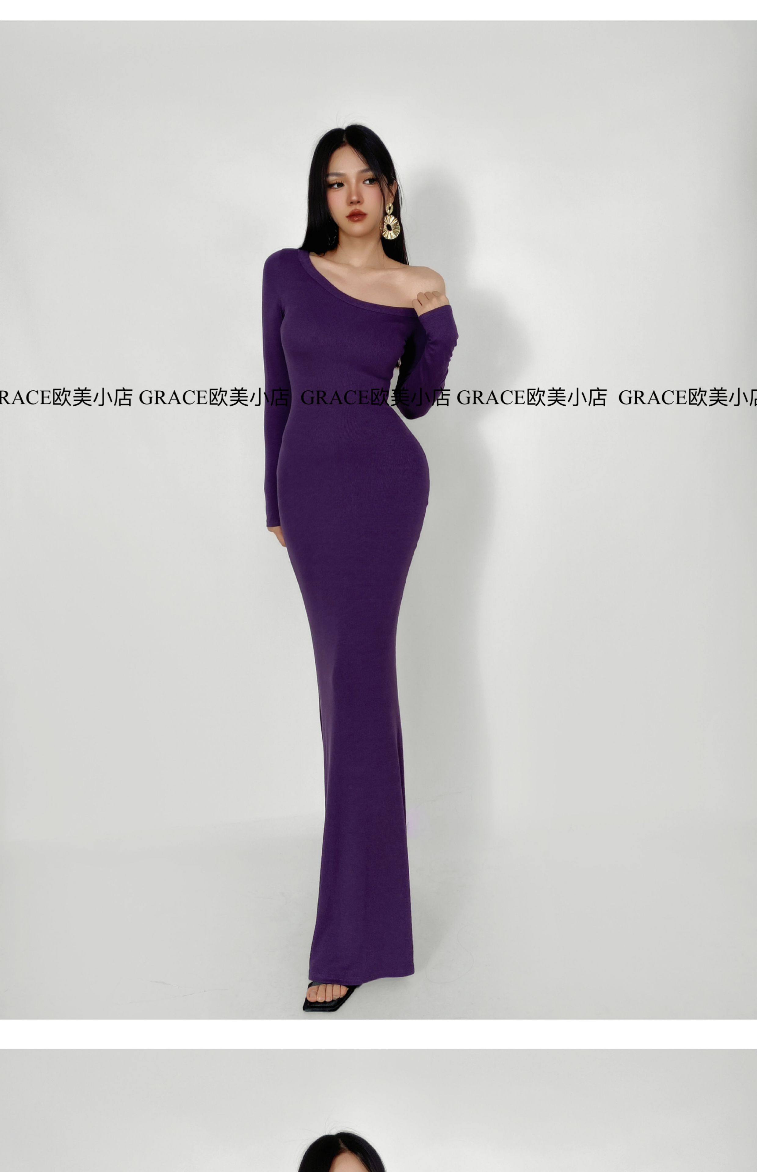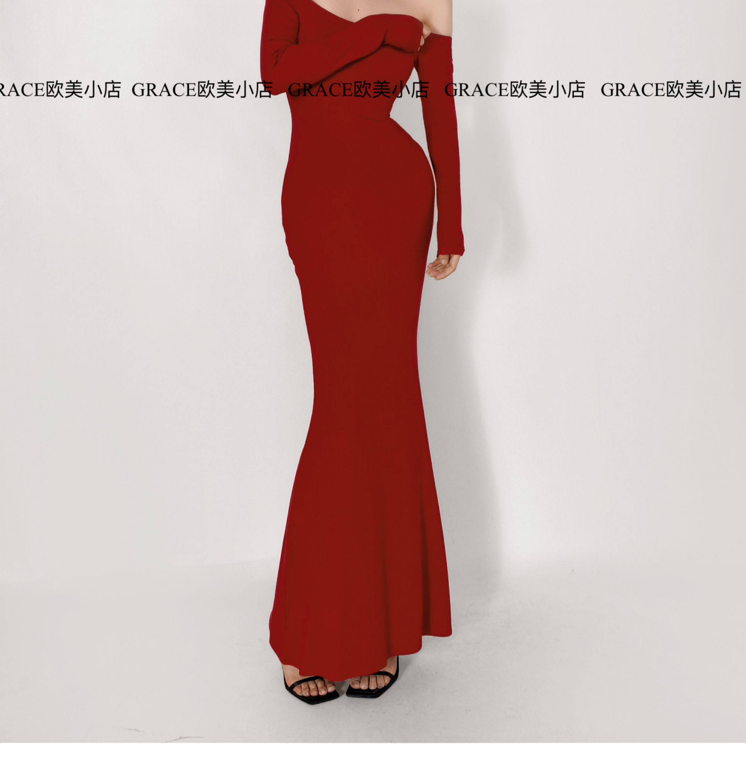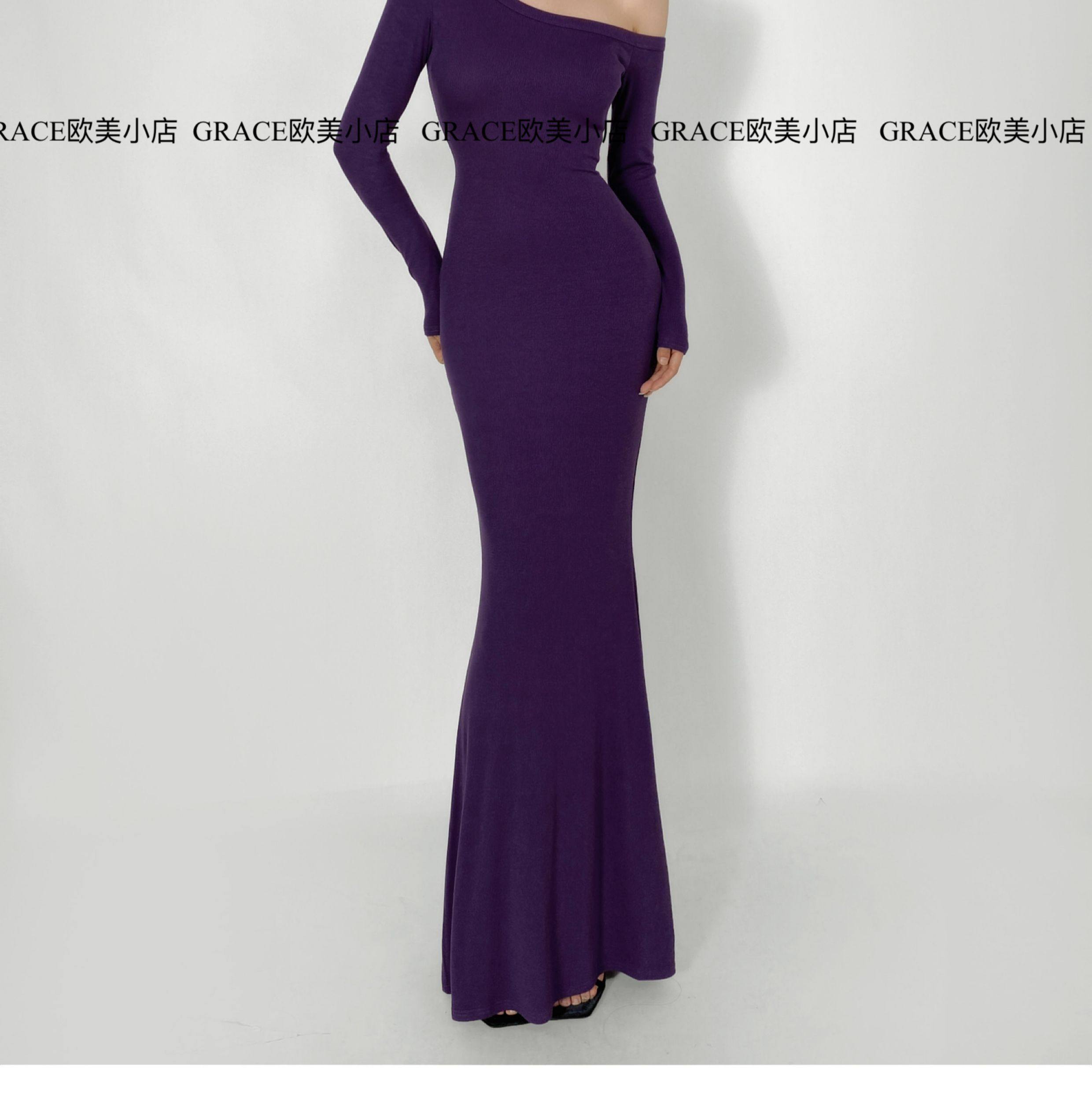 GRACE欧美小店2025秋季新款斜肩连衣裙女包臀裙显瘦御姐风长裙子 [Original Page Link]