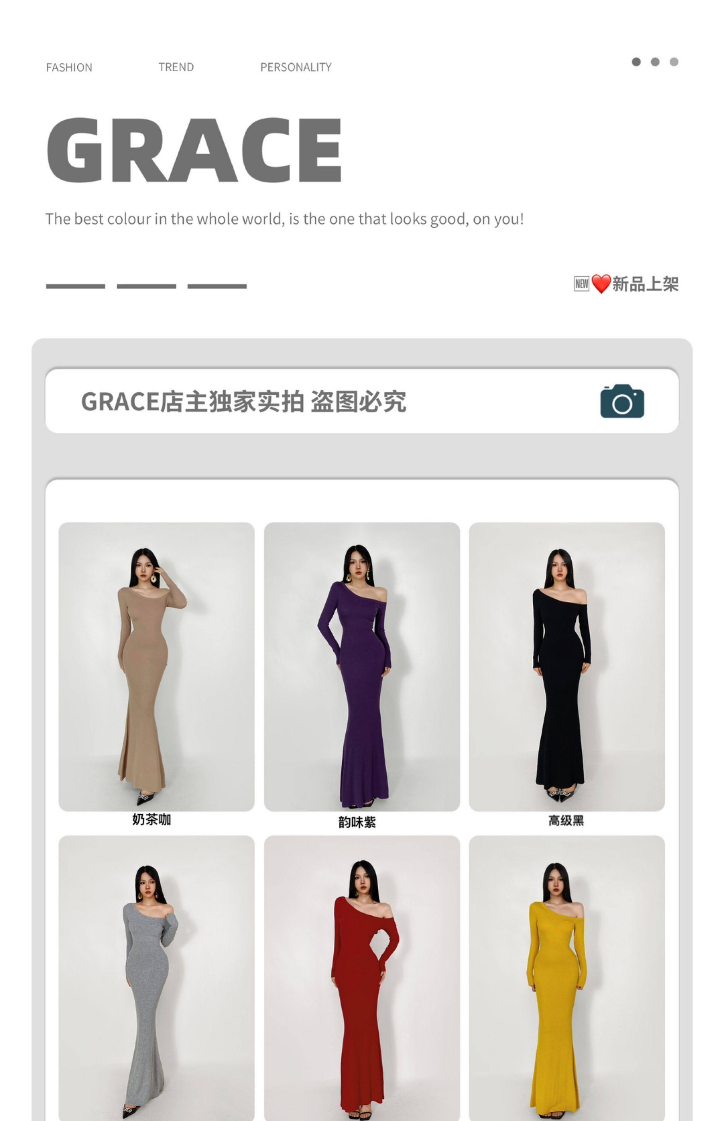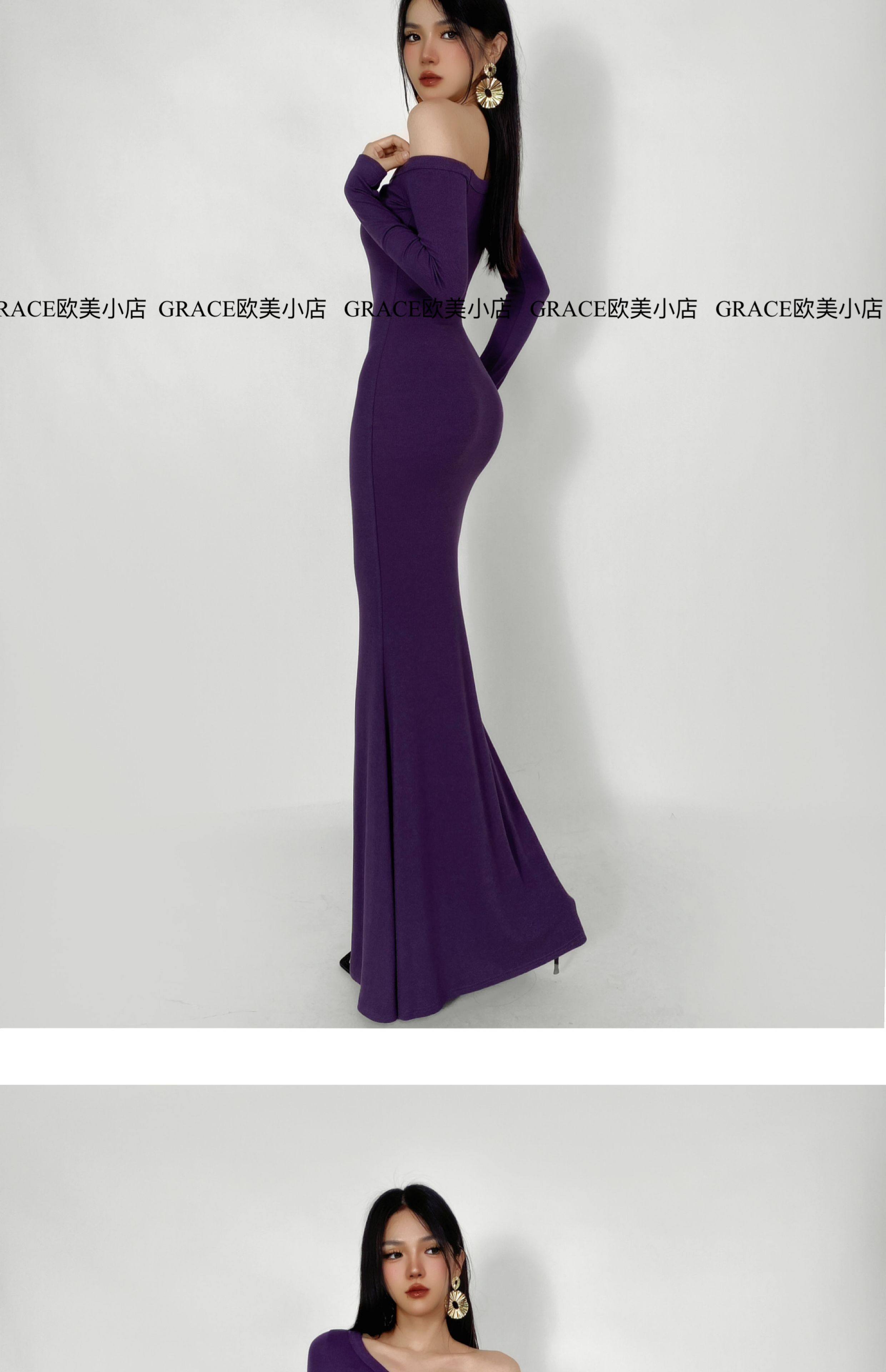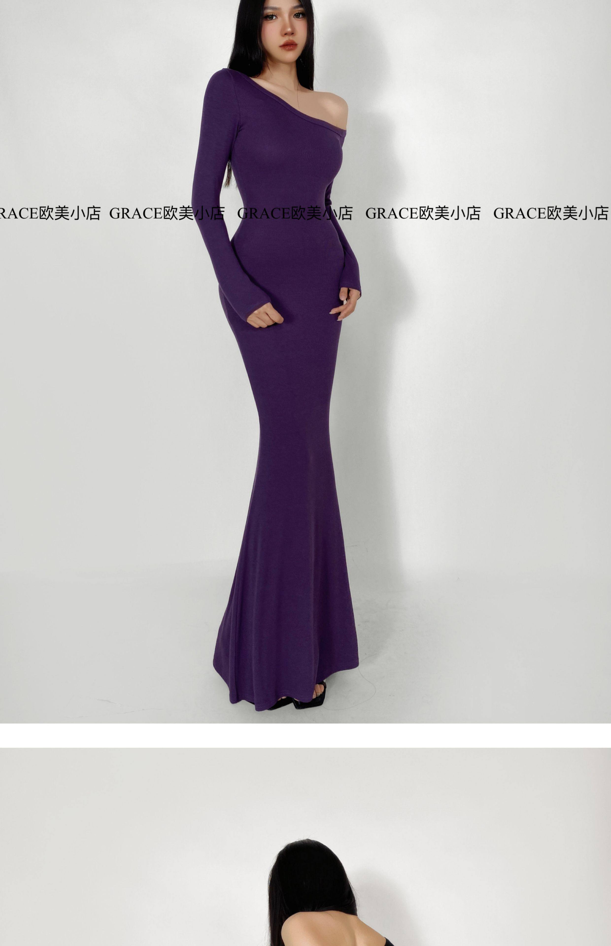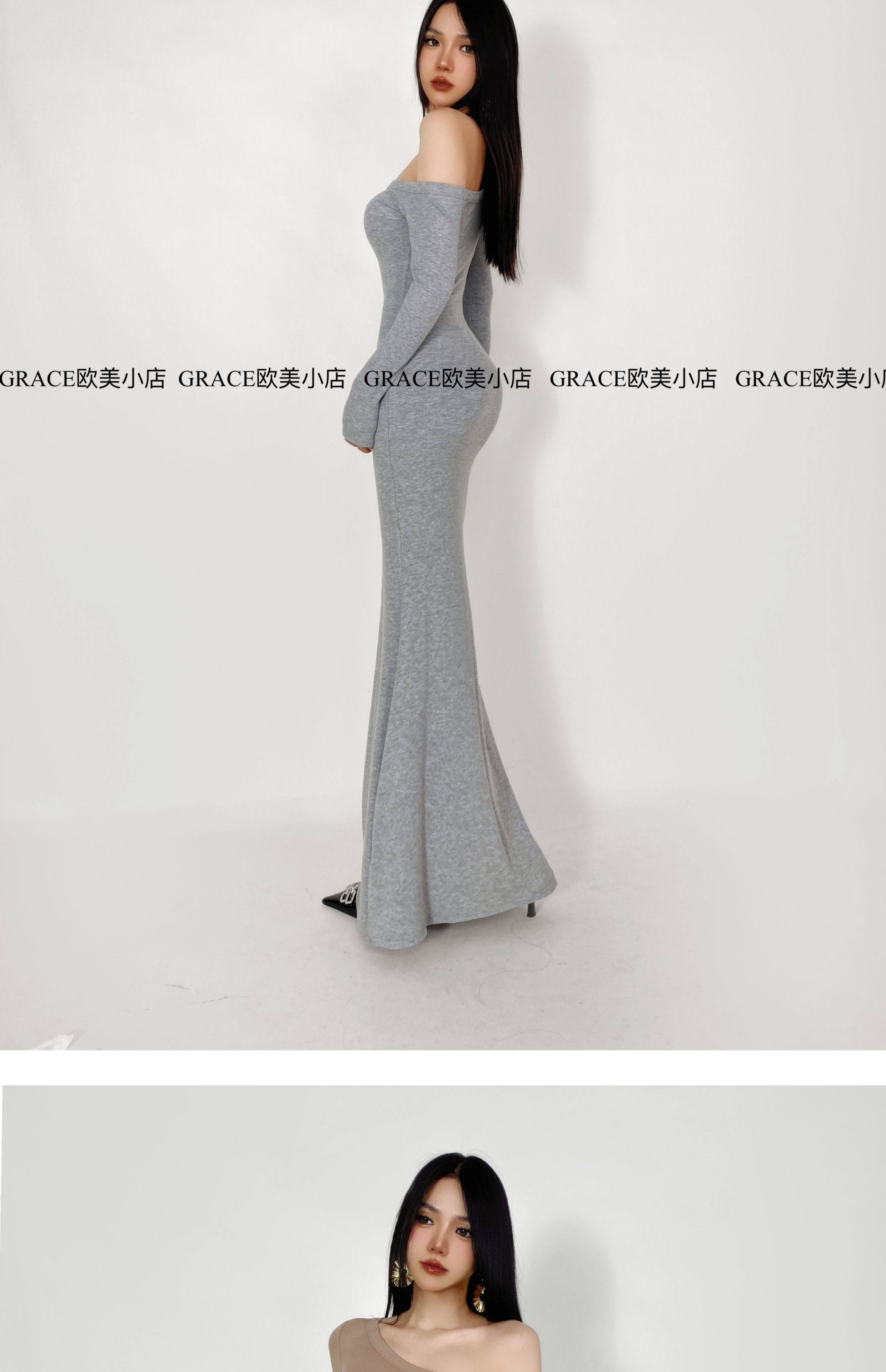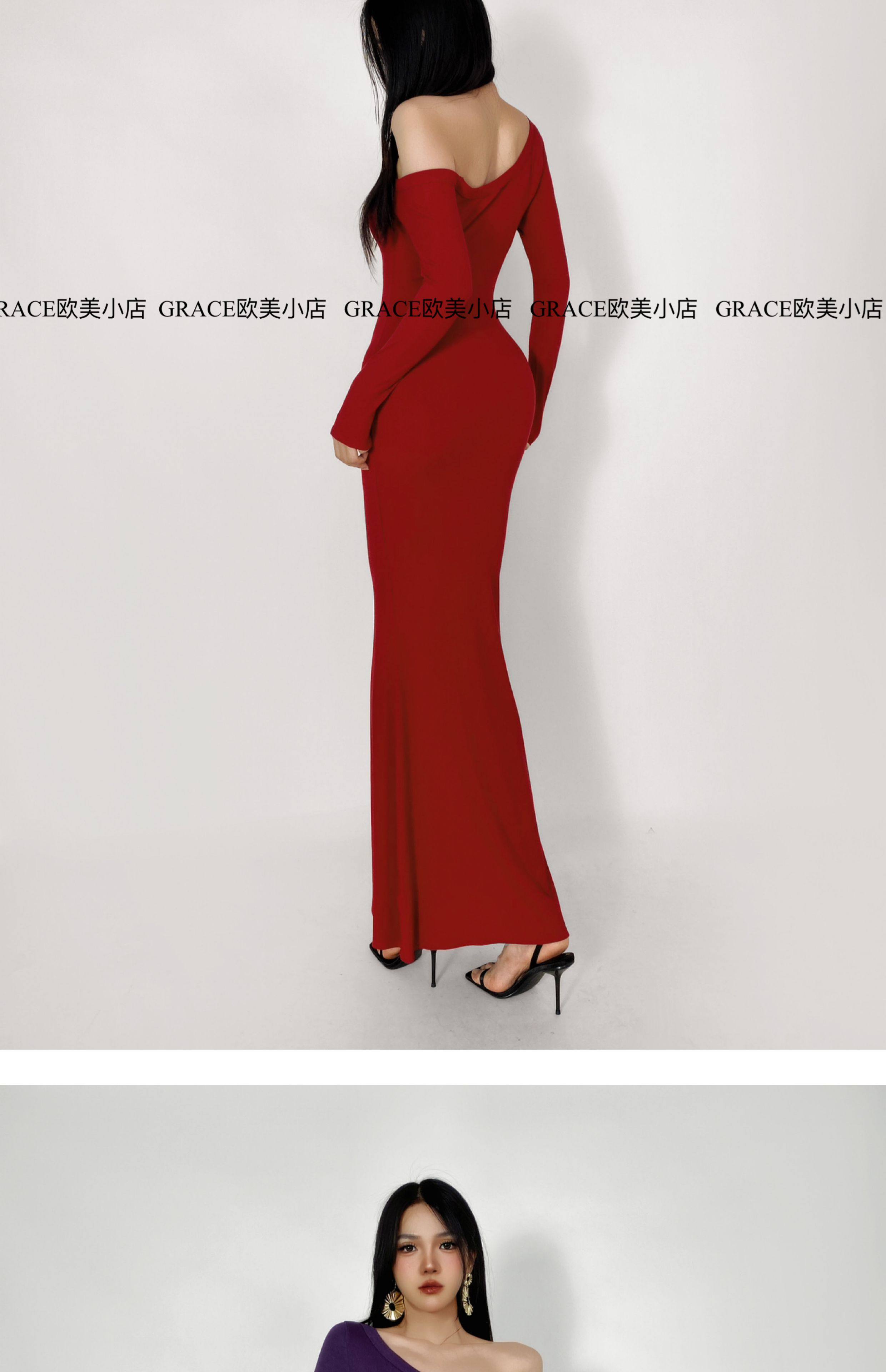 GRACE欧美小店2025秋季新款斜肩连衣裙女包臀裙显瘦御姐风长裙子 [Original Page Link]