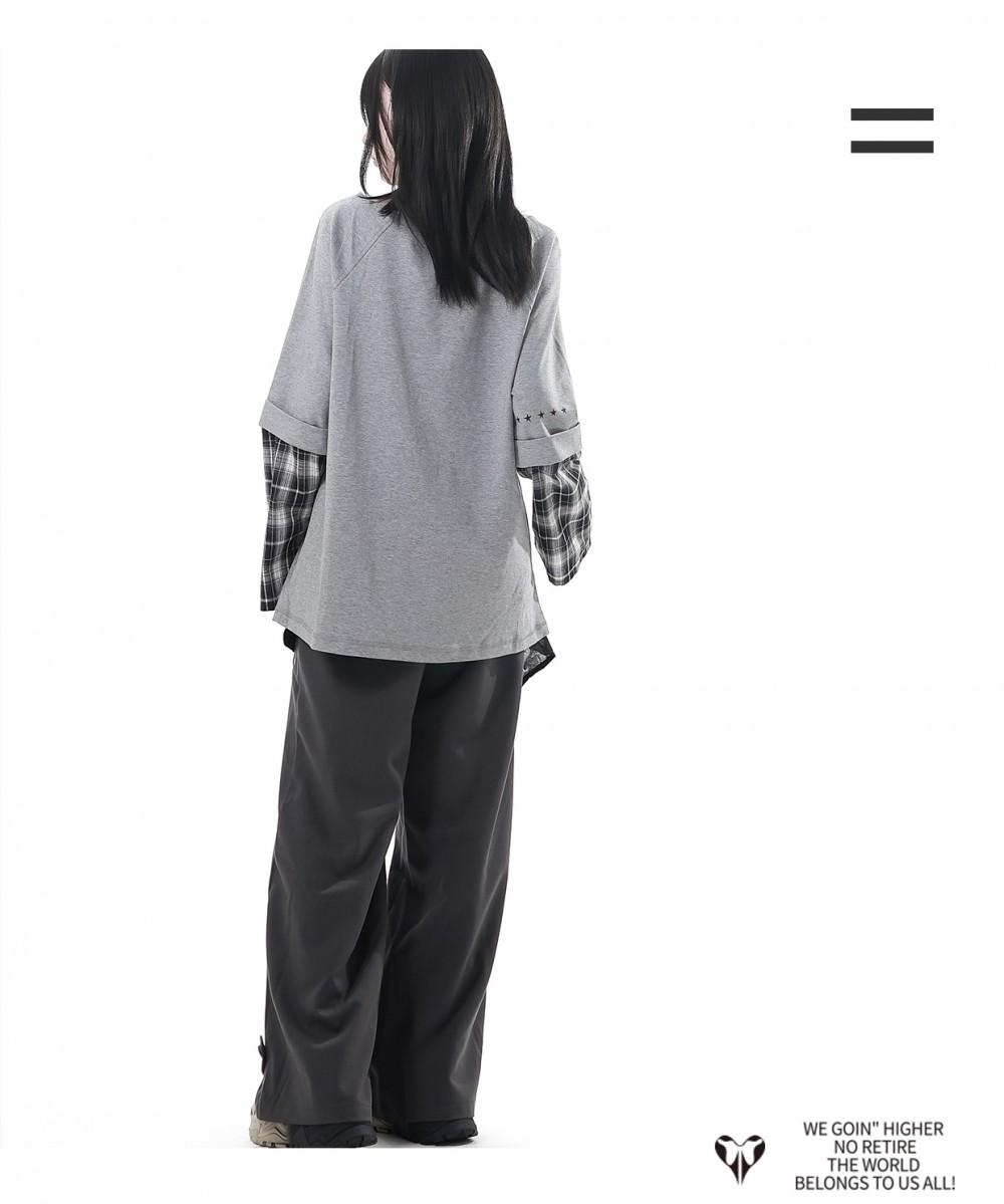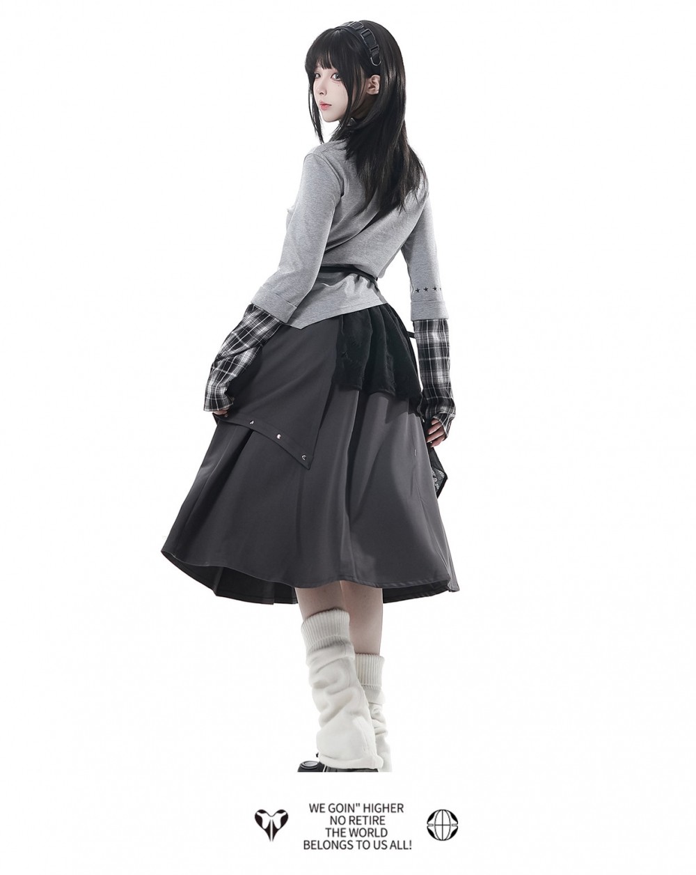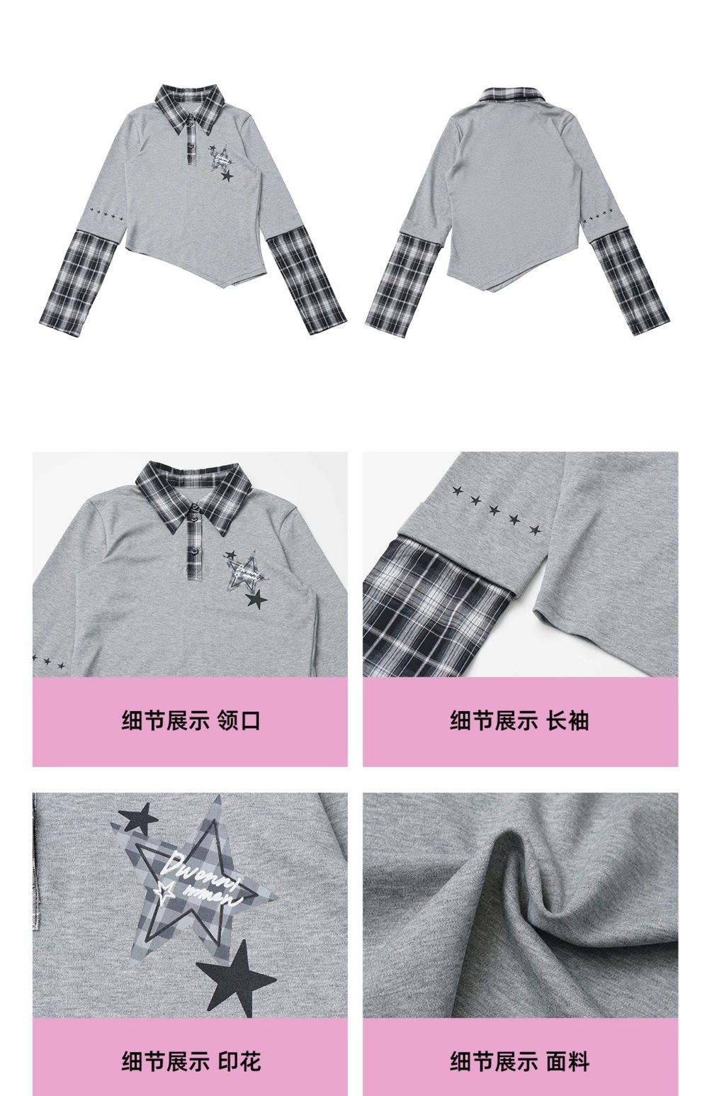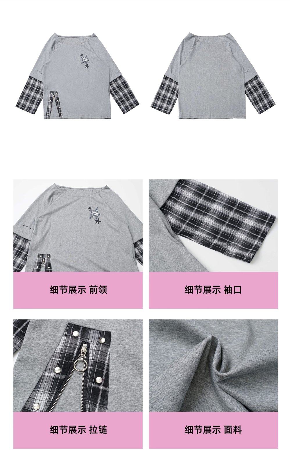 pinksavior【雾与渡鸦】灰色拼格秋日学院感情侣闺蜜休闲显瘦套装 [Original Page Link]
