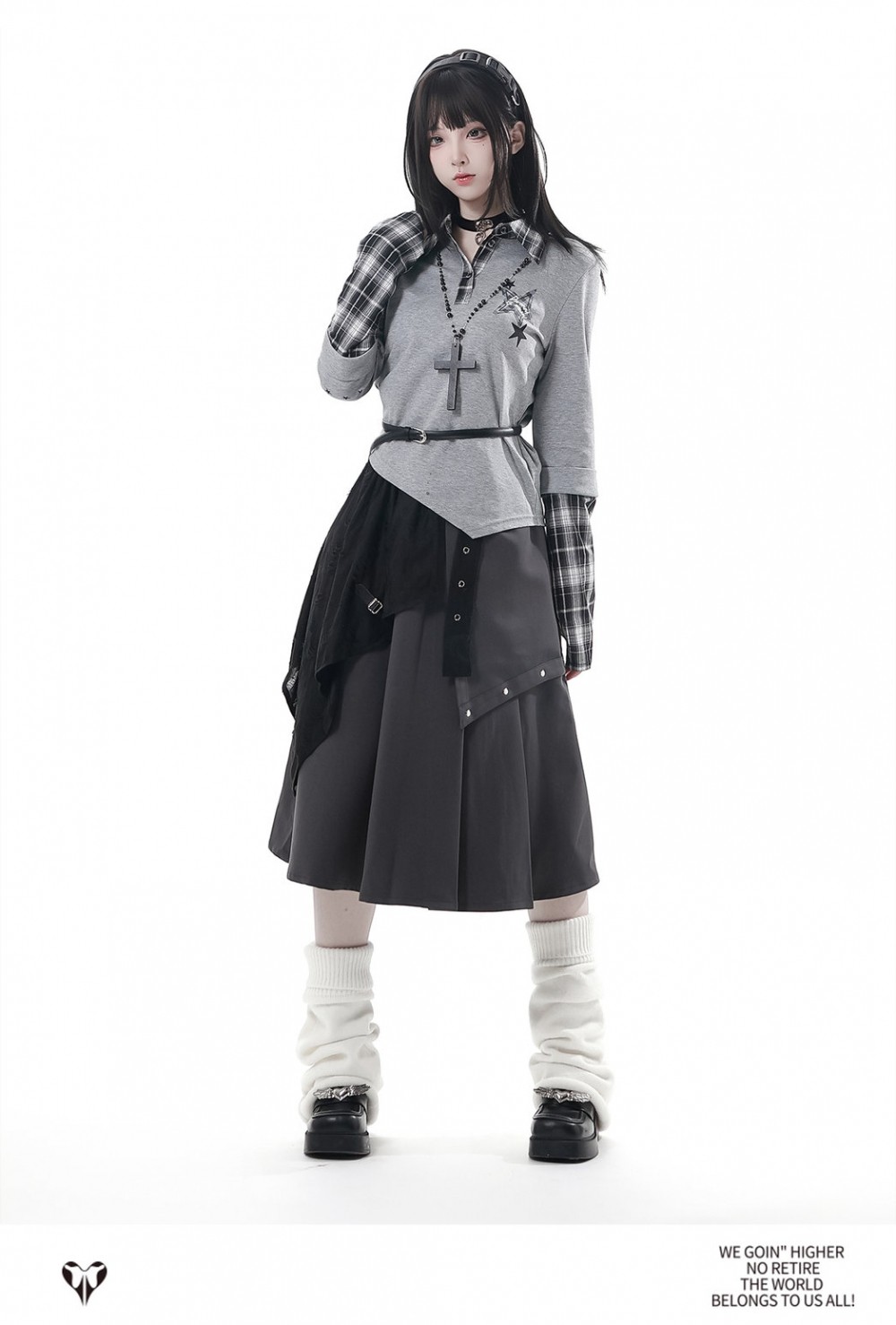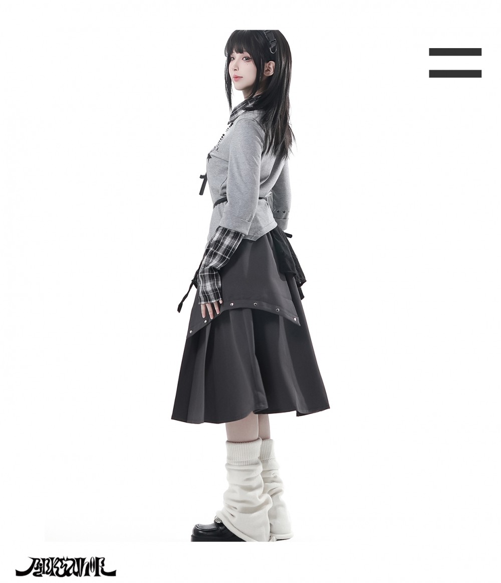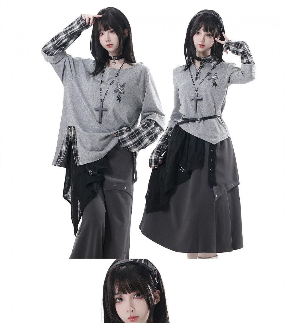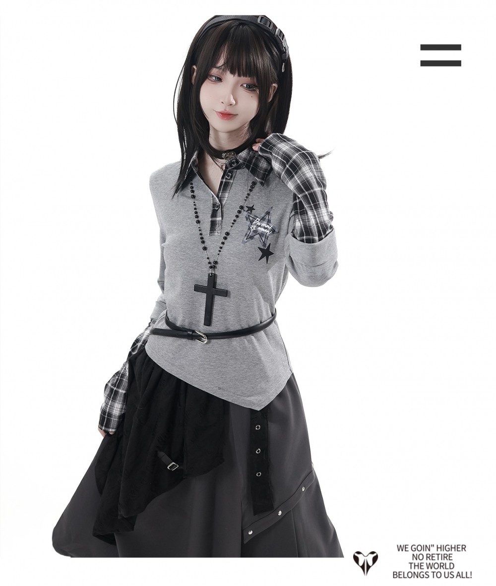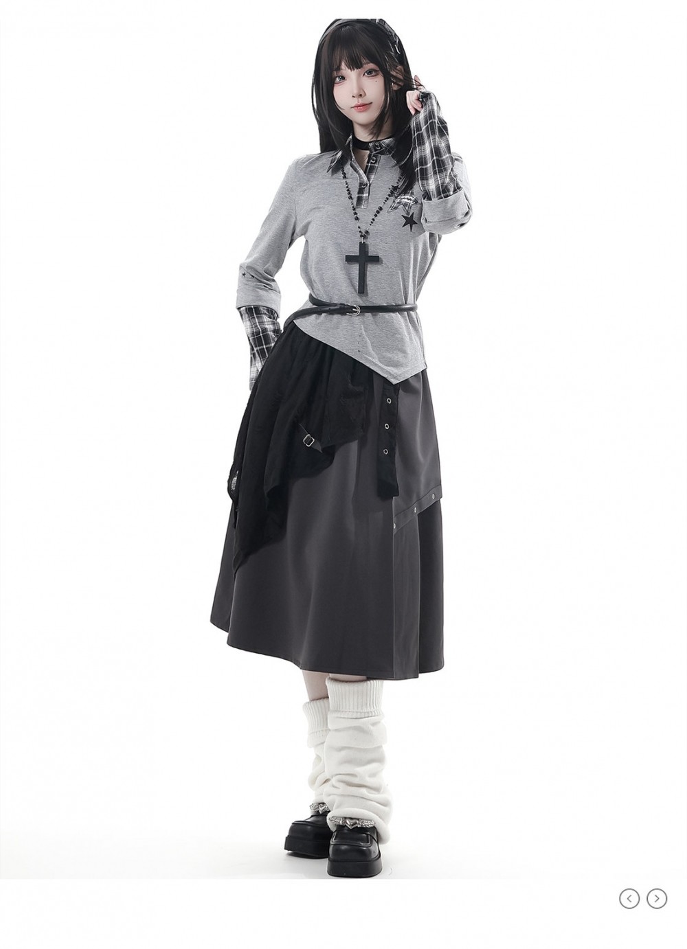 pinksavior【雾与渡鸦】灰色拼格秋日学院感情侣闺蜜休闲显瘦套装 [Original Page Link]