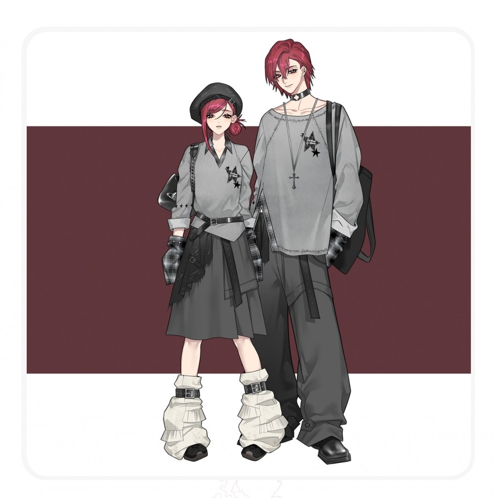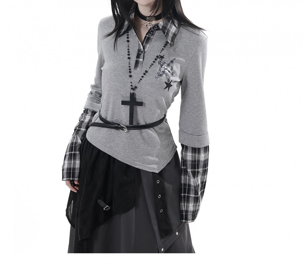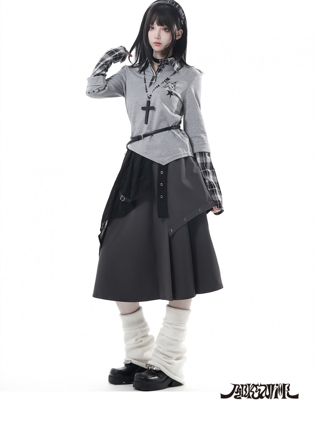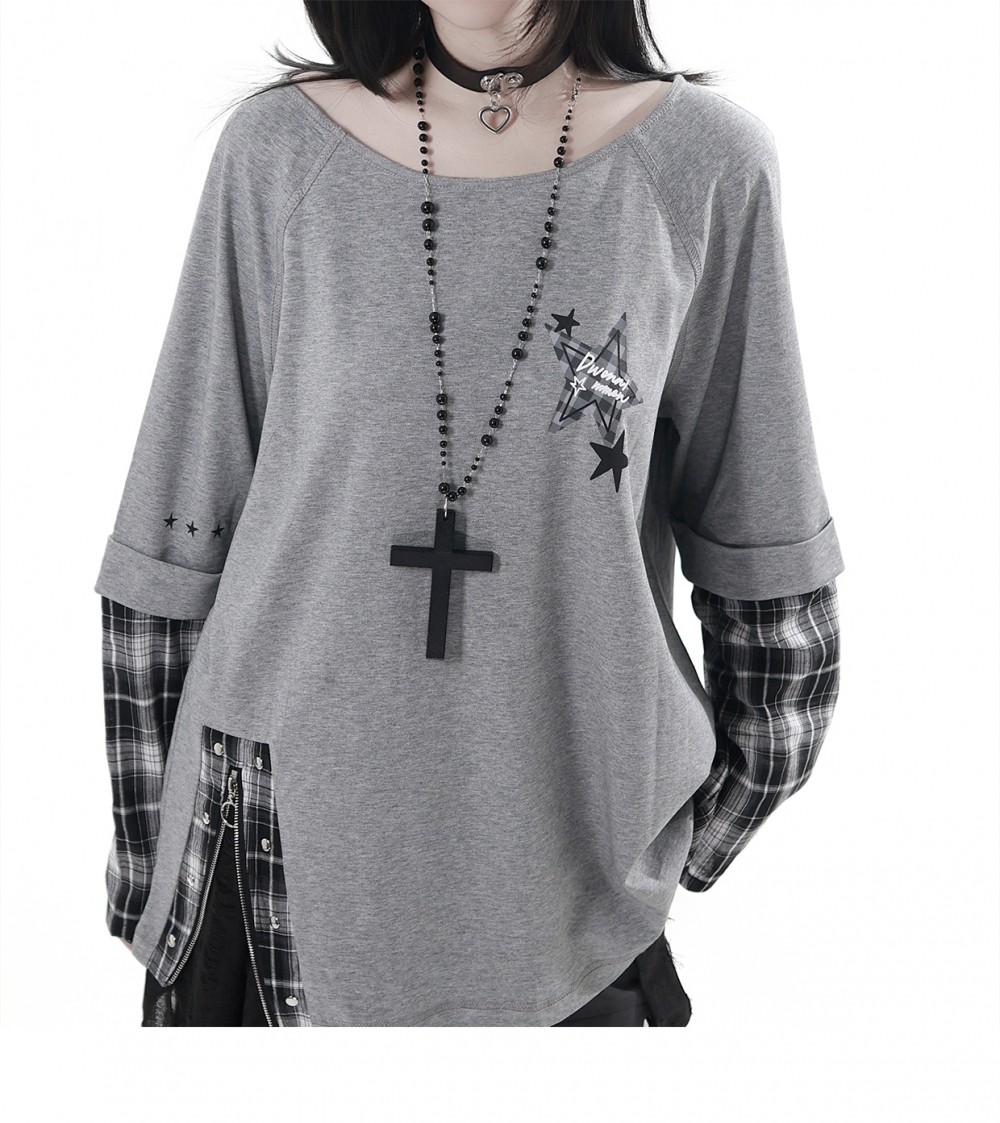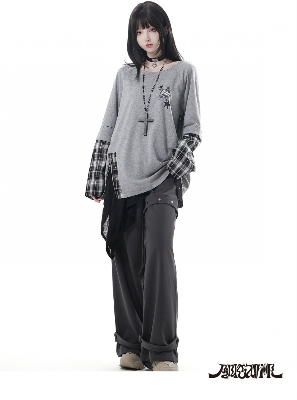 pinksavior【雾与渡鸦】灰色拼格秋日学院感情侣闺蜜休闲显瘦套装 [Original Page Link]